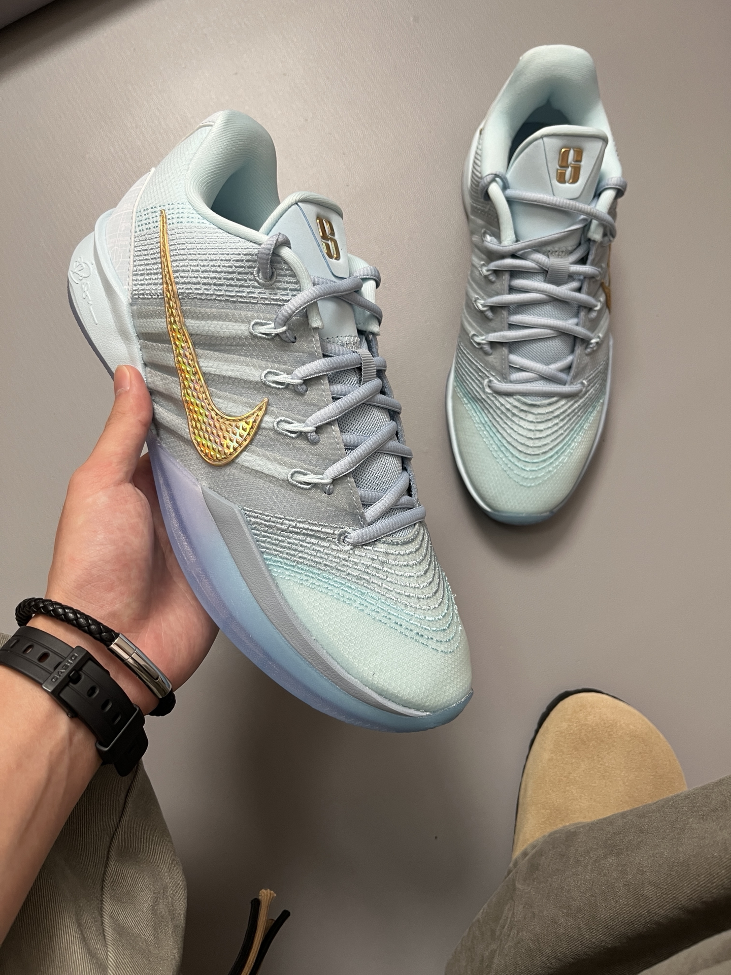 被Nike Sabrina 3 EP狠狠拿捏了!🔥 ✅低帮流线型设计,天空蓝配色超有活力, 配球裤直接街潮感拉满,日常穿也不违和。 鞋面褶皱网眼+隐藏绳线,透气性👌不错, ✅性能方面,前掌弹性气垫启动快, 后卫变向急停够跟脚,但大体重可能缓震差点意思。中底Cushlon泡棉软硬适中,落地不砸脚,适合变向多的打法。外底水晶💎纹路抓地力强,不过外场长期穿可能磨损,建议室内用。 ✅日常穿搭思路:配束...