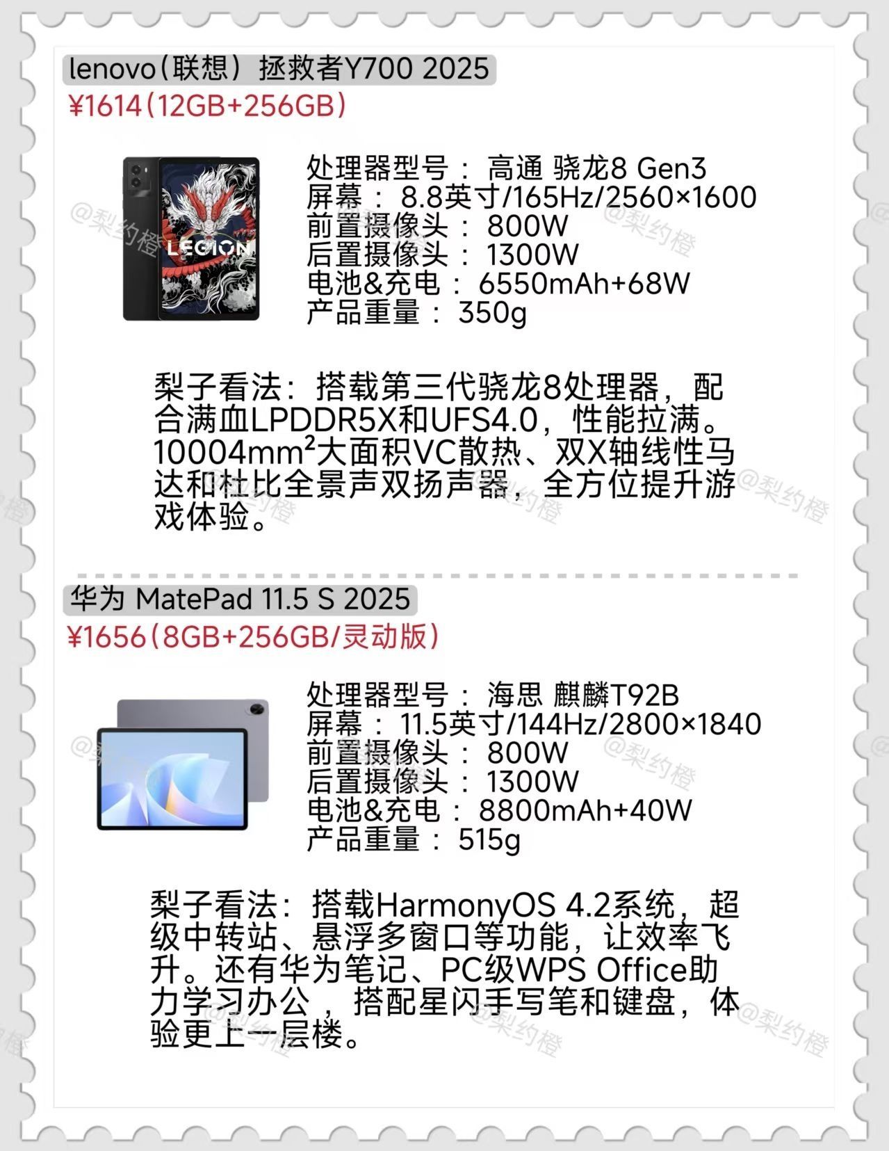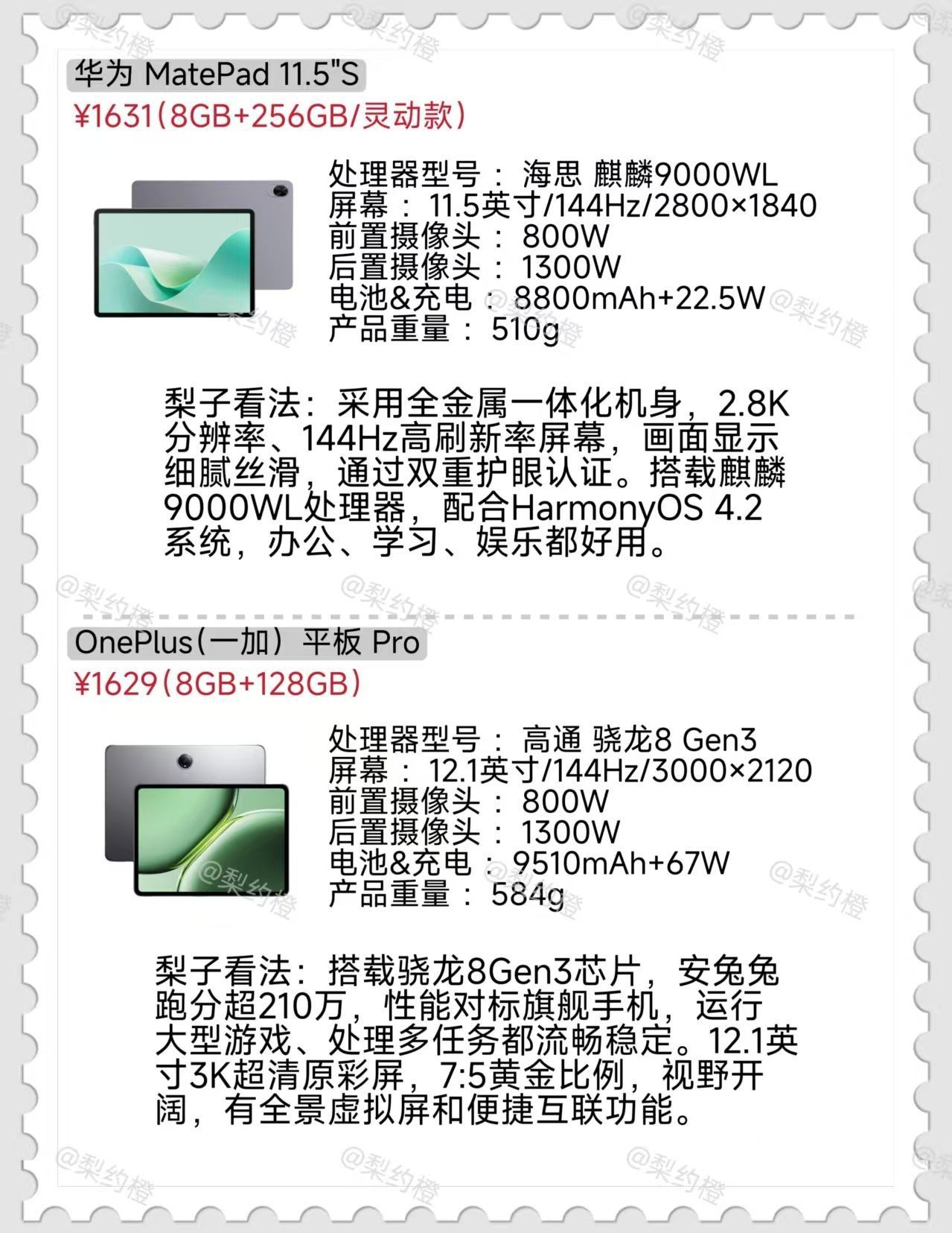 本篇笔记关联了HUAWEI/华为 MatePad 11.5"S 2024款 11.5英寸 平板电脑 柔光版 灵动款 学习 绘画 144Hz高刷 深空灰、OnePlus/一加 Pro 骁龙版 2024款 12.1英寸 平板电脑 高通第三代骁龙8旗舰芯片 超低延迟 大屏 学习 原彩屏 网课 满血性能 绘画 超清 追剧 拟真 深空灰、Lenovo/联想 拯救者Y700 三代 2025款 8.8英寸 平板电脑 线性马达 165Hz刷新 学习 影音 娱乐 办公 护眼 碳晶黑等商品,为用户提供真实的使用体验和购买参考。
