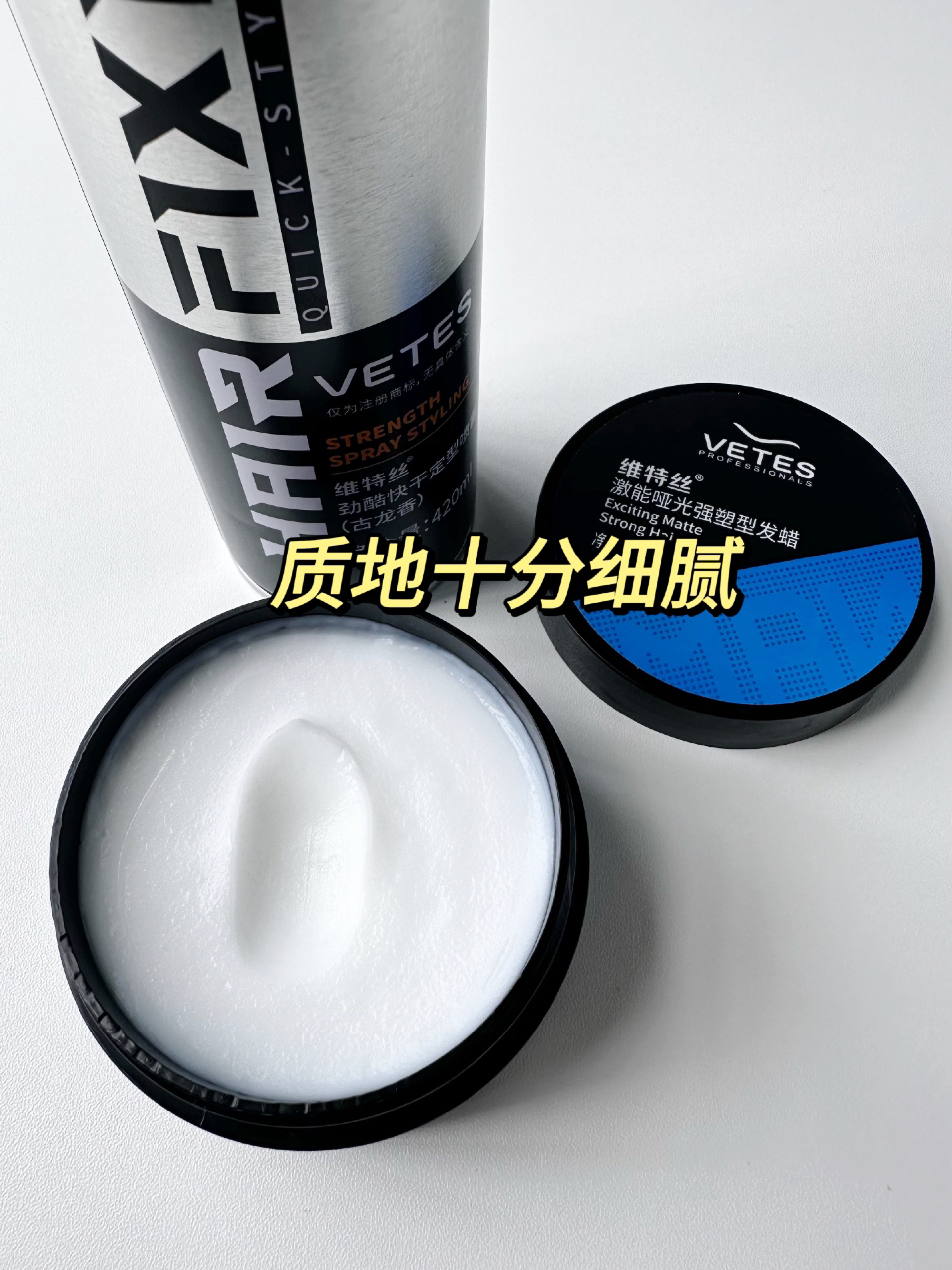 今天给大家带来的是这款维特丝的定型喷雾发胶套装 相信每位男同胞都或多或少为自己的发型烦恼过 都说发型是男生的第二张脸 我可得好好下点心思哈哈哈 这款套装的发蜡质地柔软易涂抹 能轻松抓出自然蓬松纹理 发泥定型强 可打造立体层次感发型 搭配发胶喷雾 快速定型超持久 成分安全 清洗也很方便 性价比超高 这难道就是型男的必修课嘛!
