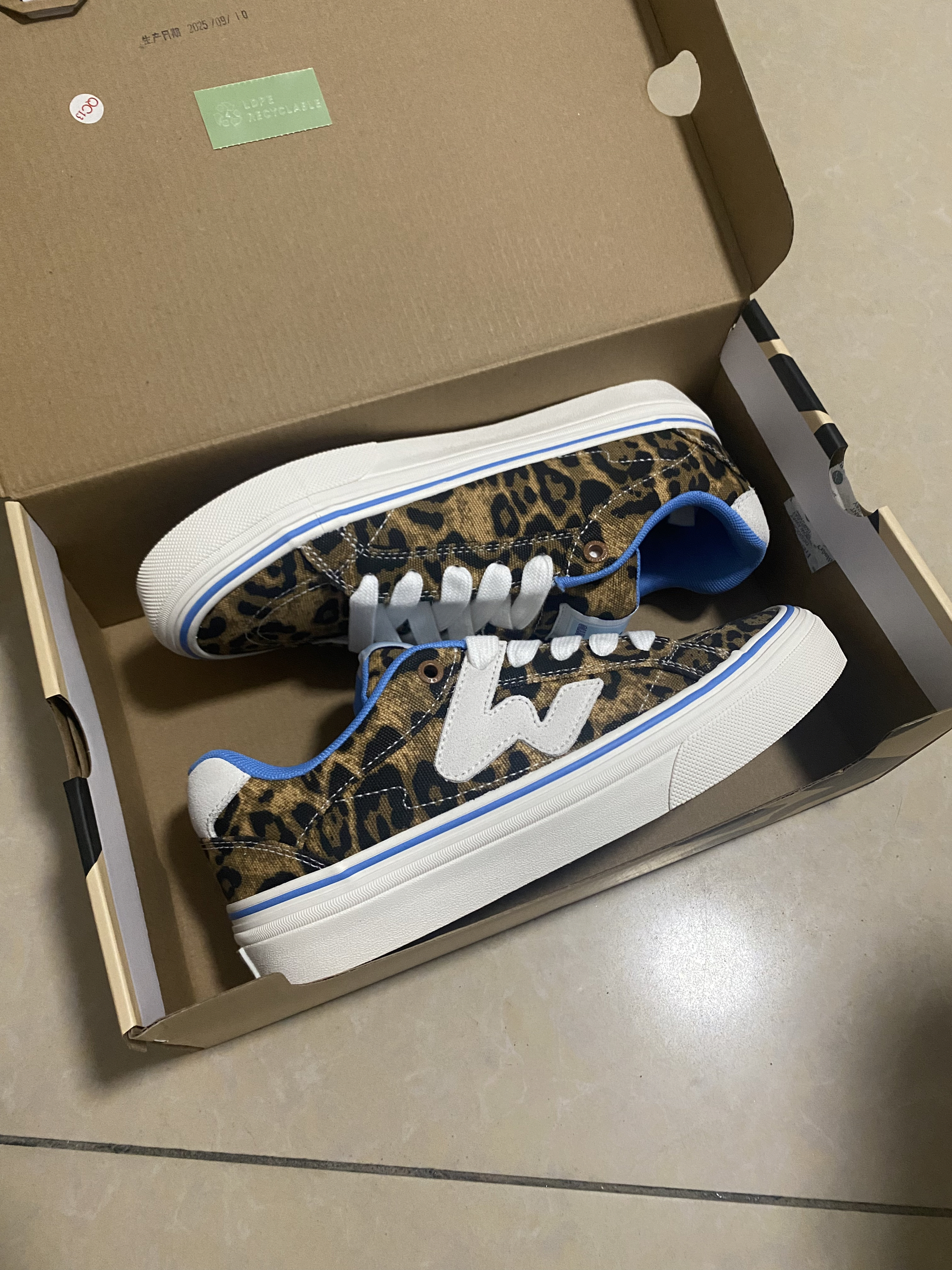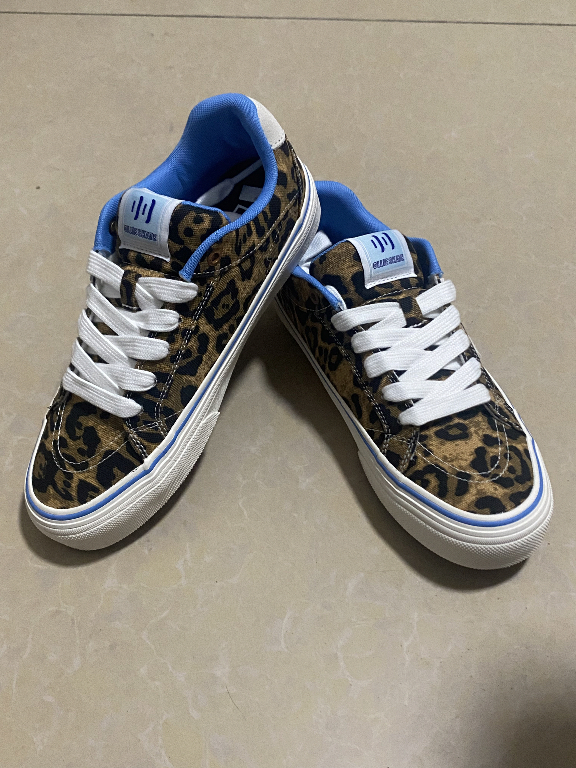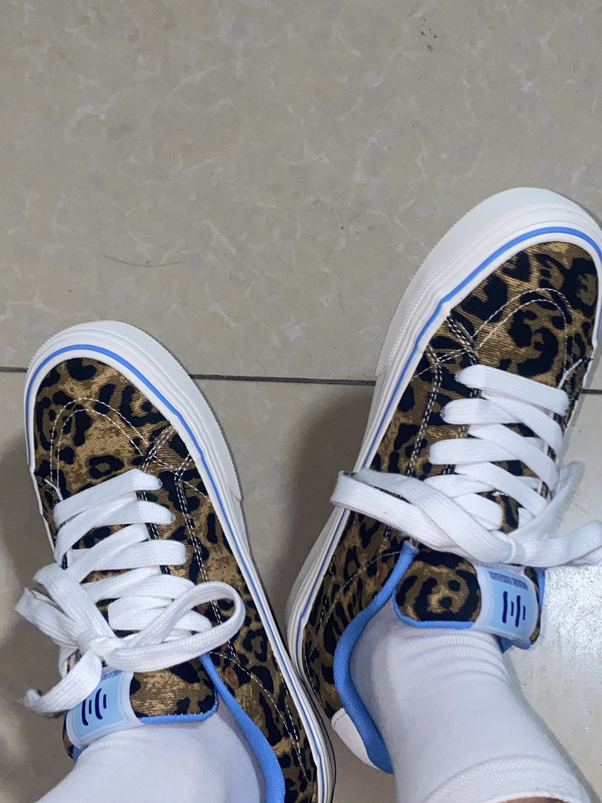 谁懂啊!豹纹元素真的又野又有范儿~这双鞋把豹纹玩出了新花样,经典的棕黑豹纹图案,自带复古又张扬的气场,走在街上想不吸睛都难✨ 鞋身搭配清新的蓝色细节,鞋口、鞋舌处的蓝色点缀,中和了豹纹的野性,多了份清爽活力,甜酷平衡得刚刚好~白色鞋带和鞋底,让整体更显干净利落,日常搭配各种风格的衣服都很OK,牛仔裤、短裙统统能hold住,轻松打造出属于自己的个性穿搭~ 而且穿着也舒服,脚感轻盈,暴走一天也...