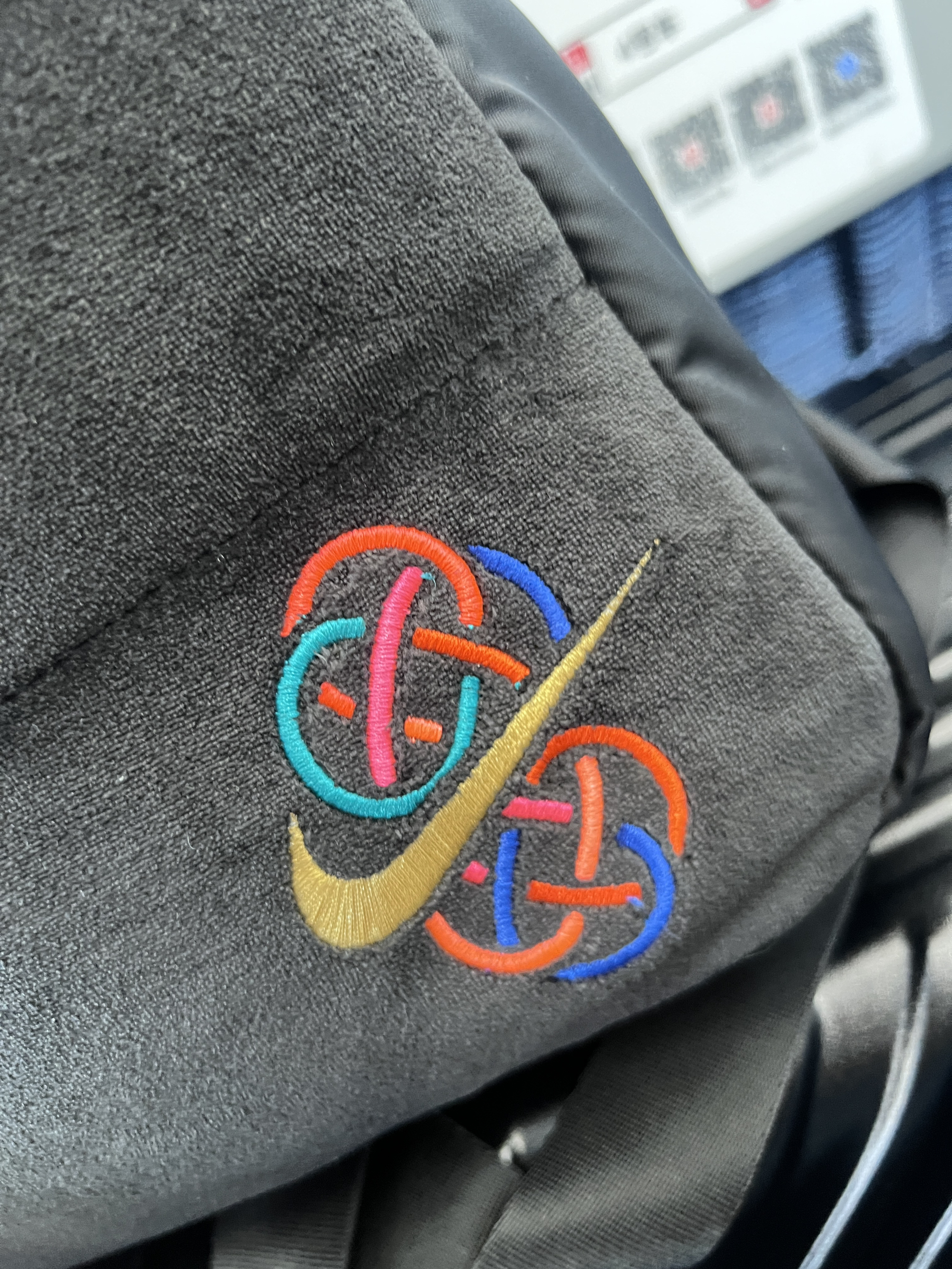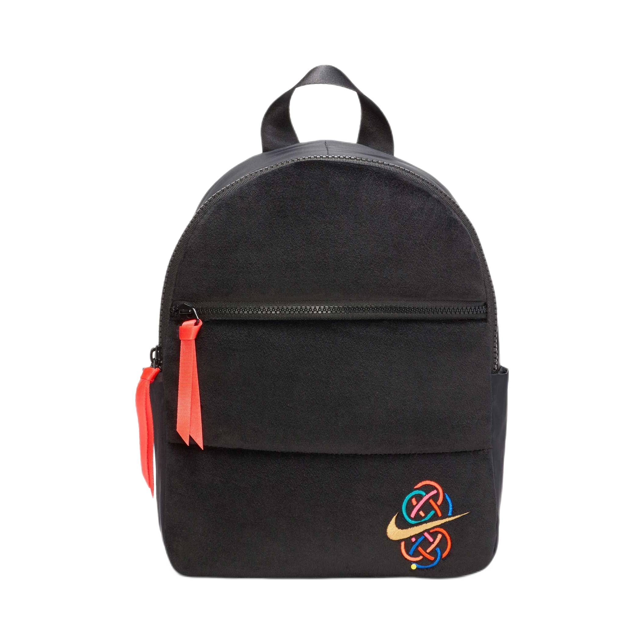 这款背包以耐克标志结合中国结刺绣,红绳挂饰添彩,风格独特又具文化韵味。