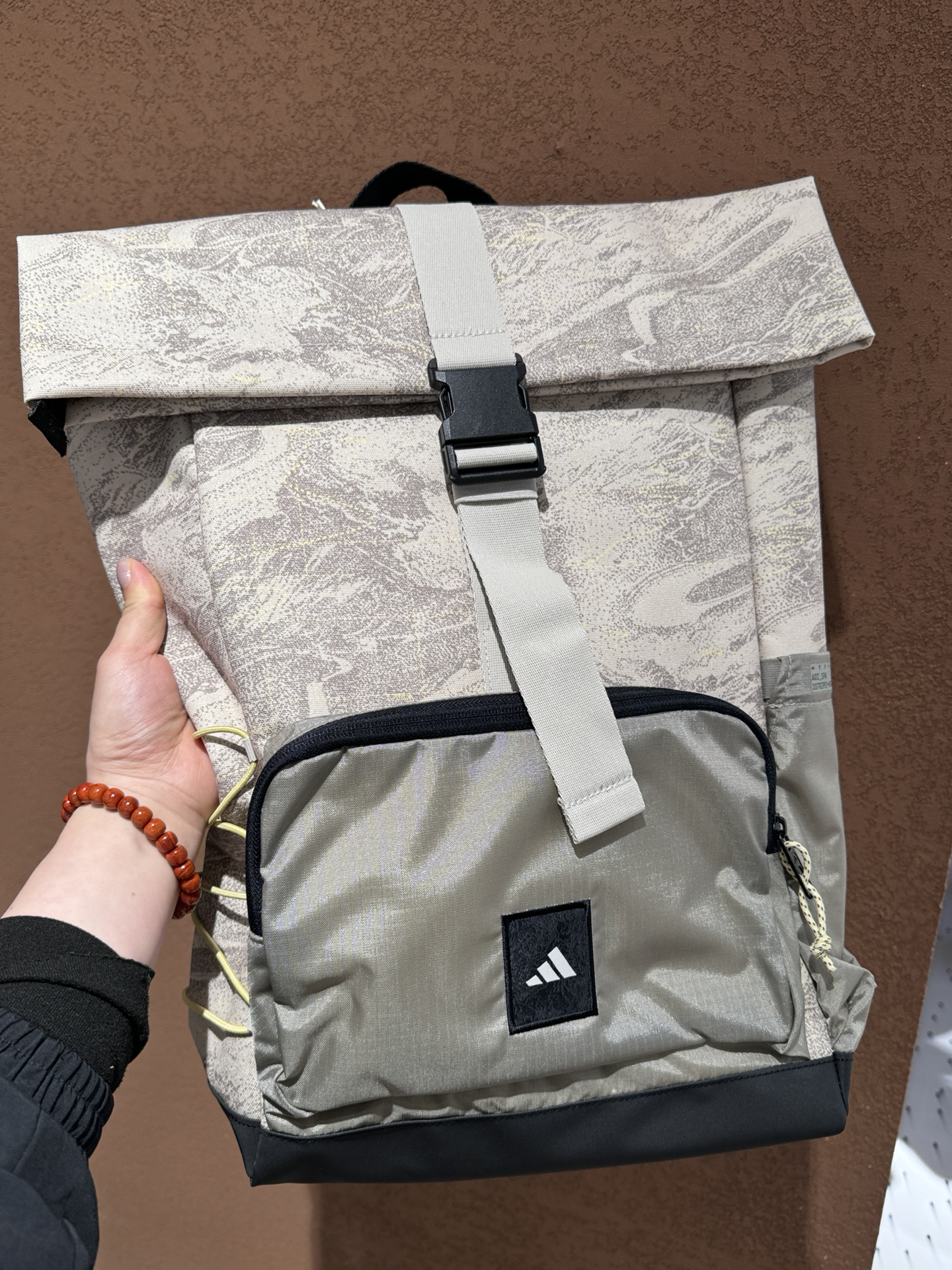 阿迪这款双肩包直接戳中我心巴~卡其色超百搭,日常搭休闲装、运动服都很可。正面大口袋能装下平板,侧边网兜放水杯超方便。背部和肩带填充很软,背久了也不勒。材质耐磨,下雨溅点水也不怕。容量够大,课本、笔记本电脑都能塞,通勤上学背它准没错,实用性颜值双在线,闭眼入不亏~