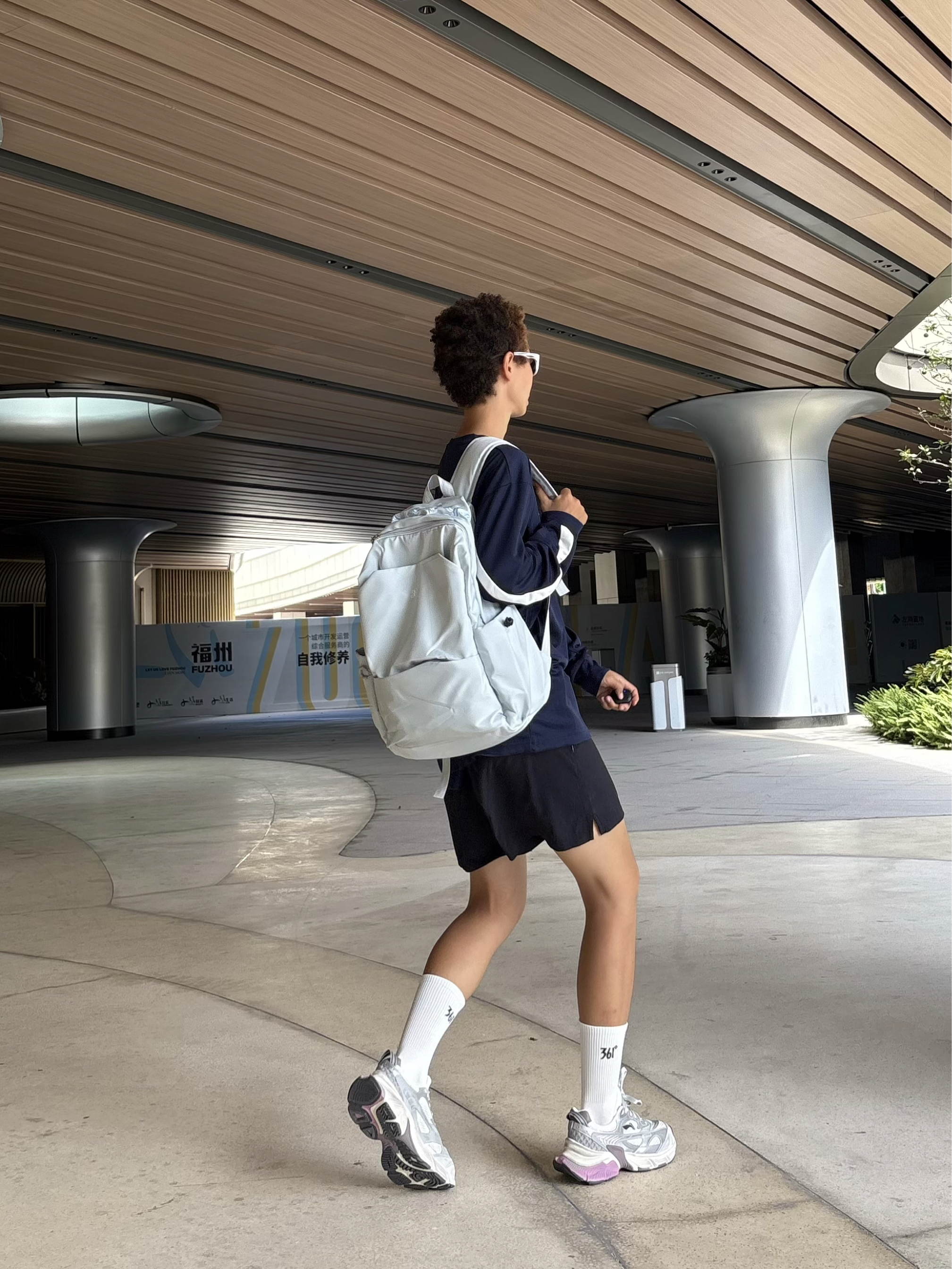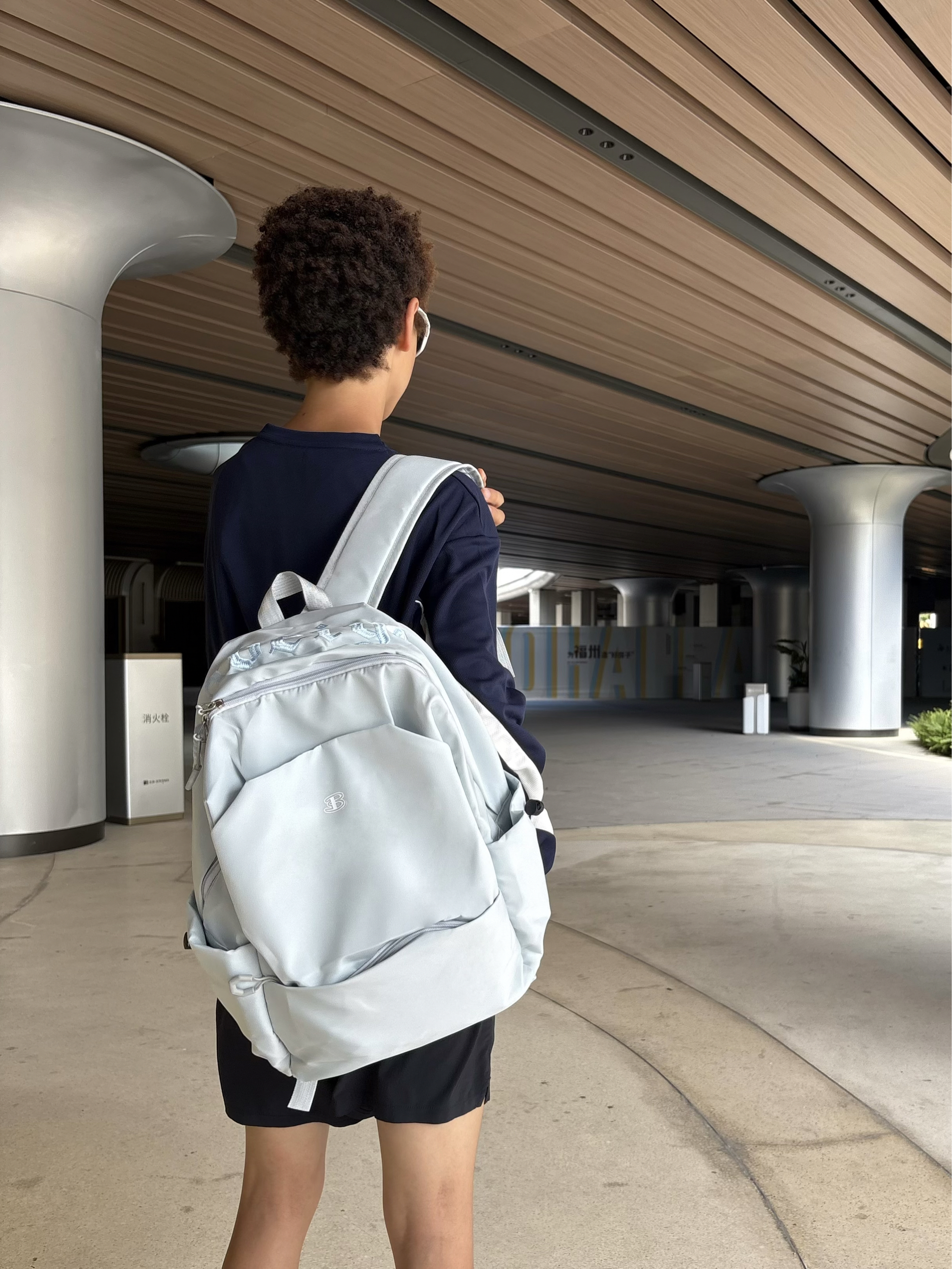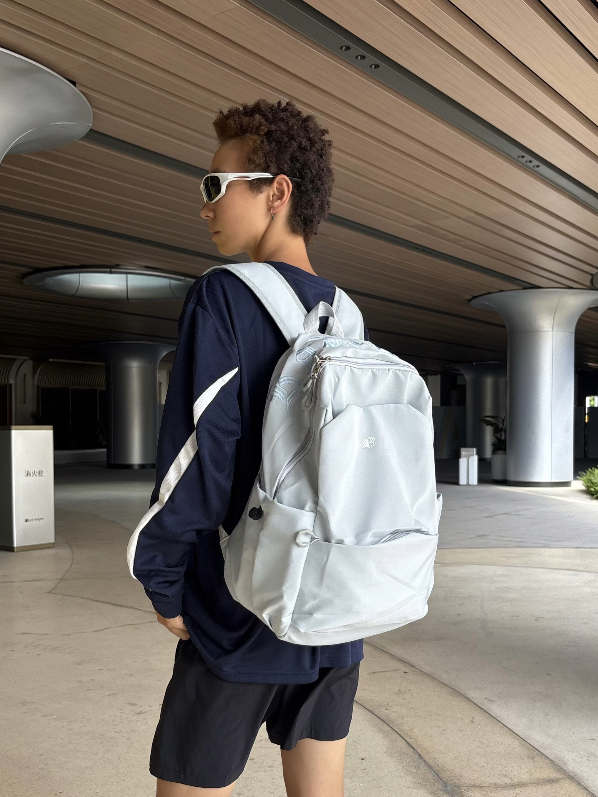 欢迎进入无敌小圆哇子的穿搭分享频道 172CM|55KG 👔:m👖:m|👟:39码 背上俺的BEN SHERMAN浅蓝色尼龙双肩包啦! 轻便防水材质特别适合突然的雨天 大容量设计轻松装下课本和日常用品 精致字母刺绣让简约包型更有设计感✨ 搭配藏蓝色长袖运动衣和黑色短裤 脚踩黑色运动拖鞋 整体营造出慵懒又舒适的日系City Boy风格 无论是上课通勤还是周末出游 都阔以轻松出门啦~