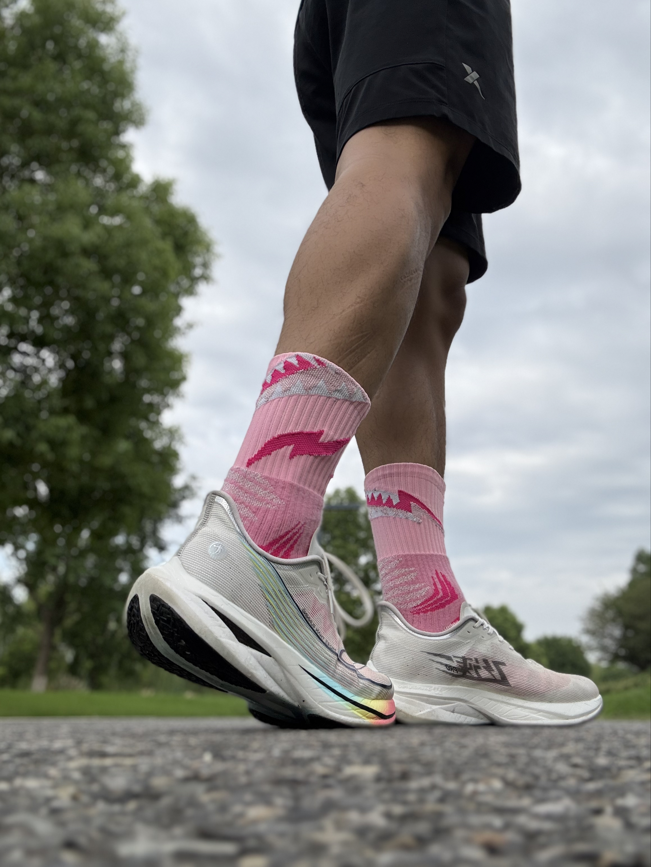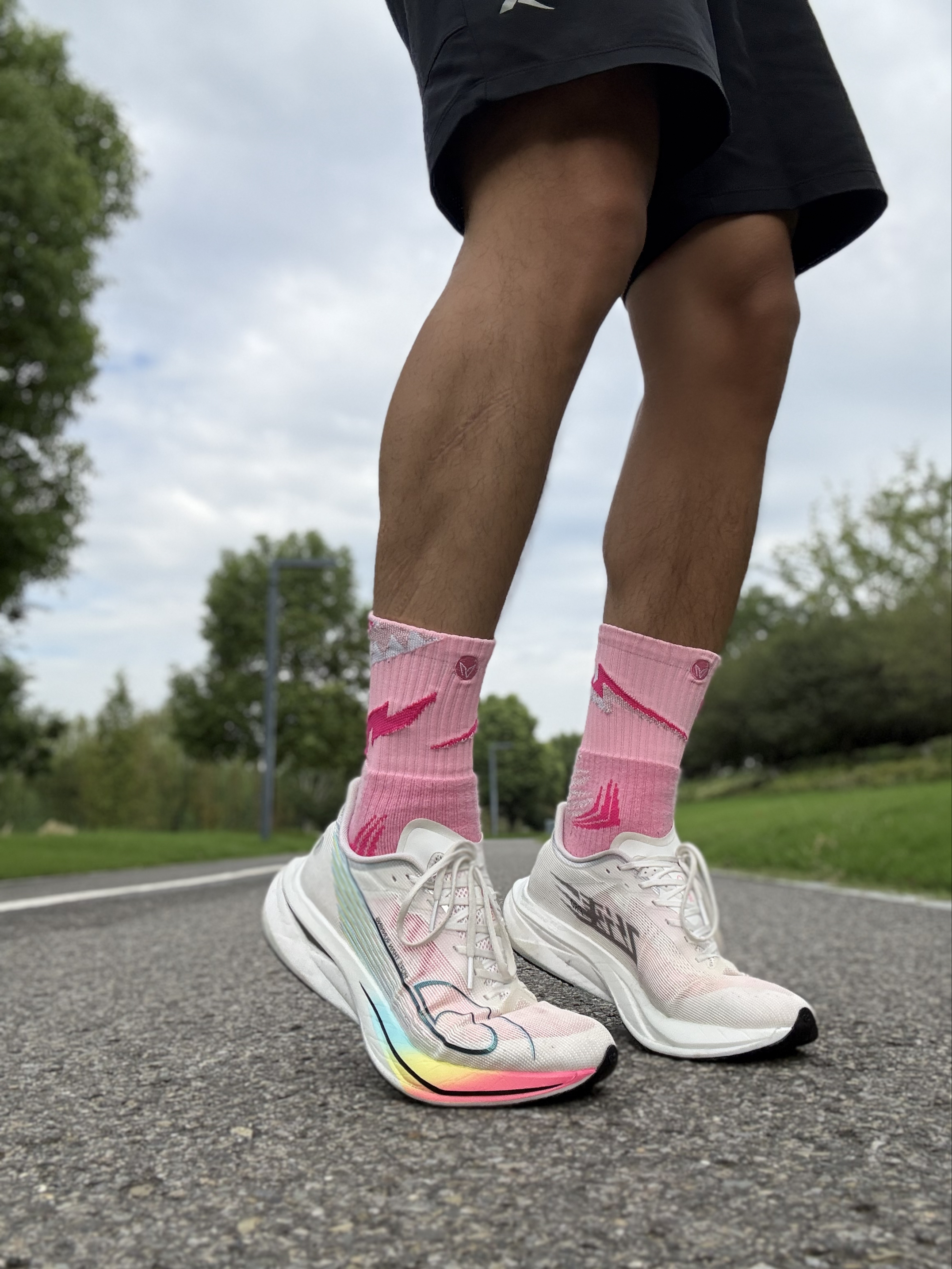 我丢这个袜子好爱啊。 粉色小鲨鱼的设计很好看。 袜子是 维动 VEIDOORN 家的狂鲨系列。 脚感没得说,面料比较有弹性。 日常搭配一个老爹鞋就很好看!