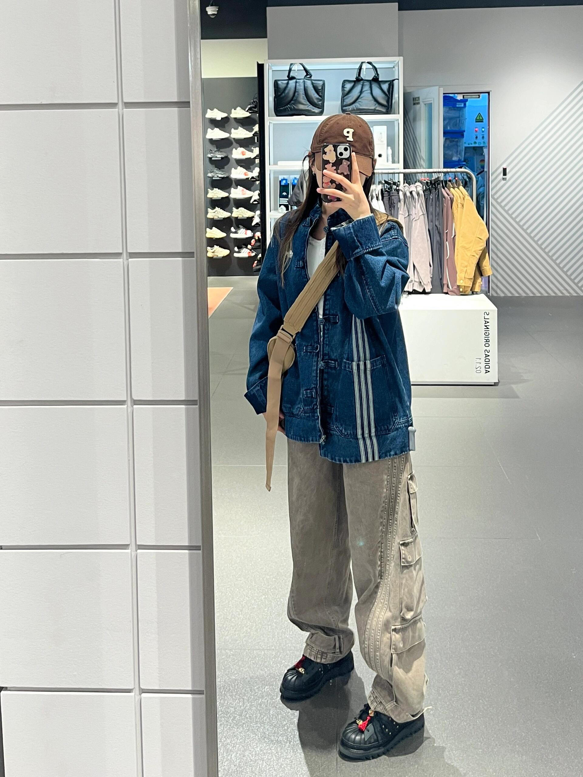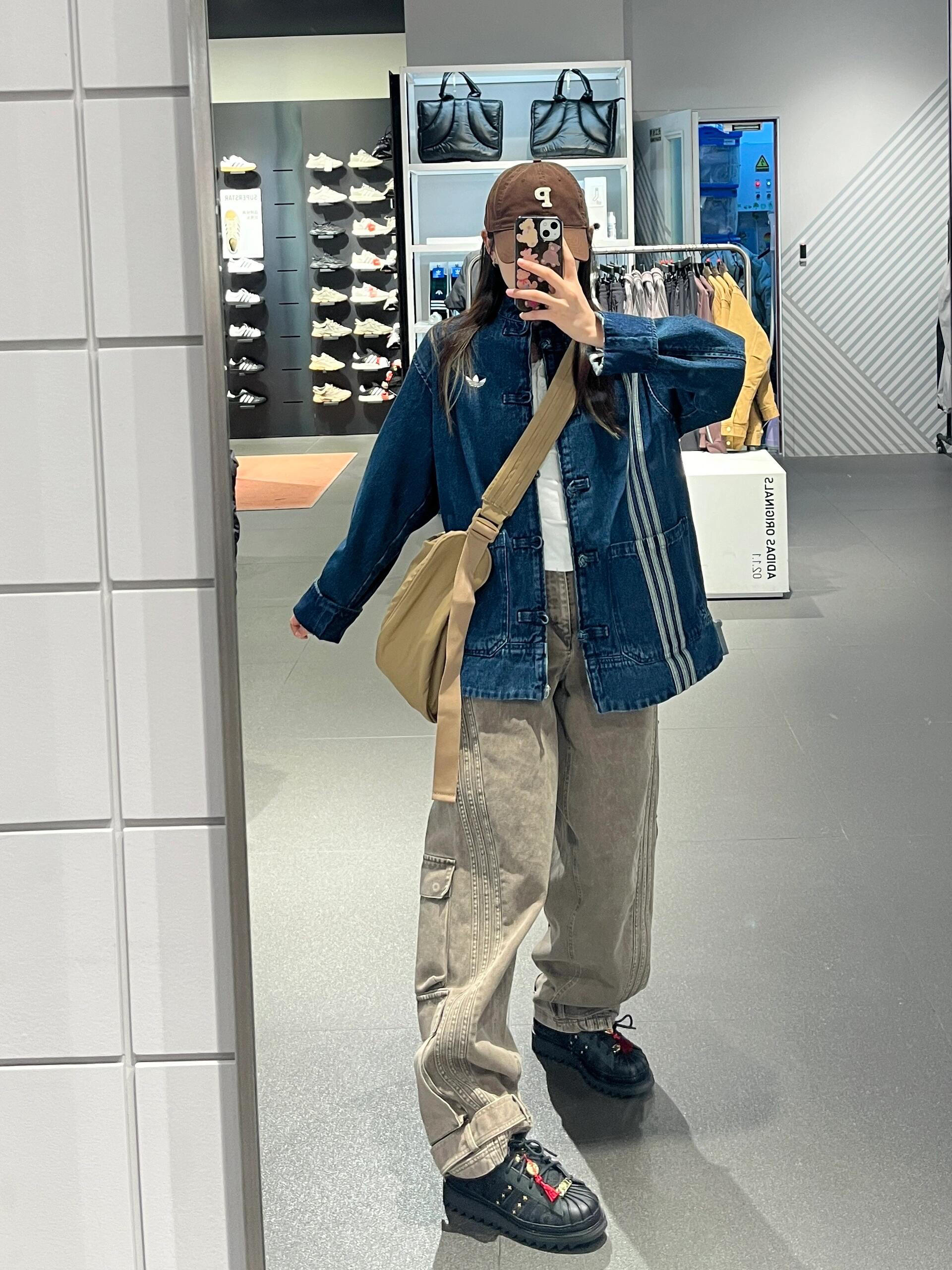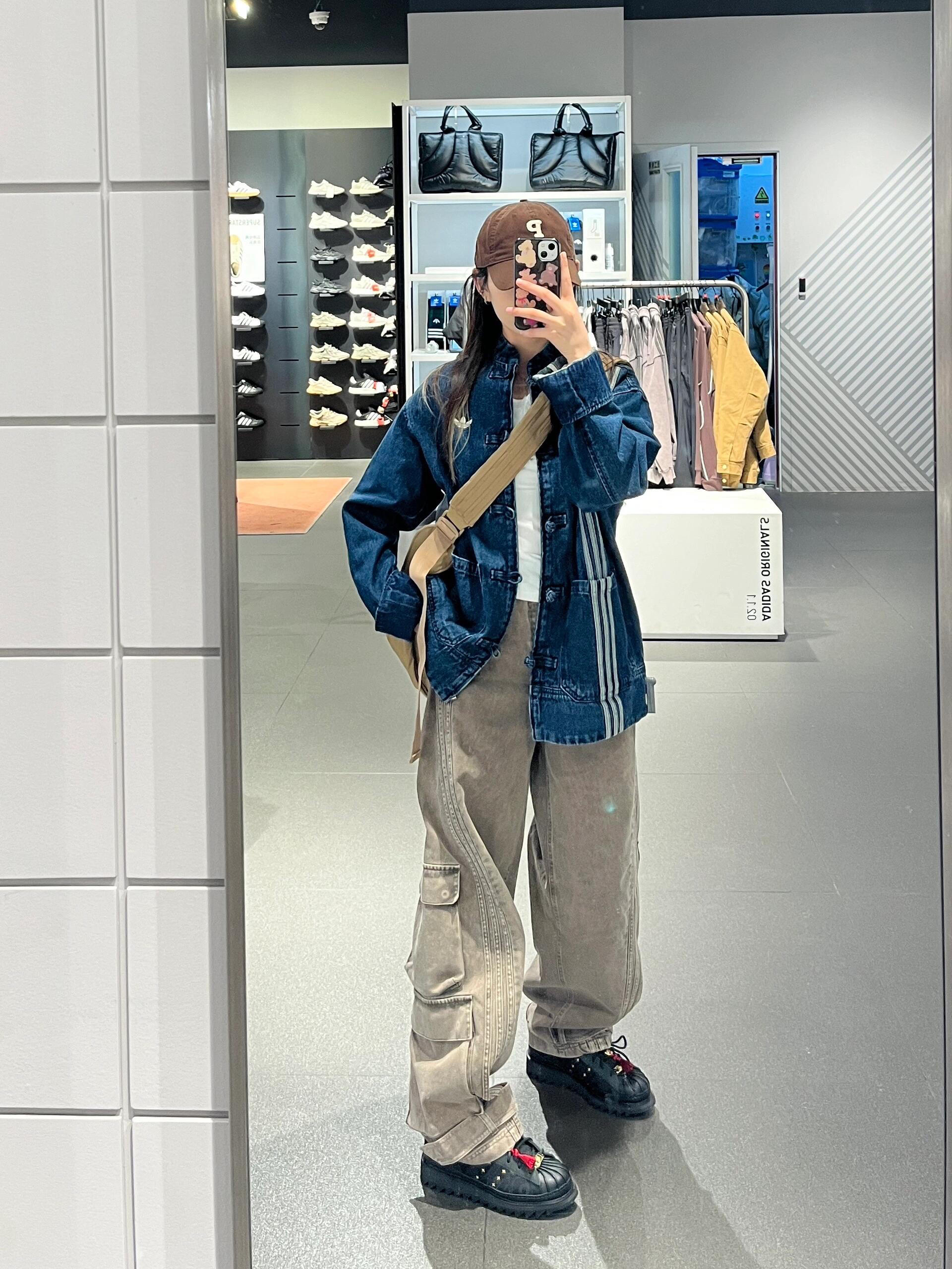 🍧首先外套是牛仔材质,很有质感,藏蓝色的新中式设计超级好看,再过一段时间温度应该刚刚好,很适合穿,现在可以在空调屋里面穿。 🍧尺码选择,我的身高是161cm,体重是49kg,我买的m码,刚好可以盖住我的臀部了,这个尺码对我来说即使下身搭配短裙或者短裤也超级好看。 🍧与此同时,我还搭配了阿迪的同款鞋子和裤子,大家可以看下,裤子是工装阔腿裤,超级适合梨梨形身材的姐妹们,超级遮肉哦~ 鞋子是同款阿迪...