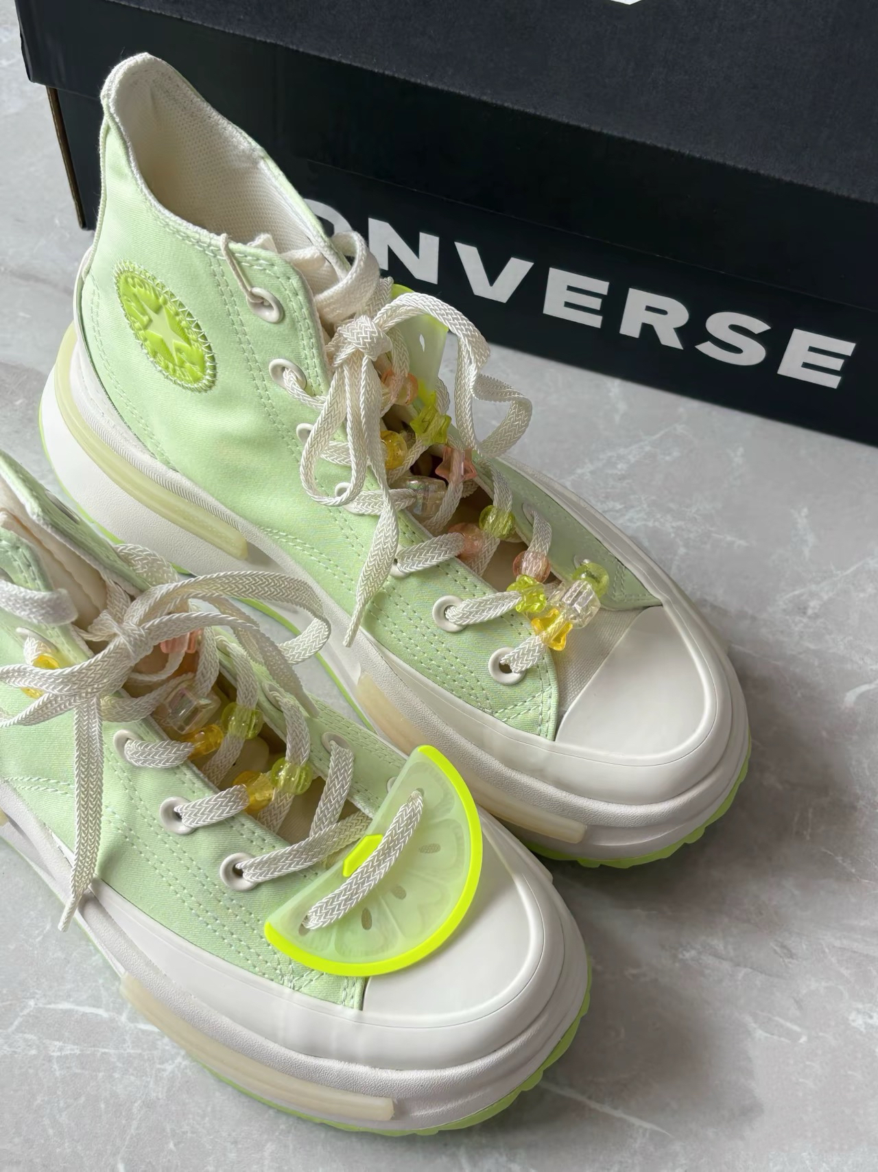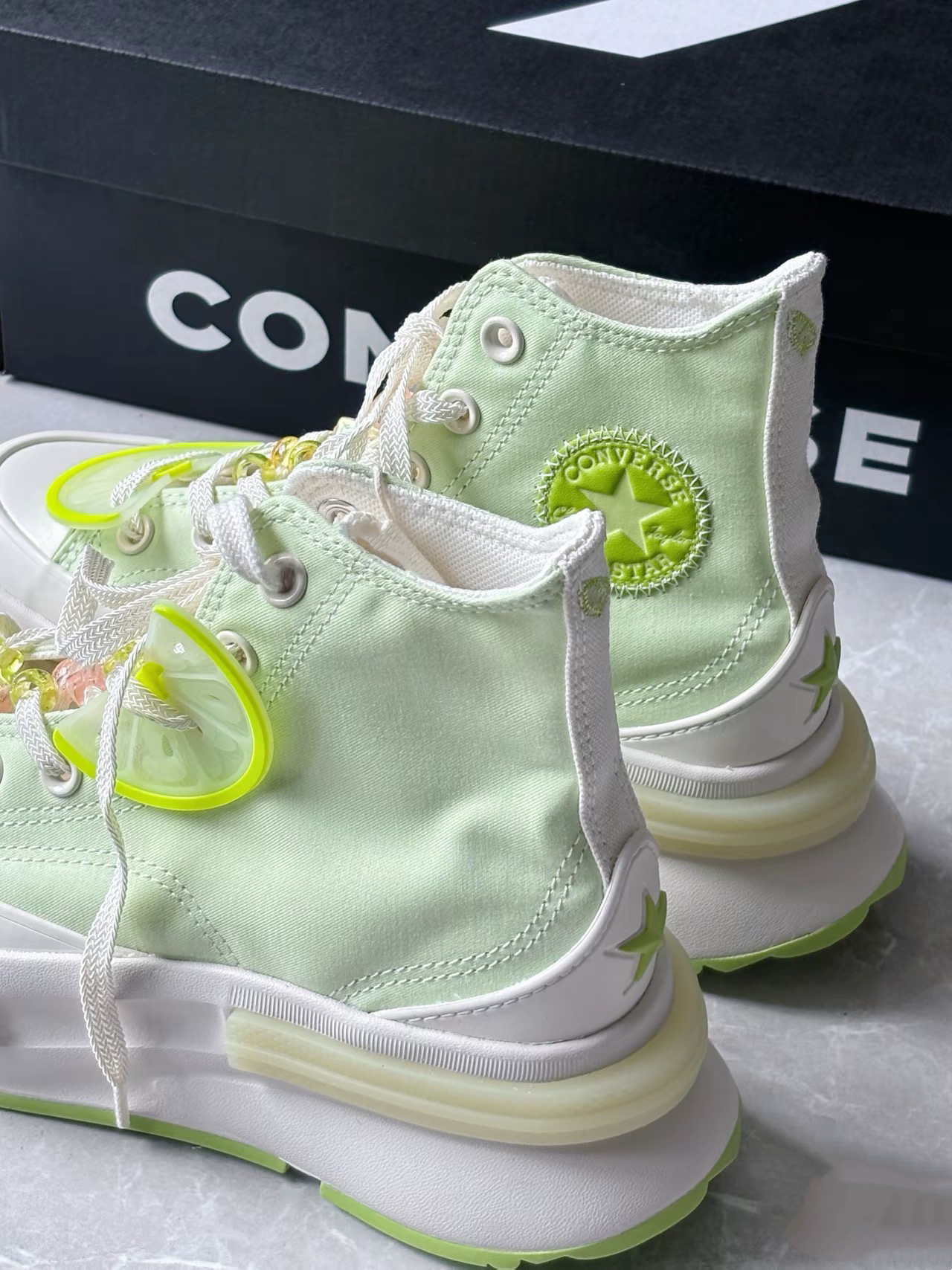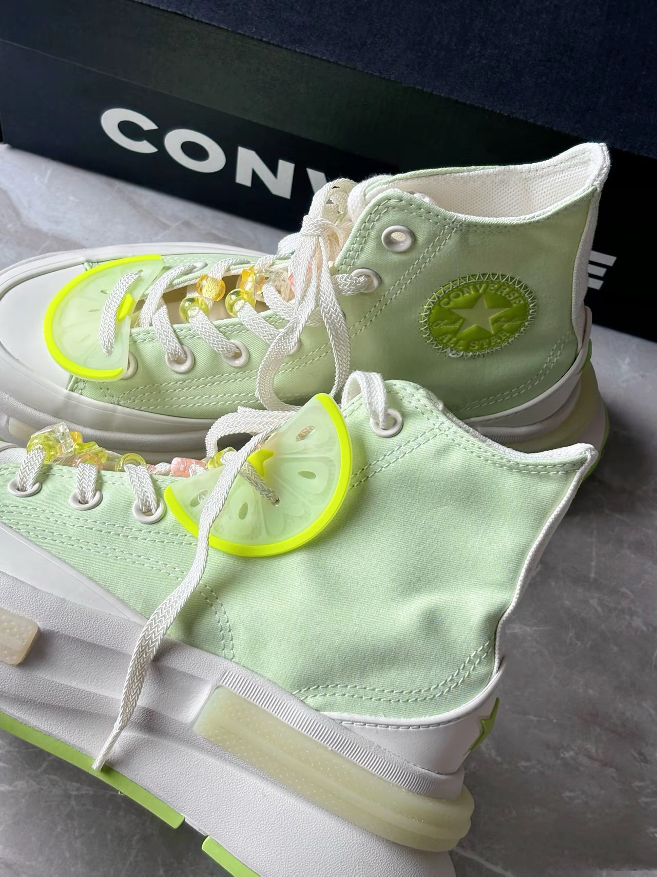 这个鞋子真的是为夏天量身打造的 一整个小清新的夏日氛围感 鞋子还自带小饰品,可以diy 夹心厚底配上青柠绿青春活力🍃 匡威的设计真的是美神降临! #这双鞋开启夏日 #白绿配色鞋太好看啦 #匡威converse #更新我的夏日鞋 #宝藏帆布鞋分享