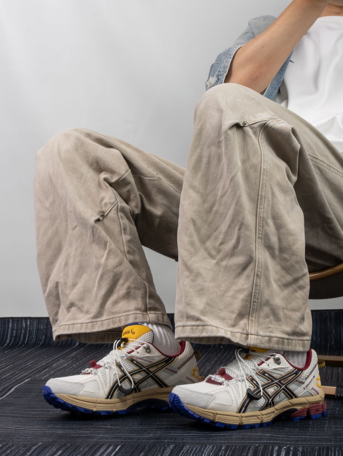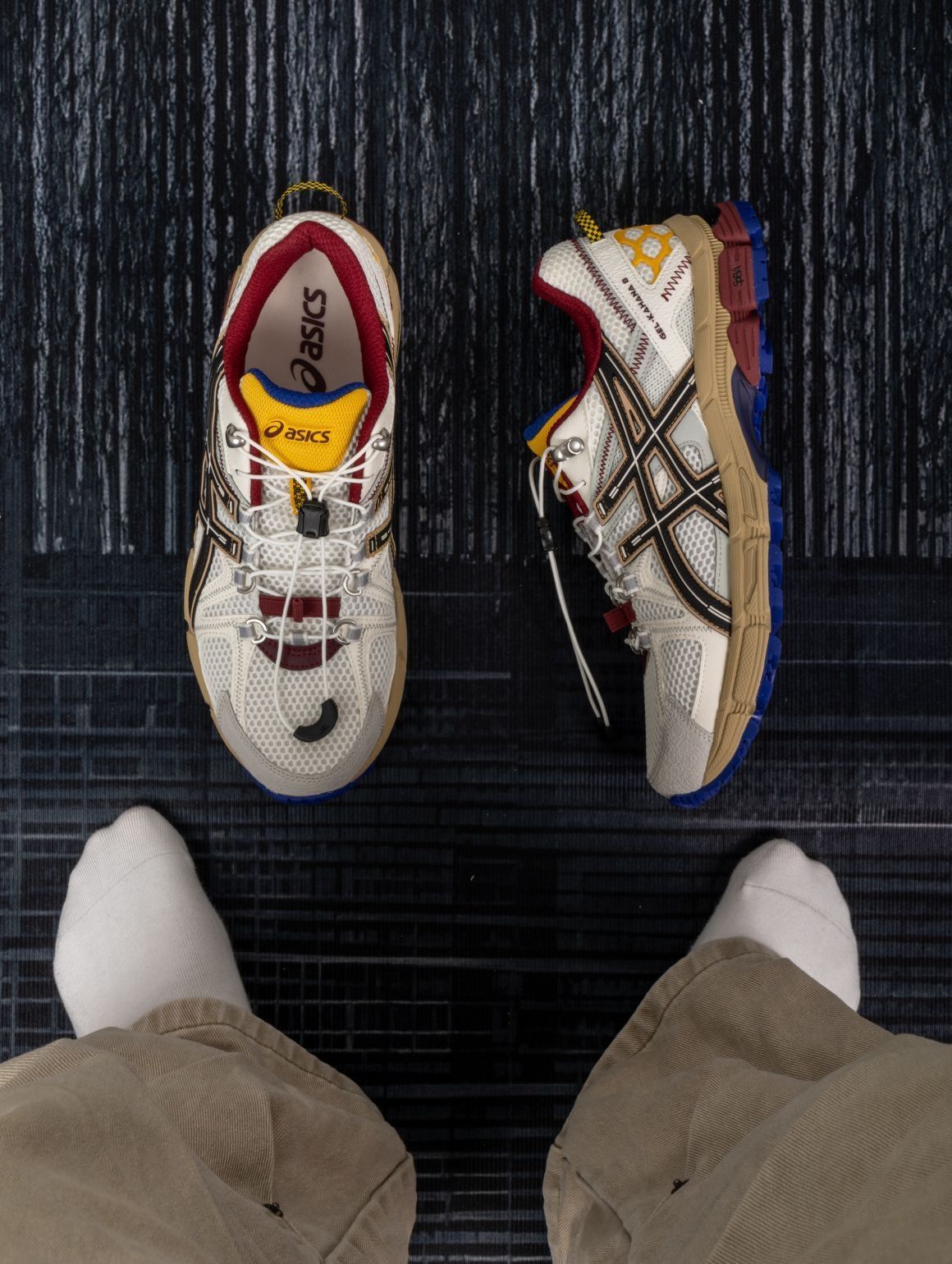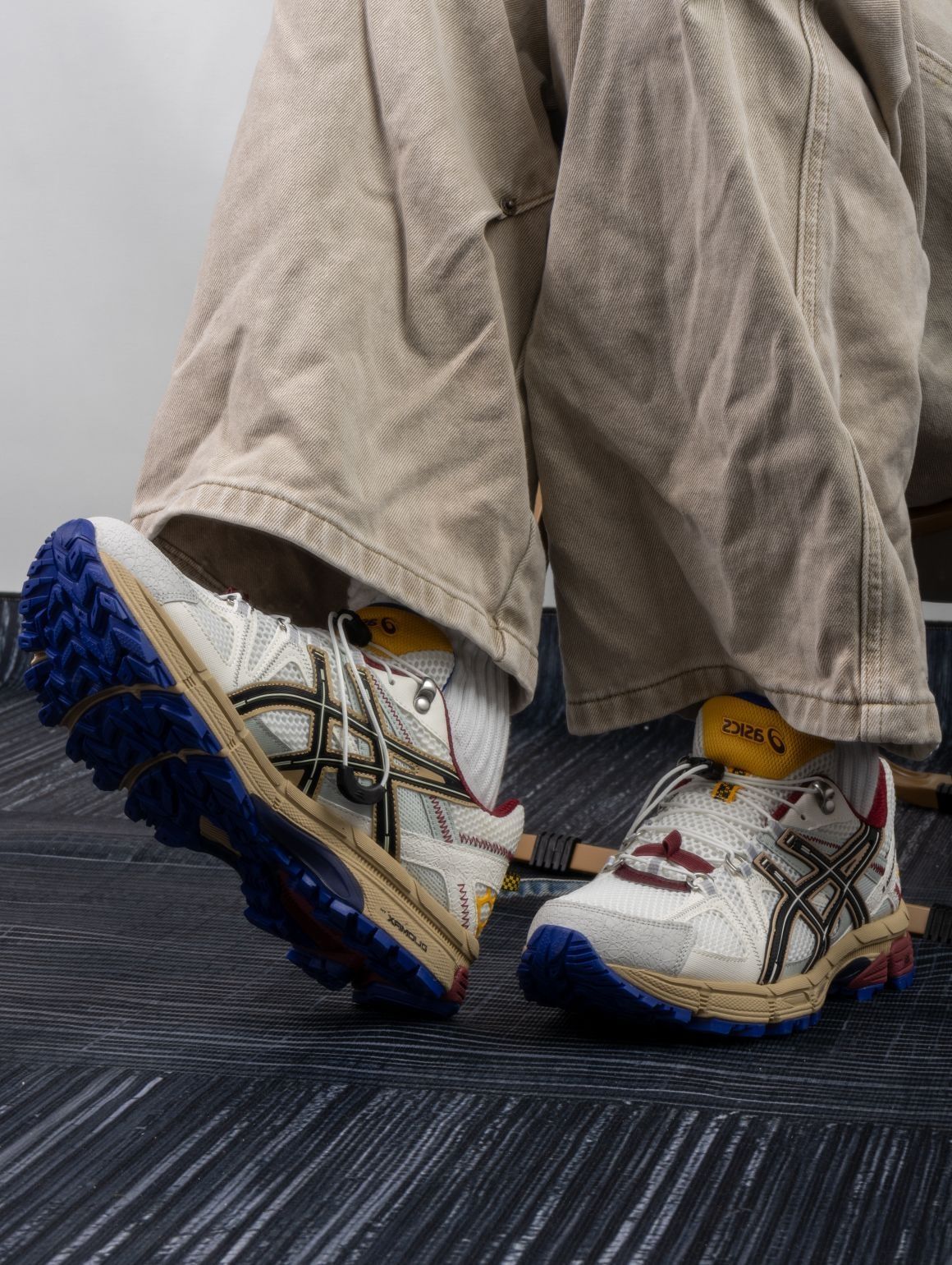 还有没几天气温就慢慢下来了,今年的短裤季也就到此为止了。长裤配什么鞋好看又好穿,我只能说,ASICS真的是我的通勤好搭子。 这双有点特别,点缀的颜色有点多,但神奇的是一点也不杂,白灰色打底,红色蓝色黄色都有自己的位置,挺帅。 脚感上面还是挺不错的,新鞋的话记得多踩踩,踩开了就很不错了