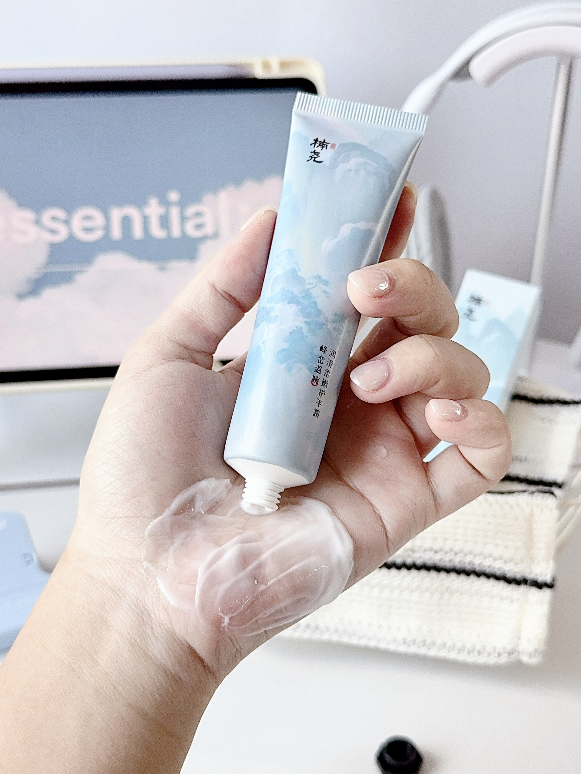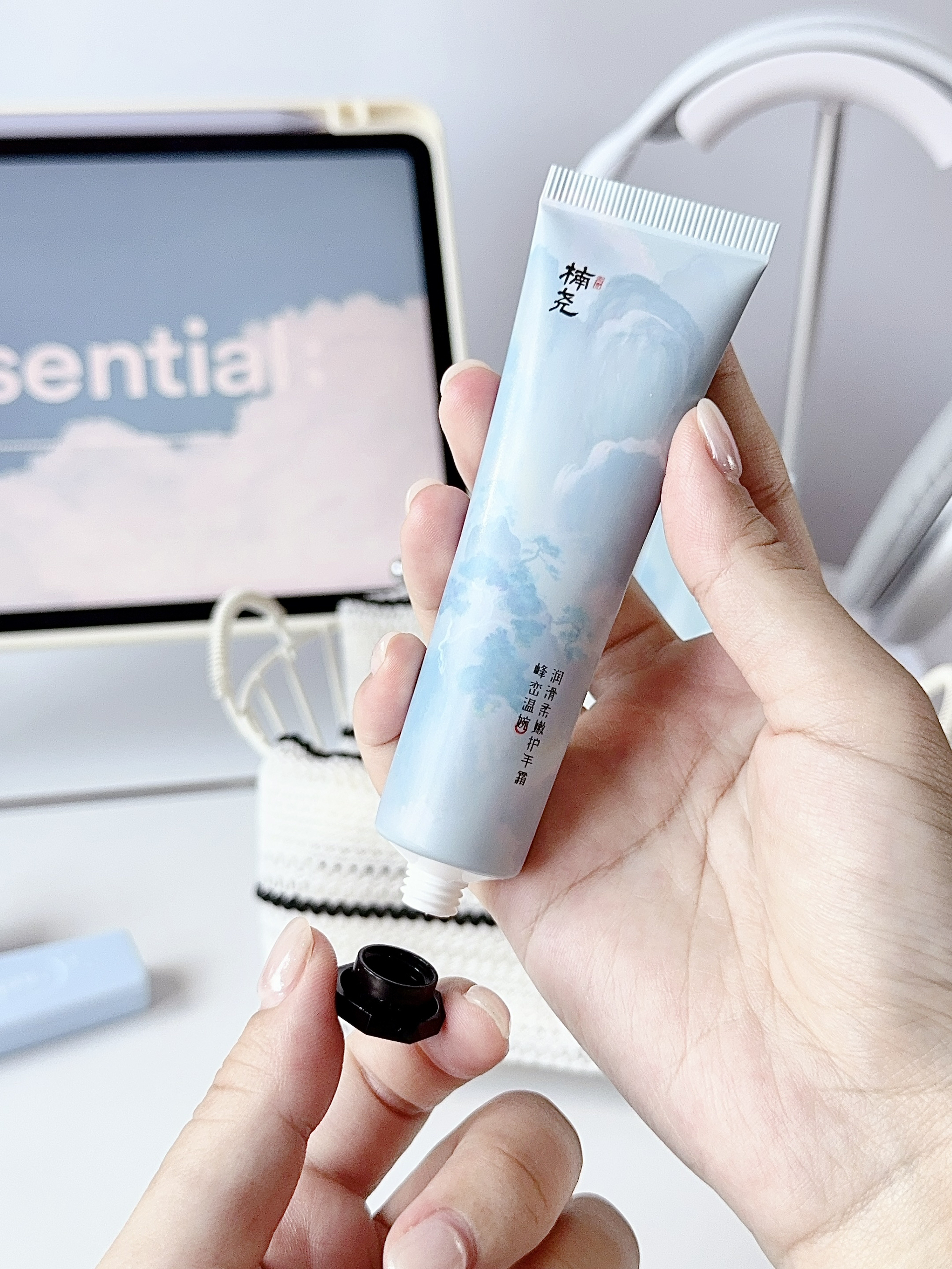 挖到一支会写诗的护手霜! 这支香氛护手霜太会了 蓝色峰峦包装像古画一般 拧开盖子就闻到山林气息 质地是乳白色的雪融膏,蛮保湿的 轻轻抹几下就推开了,也不粘手机屏 35g小巧一支塞进汉服荷包 补涂时都像在品香 我蛮爱它的东方香调~ 清冷雪松香加上温婉木质调 淡淡的香味还挺治愈的! 同桌问我是不是换了新香水 其实只是认真涂了手霜喔 你们喜欢花香还是木质调?
