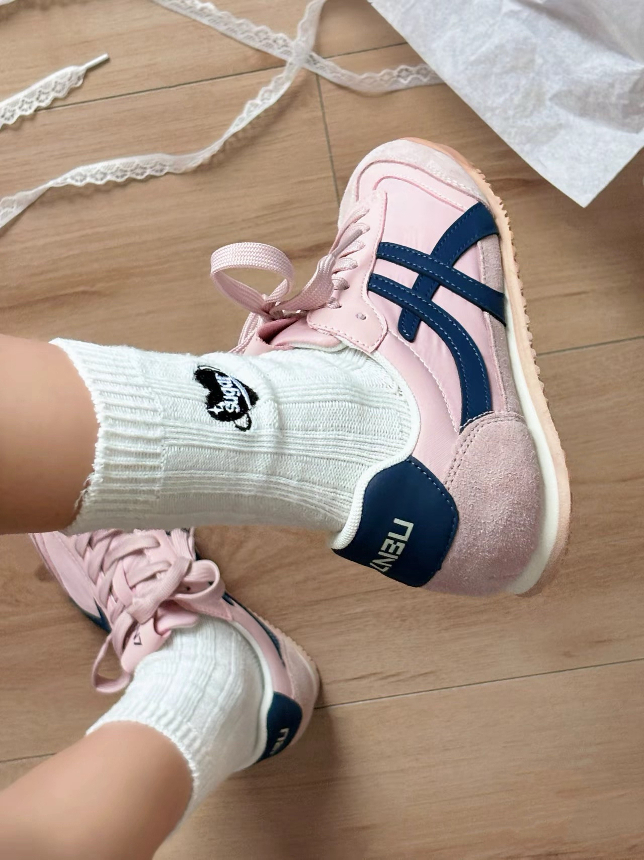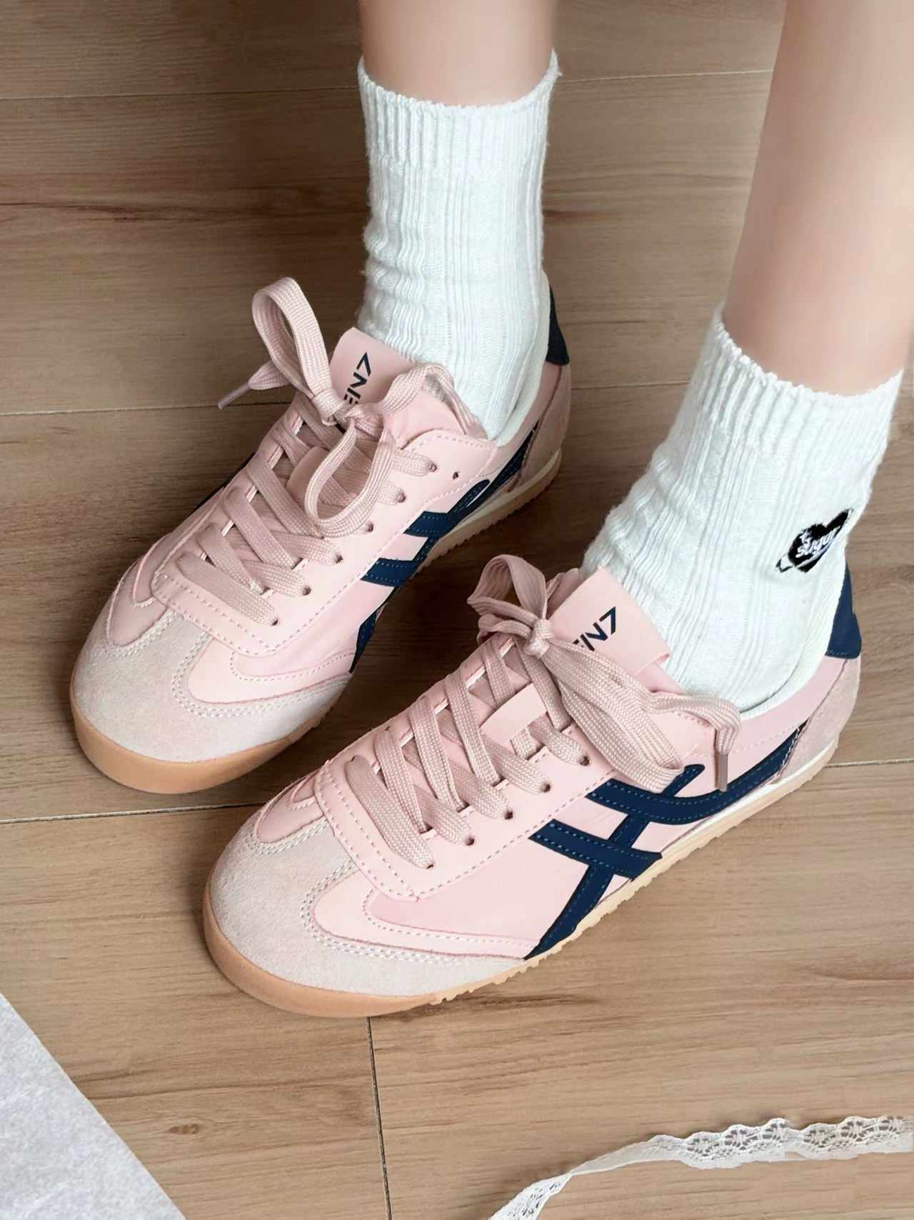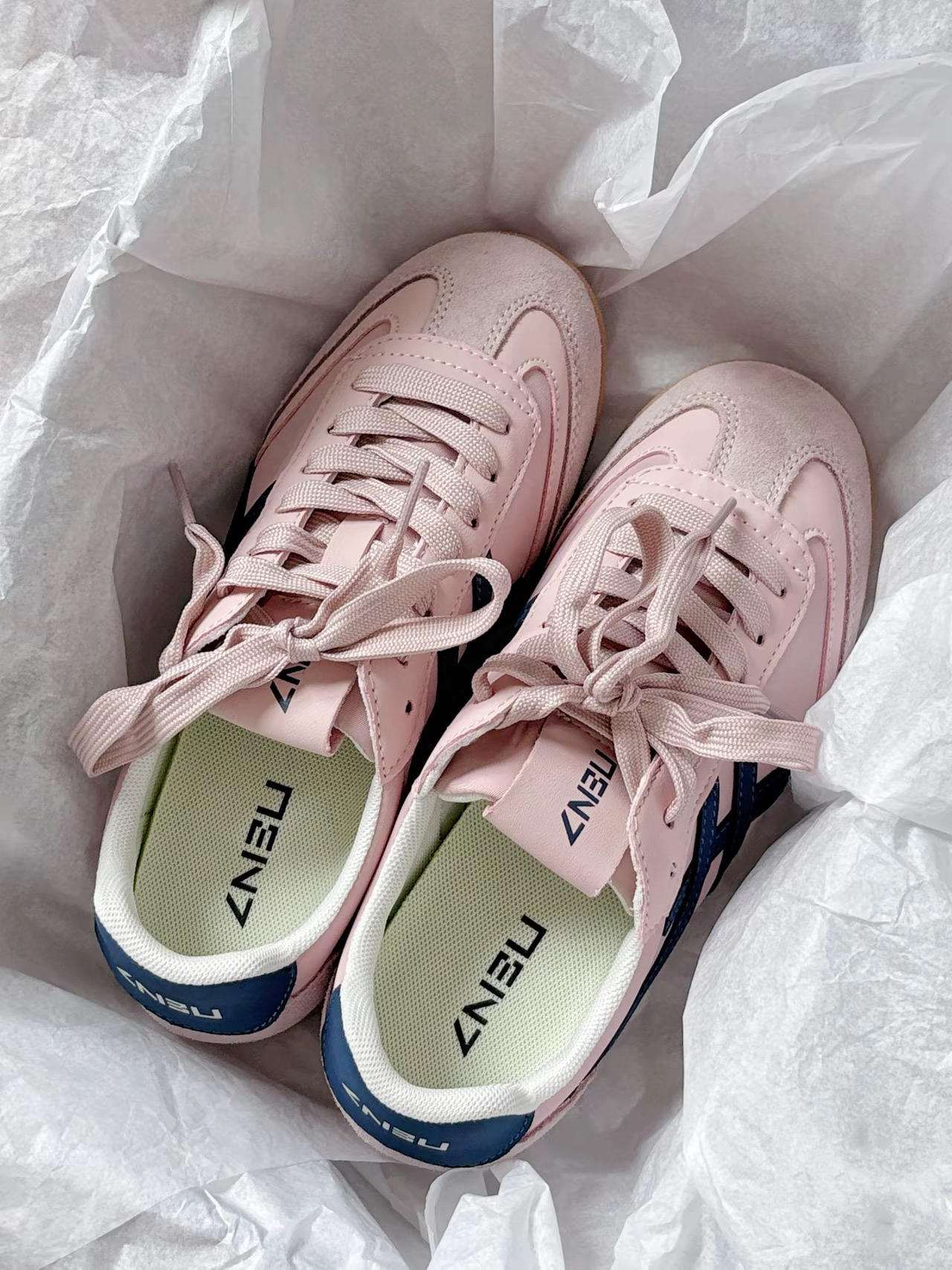 这双鞋穿着好温柔啊 鞋底是薄薄的,上脚也轻便 出门运动都是比较舒服,不会闷脚 淡粉色加上藏蓝色的线条就显得很少女 日常休闲搭配也很好看! ANBU #鞋底越薄越时髦 #甜妹少女宝藏鞋子 #超百搭休闲宝藏运动鞋 #今日宝藏白搭休闲运动鞋