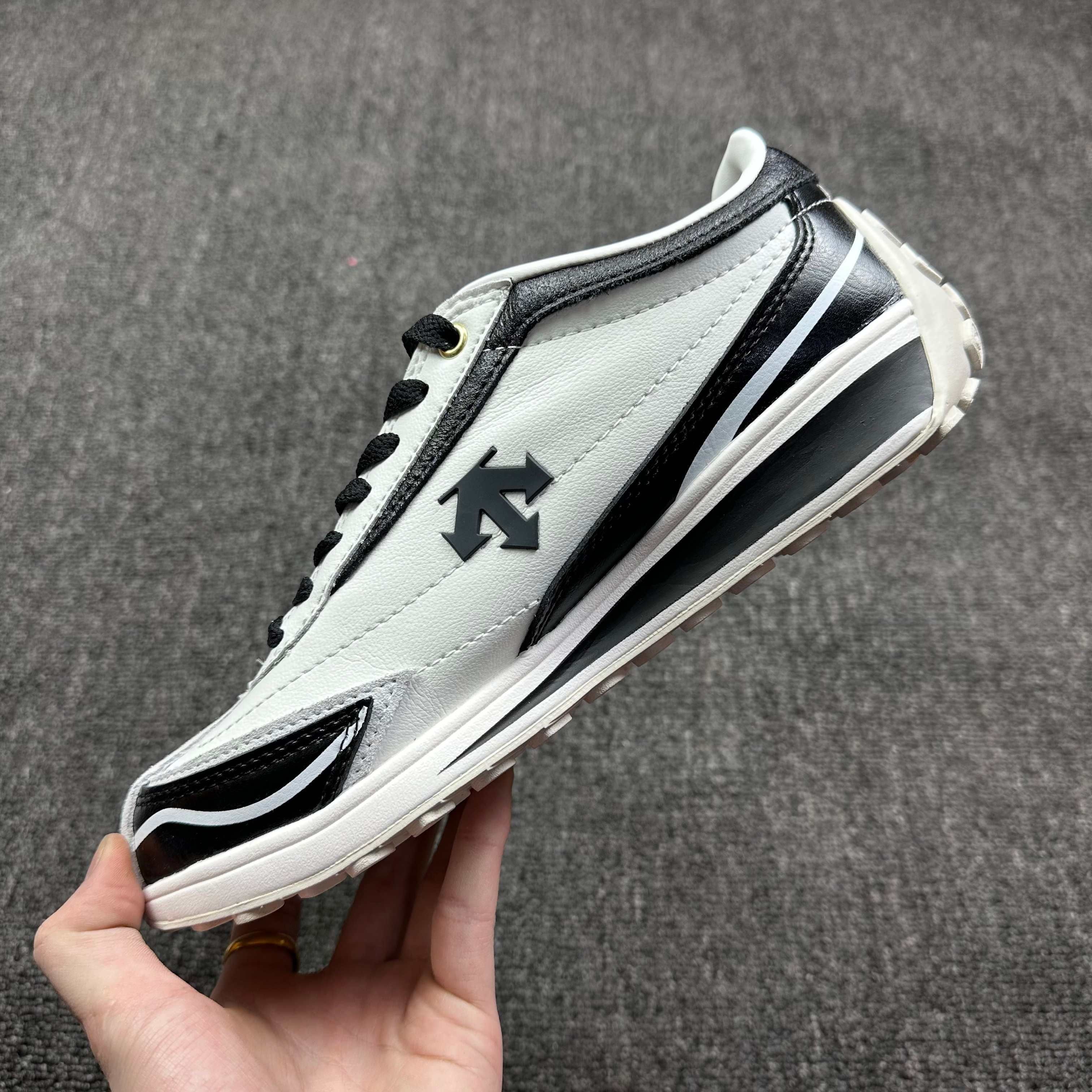 一、球鞋特点分析 设计风格: 经典复古:鞋型延续80年代赛道鞋基因,流畅线条+低帮设计,黑白配色简约不单调,鞋侧金属标牌提升高级感。 商务休闲融合:摒弃传统运动鞋的夸张元素,哑光皮革与织物拼接,兼顾正式与松弛感,适配职场与日常场景。 功能性亮点: 轻便体验:单只鞋重仅约320g(男码42),中底采用轻质EVA材质,长时间行走无负重感。 细节工艺:车缝线工整,后跟加固支撑,防滑橡胶底纹路抓...