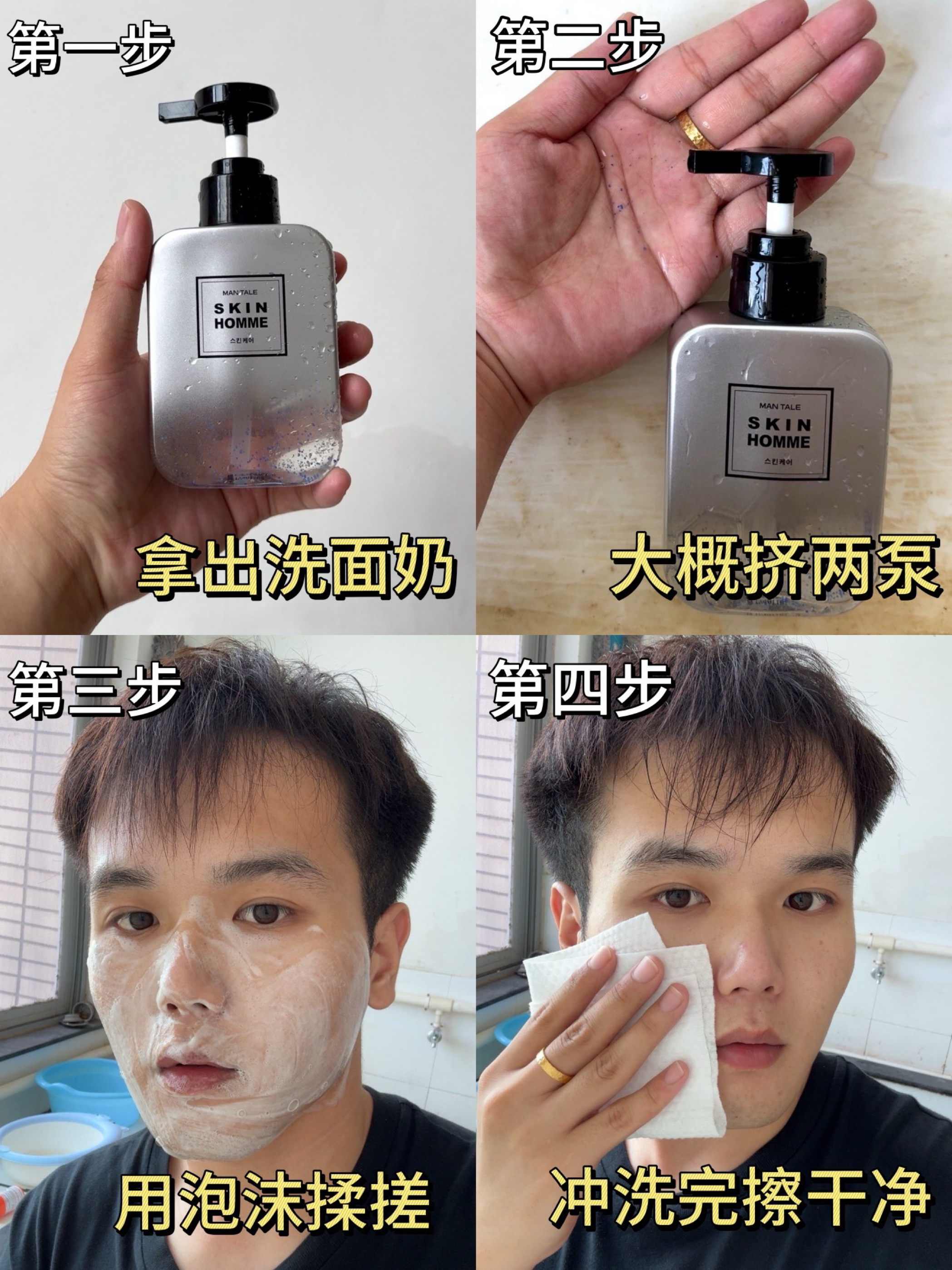 很多男大学生想学习护肤知识来改变现在油腻邋遢的皮肤状态,可是都不知道从哪入手,跟风买了很多产品,都没有起到很好的作用。 下面我来教大家正确的护肤流程!一定要学会! 我经常使用的是这款 曼逖 的美白控油去黑头套装,里面有基础护肤的洁面乳、保湿露、面霜,还有进阶护肤的泥膜和面膜。洁面乳温和不刺激清洁效果好,保湿露和面霜都很水润清爽,特别适合夏天! 洗脸的时候要挤到手上先揉搓出丰富的泡沫...