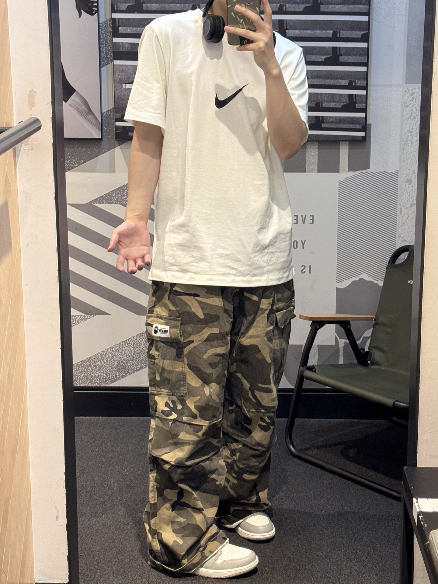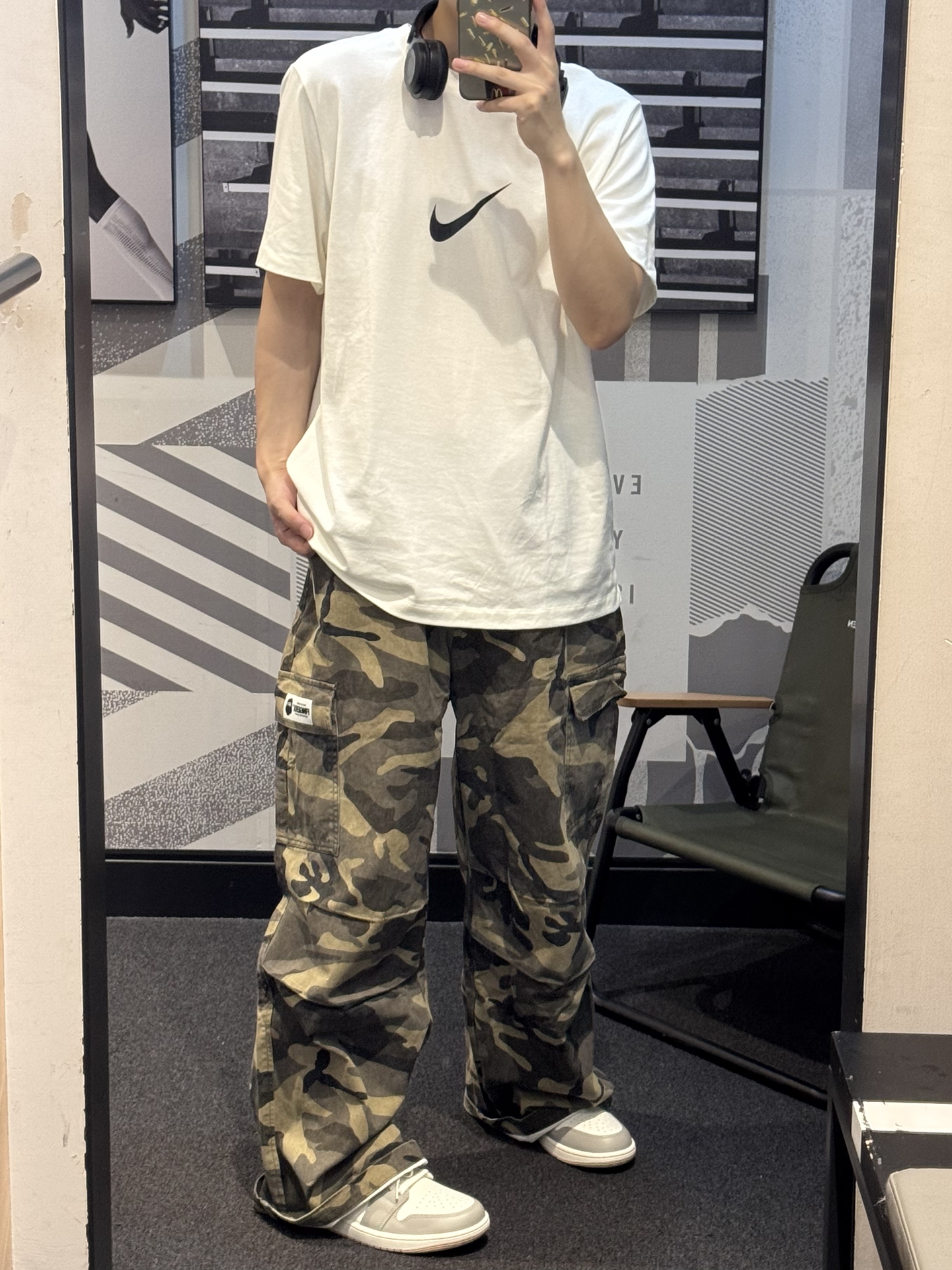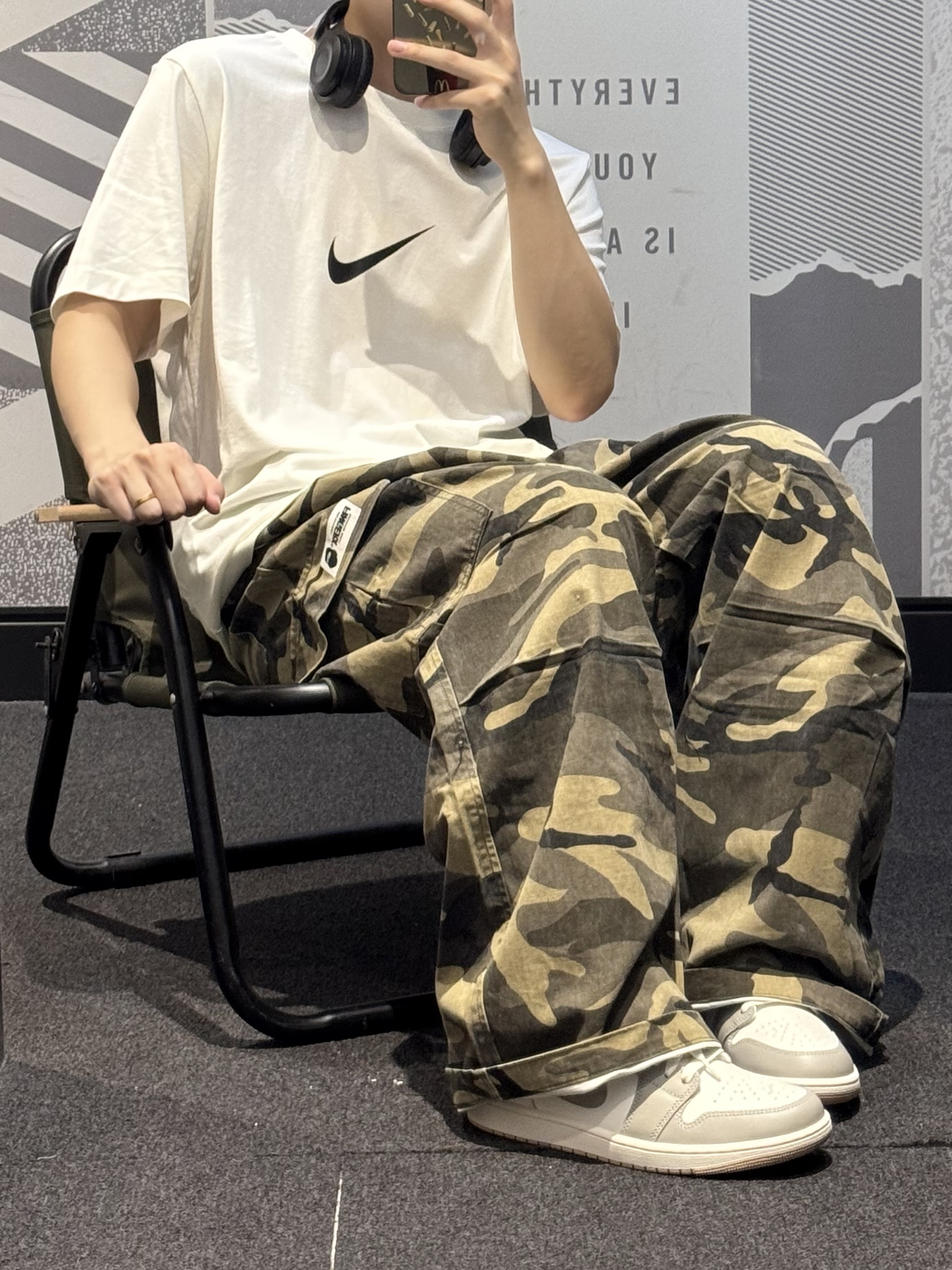 今天分享一条贼拉好穿的迷彩裤~ 是直筒宽松版型的 完全不担心挑腿型 怎么穿都好看😉 工装面料硬挺有型 侧边大口袋设计 还挺实用的💯 搭配白色T恤➕同色系aj 这套轻松get街头少年感穿搭🎧 #Fingercroxx #猿人头 #这条裤子我必买 #开学报到OOTD #3秒简单穿出高级感