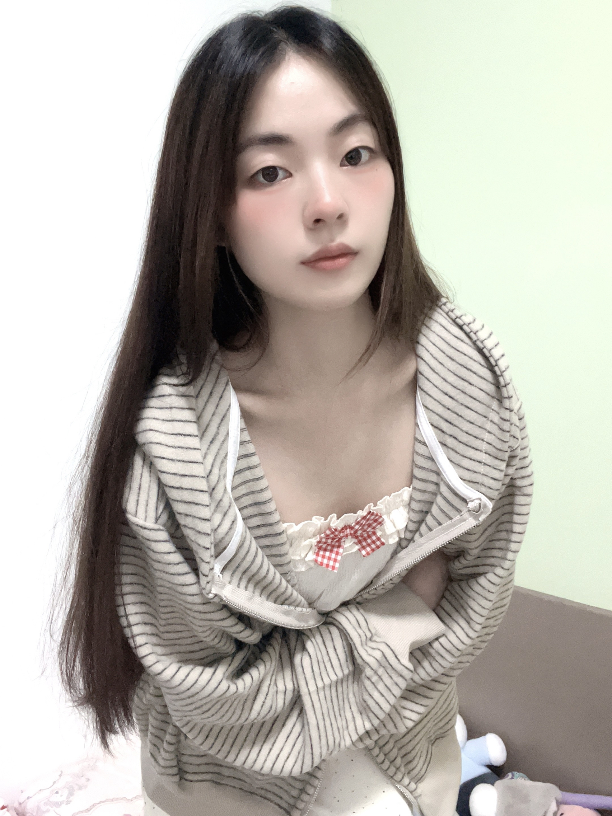 条纹外套噂嘟好显瘦 面料是毛茸茸的,很柔软,很暖和而且版型也很宽松,穿着好好看 日常搭配也很百搭呦