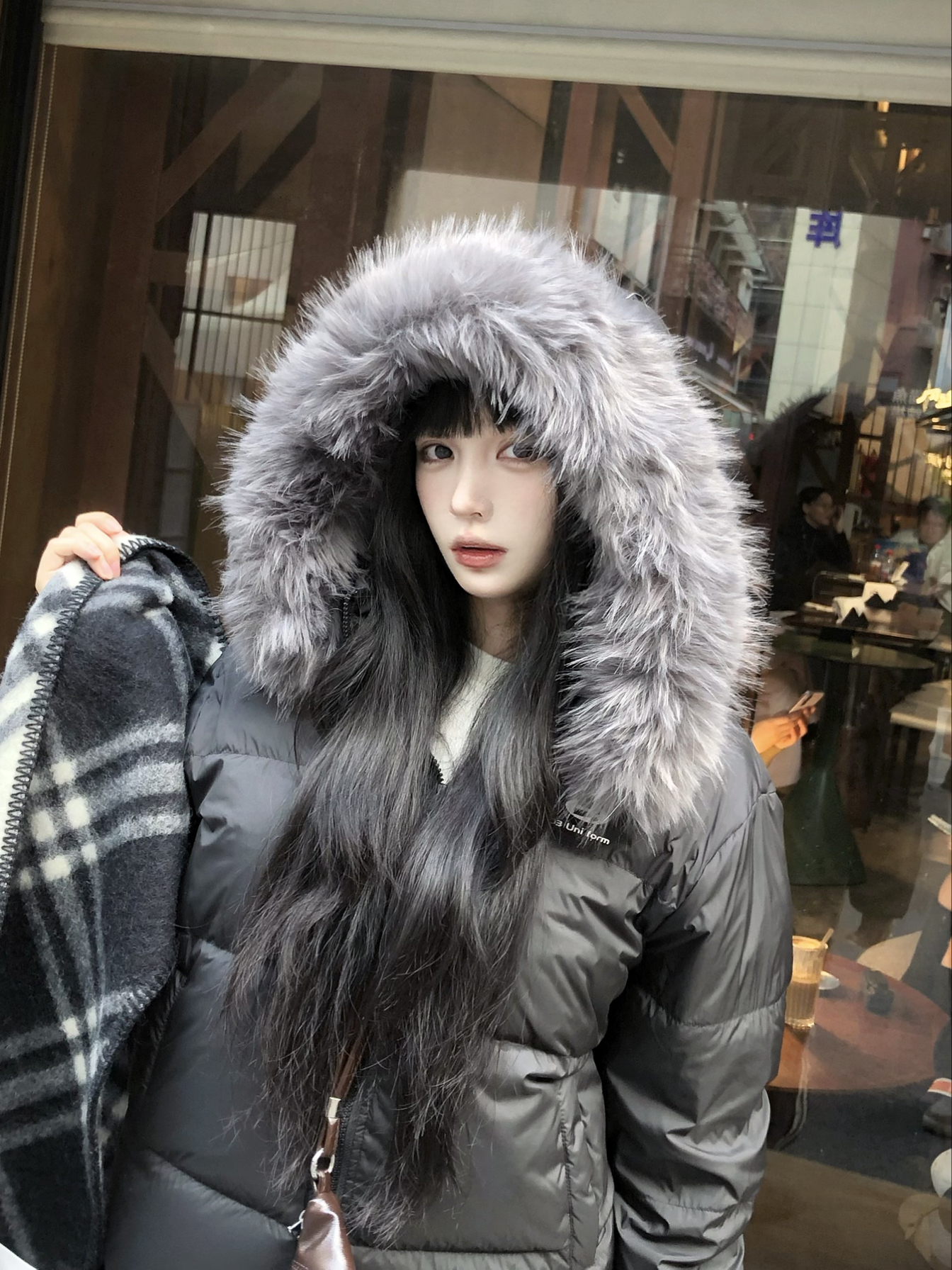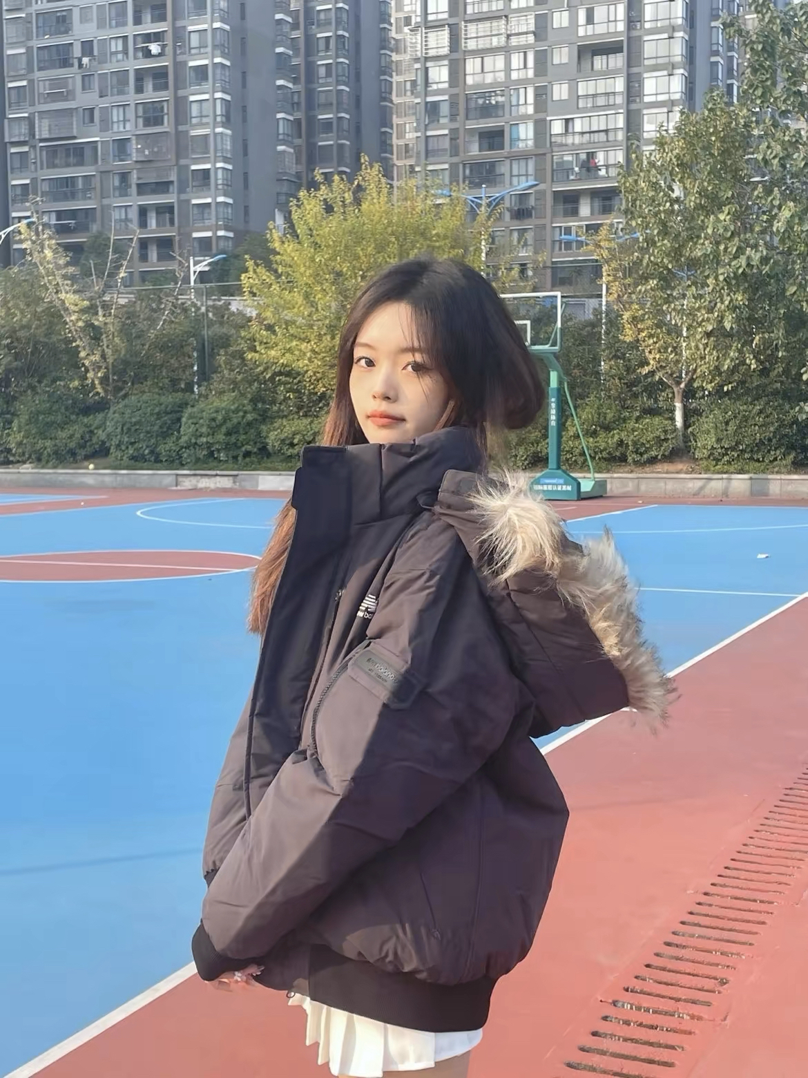 好喜欢这件黑色羽绒服!黑色毛领款经典百搭,叠穿衬衫也很好看,三防面料不容易脏,充绒量足厚,东北晚上拍的,很舒服