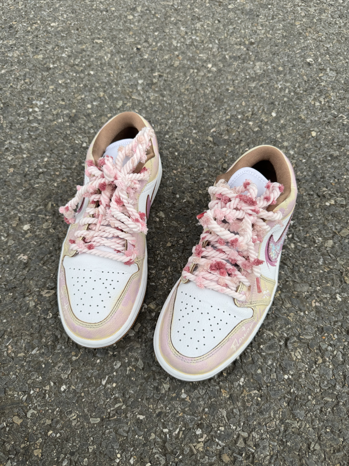 本篇笔记关联了【定制球鞋】Air Jordan 1 减震 耐磨 透气 平跟 复古 潮流 简约 包裹性 防滑 轻便 支撑 增高 板鞋 粉漾花海等商品,为用户提供真实的使用体验和购买参考。