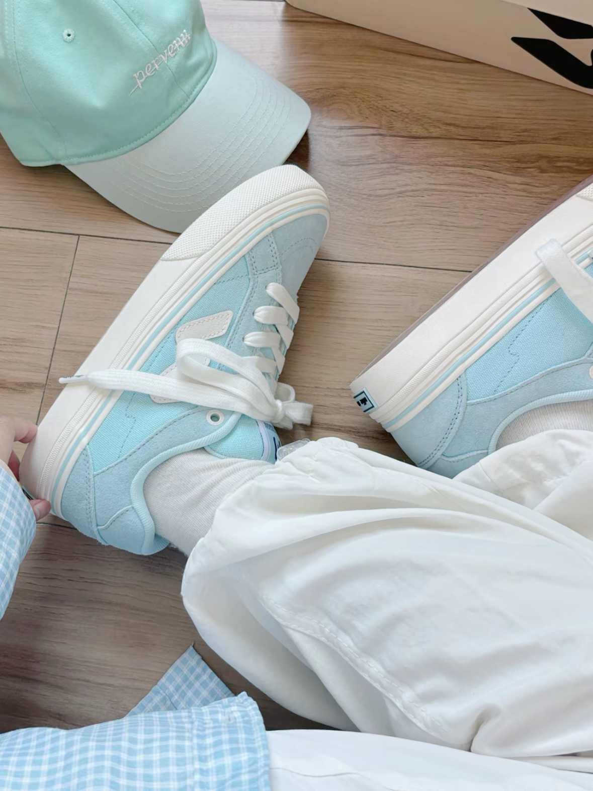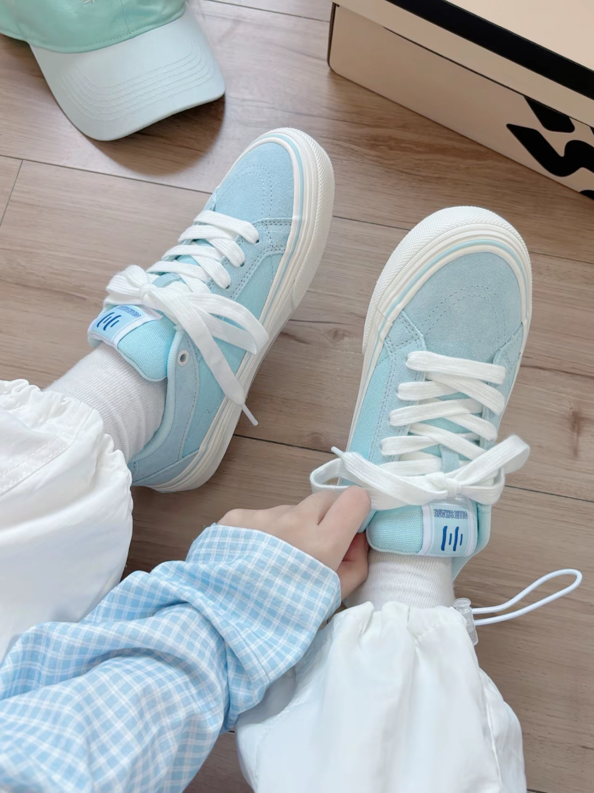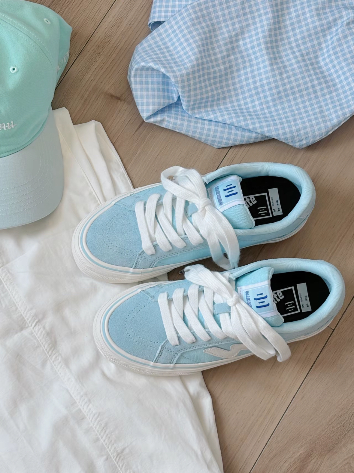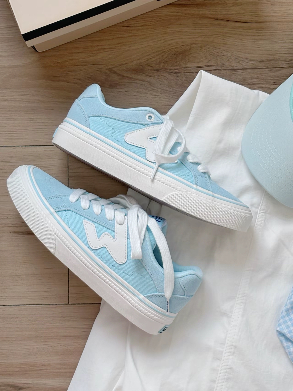 奶呼呼的蓝色🩵吼吼看~ 穿上尊嘟好温柔治愈啊 鞋子还给了一个蓝色鞋带,可以自己diy 夏天穿着不会闷脚 日常随便搭都很清新干净✨ #蓝色潮流板鞋 #夏日时尚板鞋 #奶呼呼的蓝色鞋子 #顽刻滑板鞋 #蓝白板鞋太好看