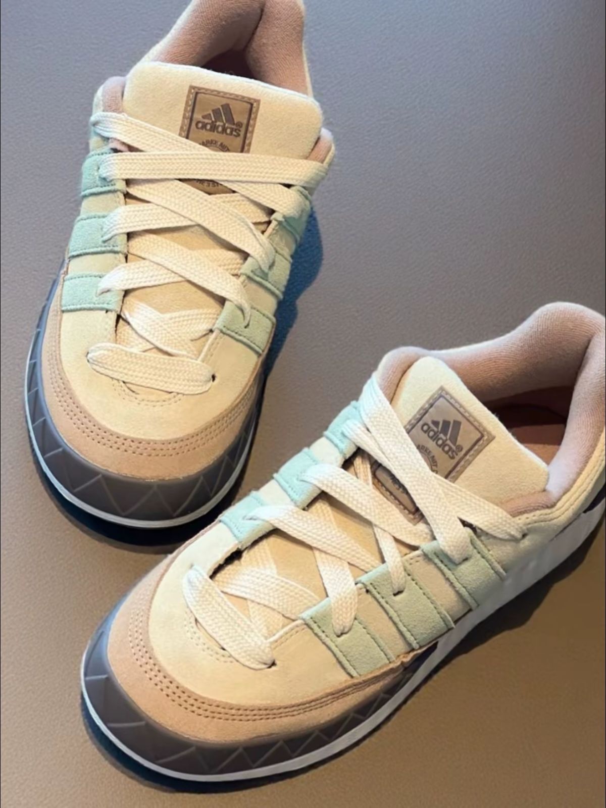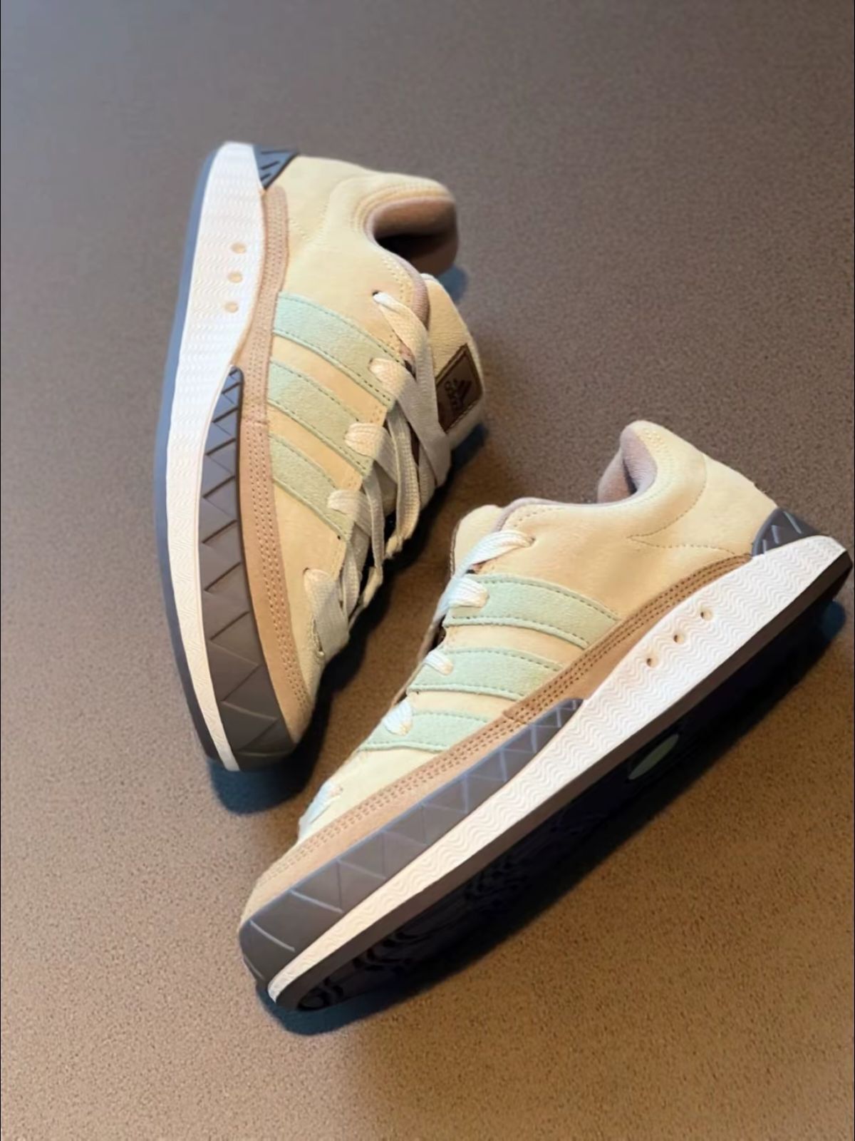 家人们!谁懂啊!挖到一双能穿到天荒地老的宝藏板鞋!就是这双adidas originals Adimatic 白黄配色,真的一眼戳中我这个复古控的心巴! 先说这颜值,“复古鲨鱼面包”这名字可不是白叫的!鞋型圆滚滚的像个胖乎乎的小面包,鞋头微微上翘,侧面还有点鲨鱼嘴的弧度,又萌又酷!白黄配色真的绝了,干净的米白色打底,鞋舌和后跟拼接了暖暖的鹅黄色,不是那种扎眼的亮黄,是带着点做旧感的复古黄,阳光下...