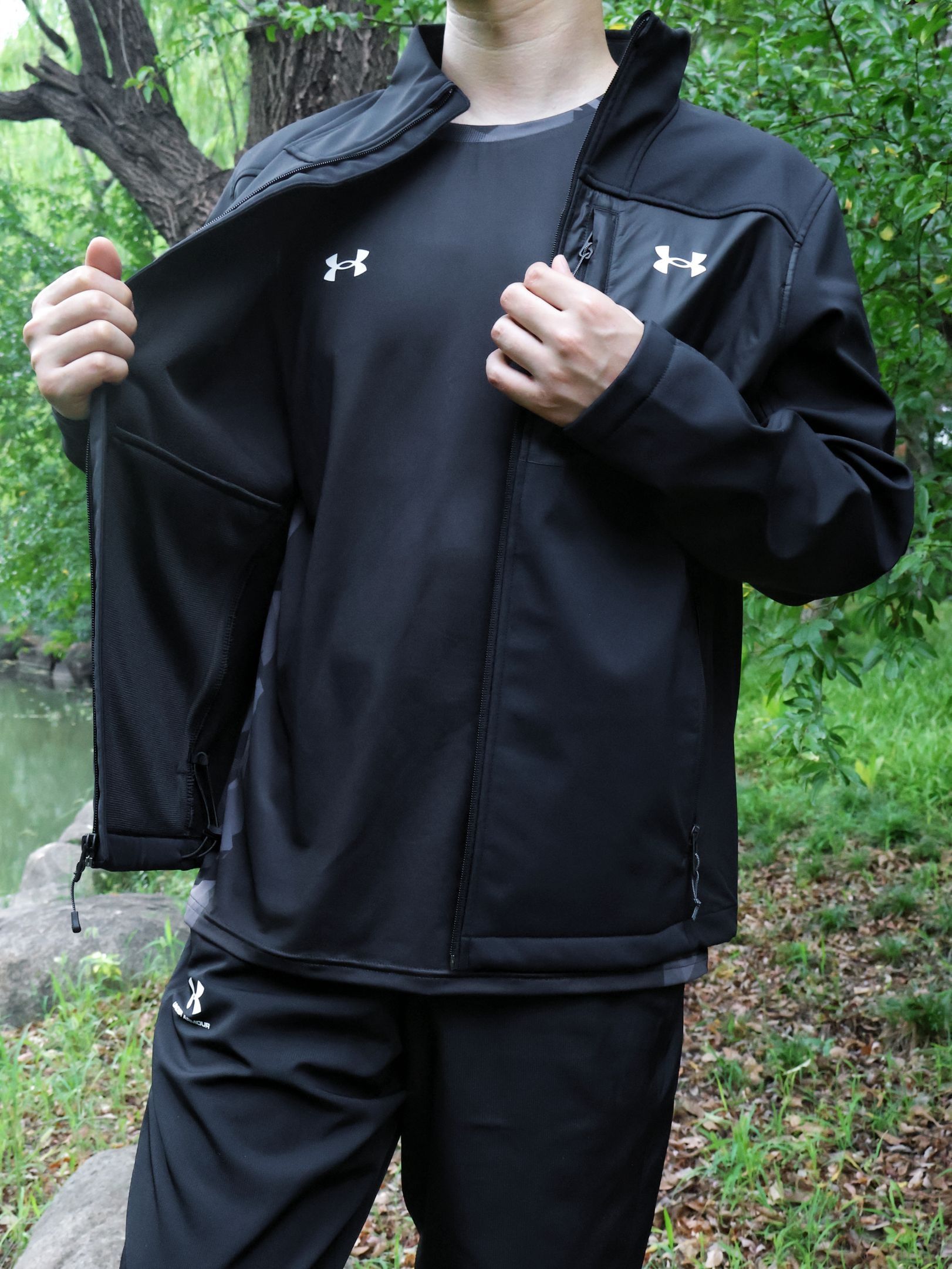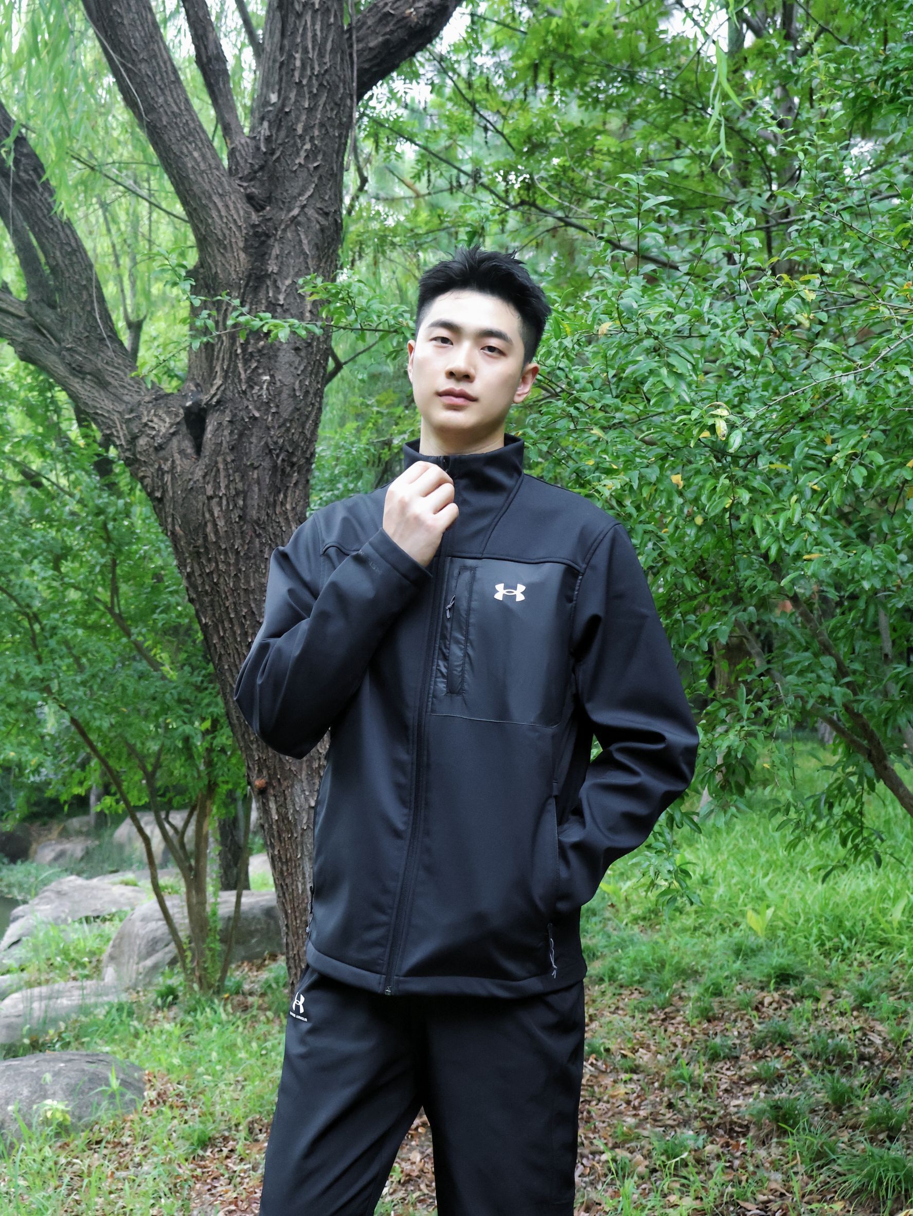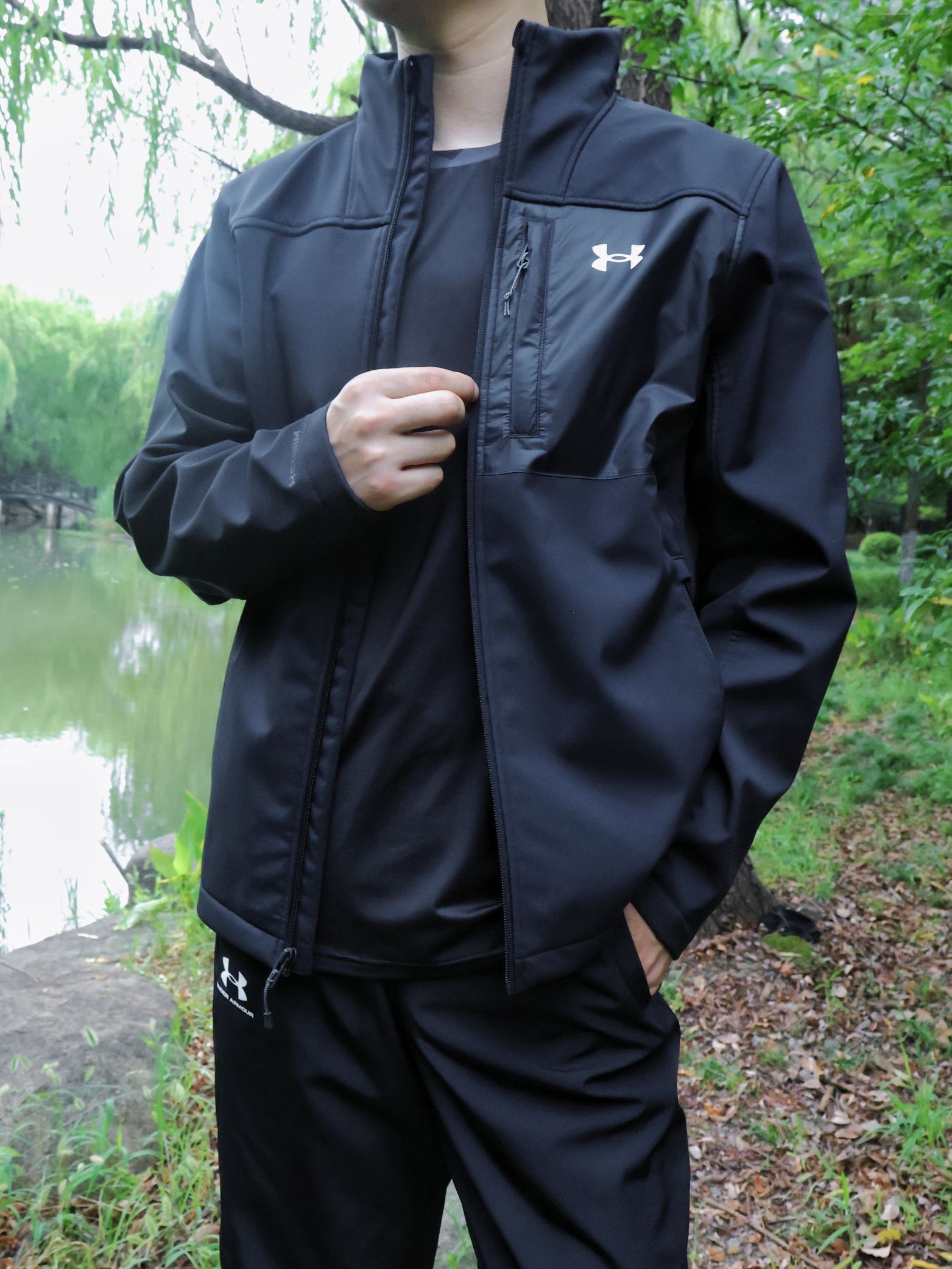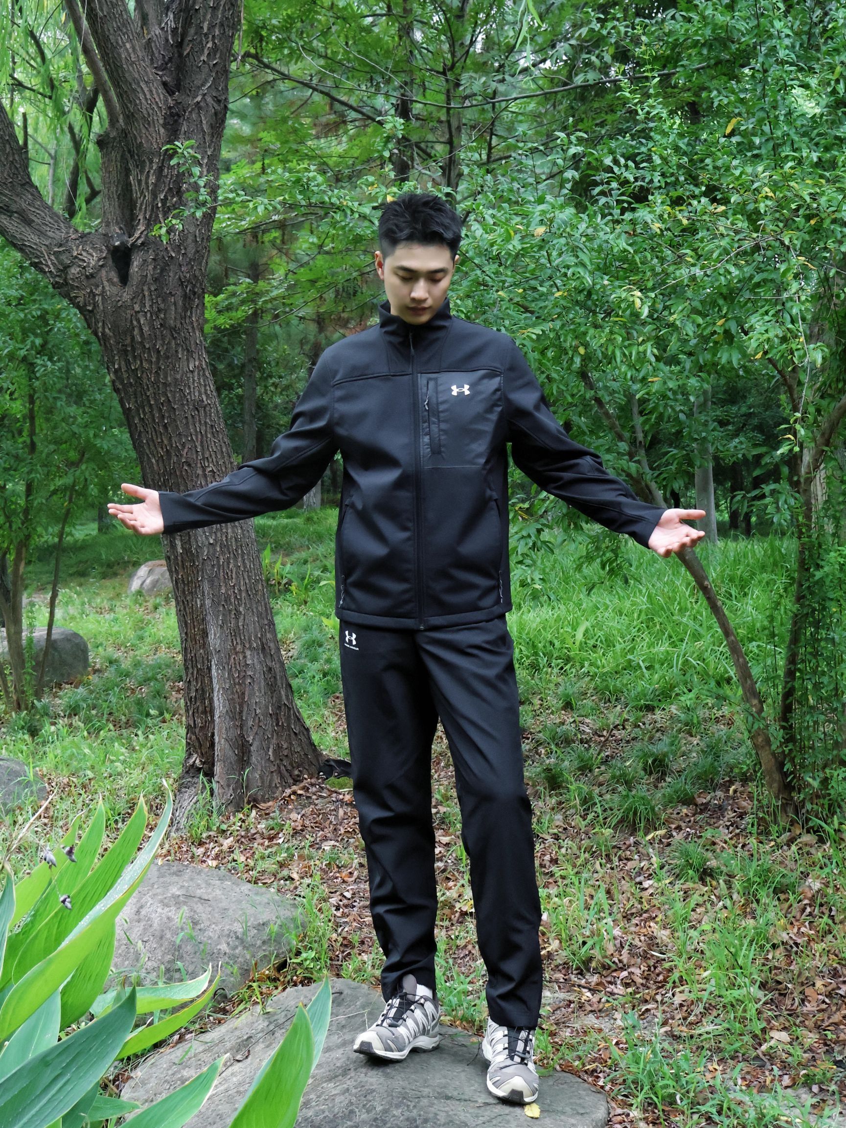 这才是户外该有的样子OOTD~ 秋季户外跑步休闲有一套舒适的装备很重要~ QUnder Armour 安德玛户外运动夹克~衣服上身很立挺~ 立领设计防风效果也是不错的~ 衣服整体厚度适中~ 多口的设计方便储物~ 秋季户外okk的~ QUnder Armour 户外运动裤~裤子弹性很好~不闷热~ 户外防水防污很okk 户外徒步休闲很合适~ 小倪:181cm 70kg 上身LG合身~