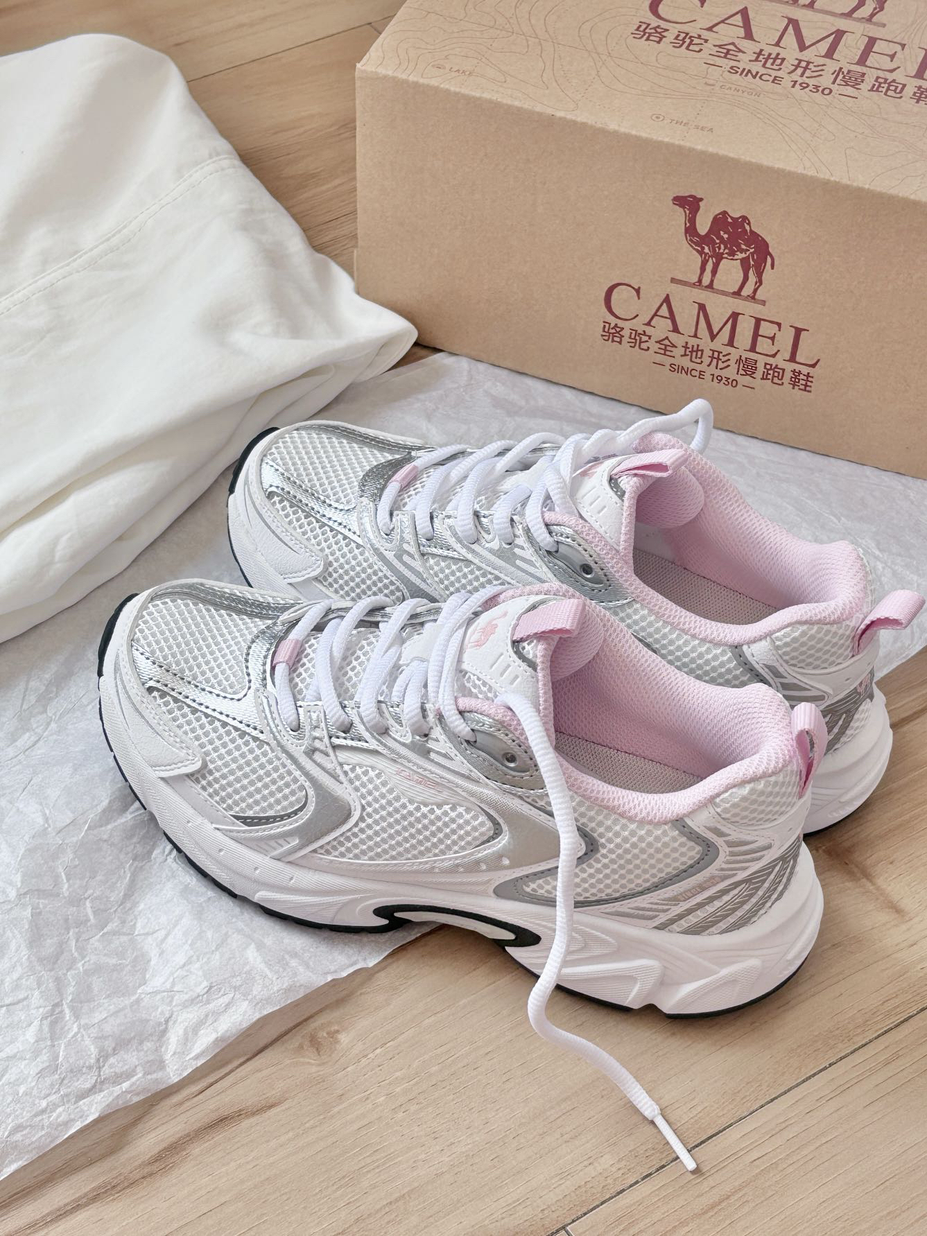 现在老爹鞋越出越好看了 这个粉也太嫩了~搭配银色就很甜酷 有种少女机能的感觉 网面穿着比较透气,夏天穿上跑步也不会闷脚 好适合运动日常的休闲搭配吖 CAMEL骆驼 #把这双鞋焊在脚上 #百搭休闲宝藏运动跑鞋 #春夏宝藏透气老爹鞋 #骆驼光速跑步鞋 #运动老炮穿搭