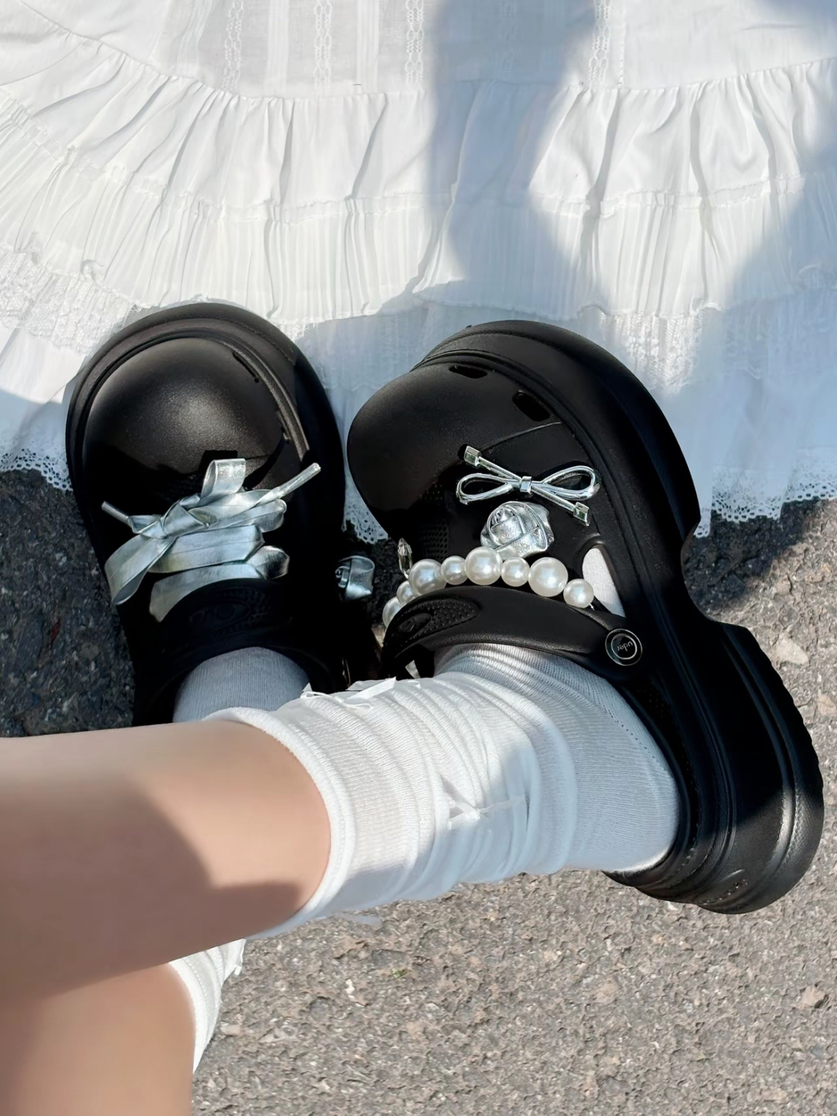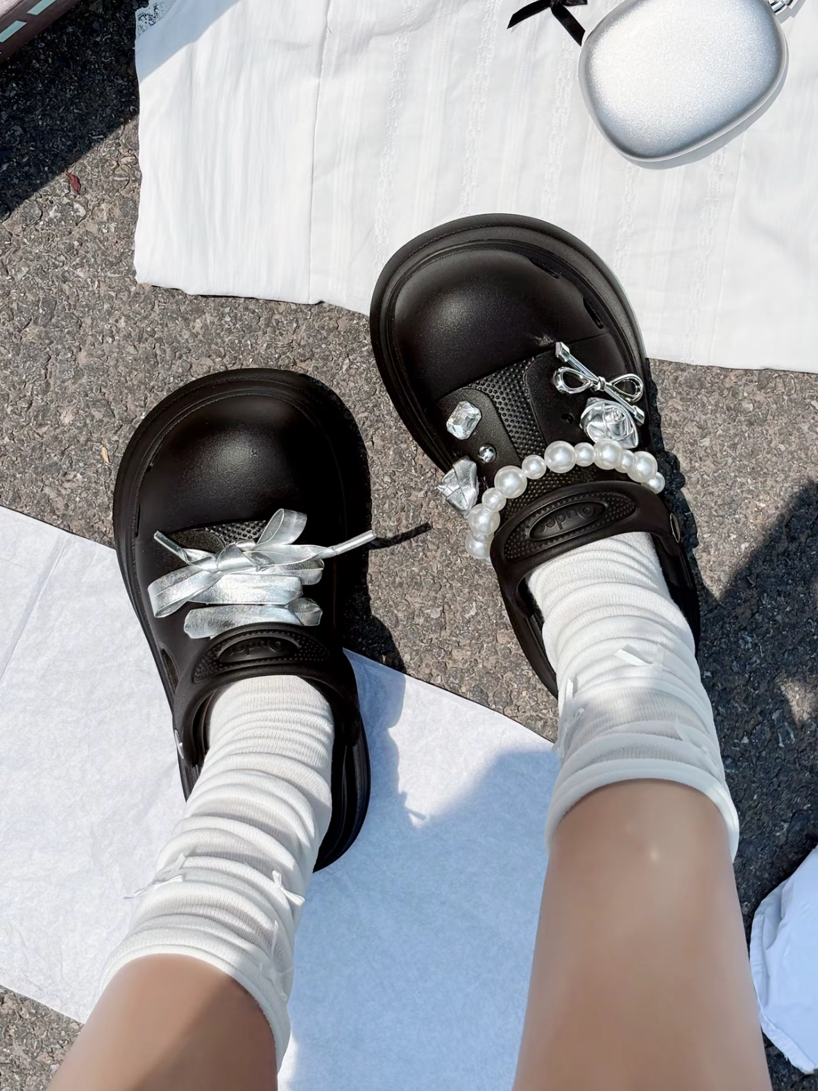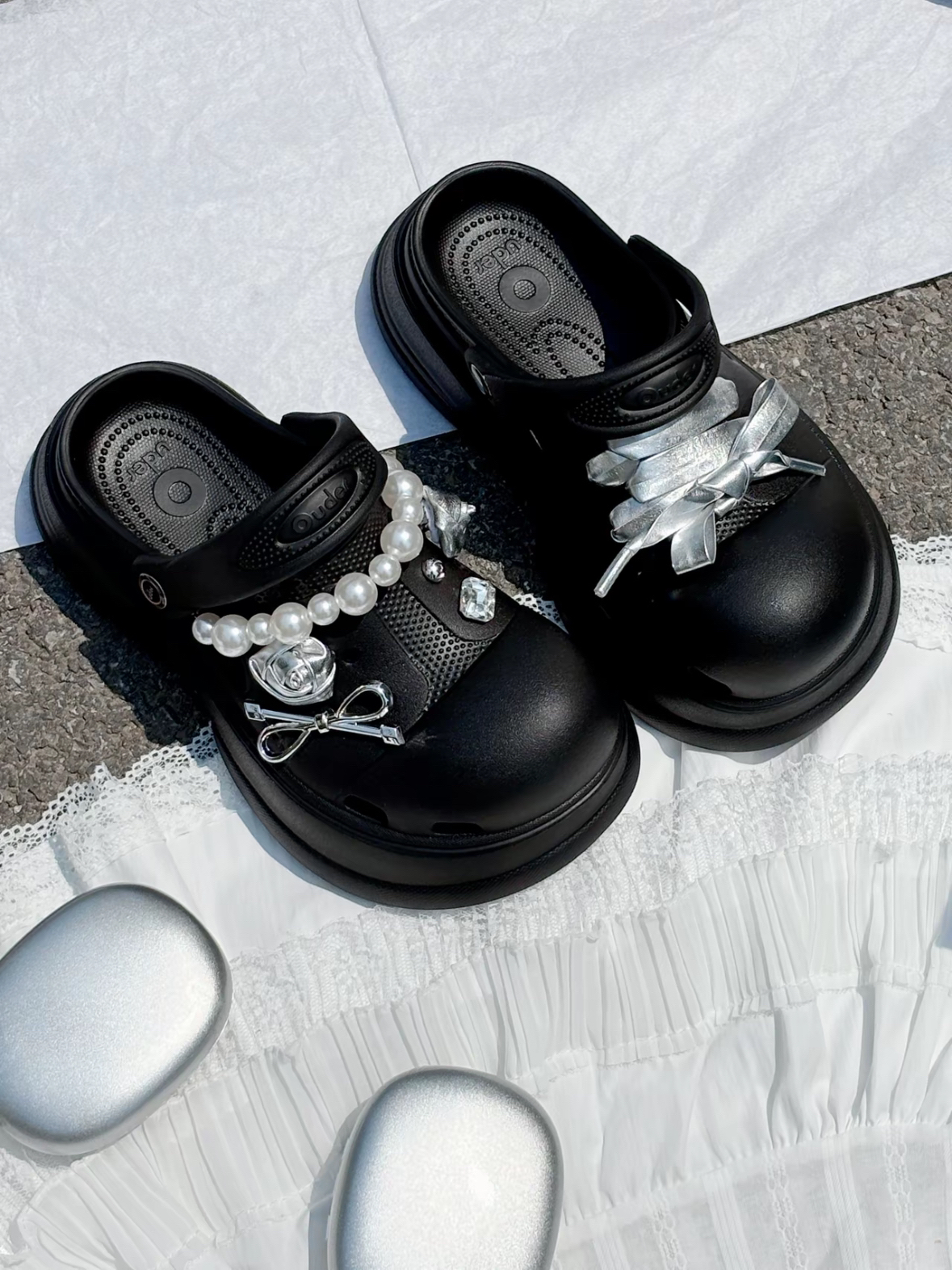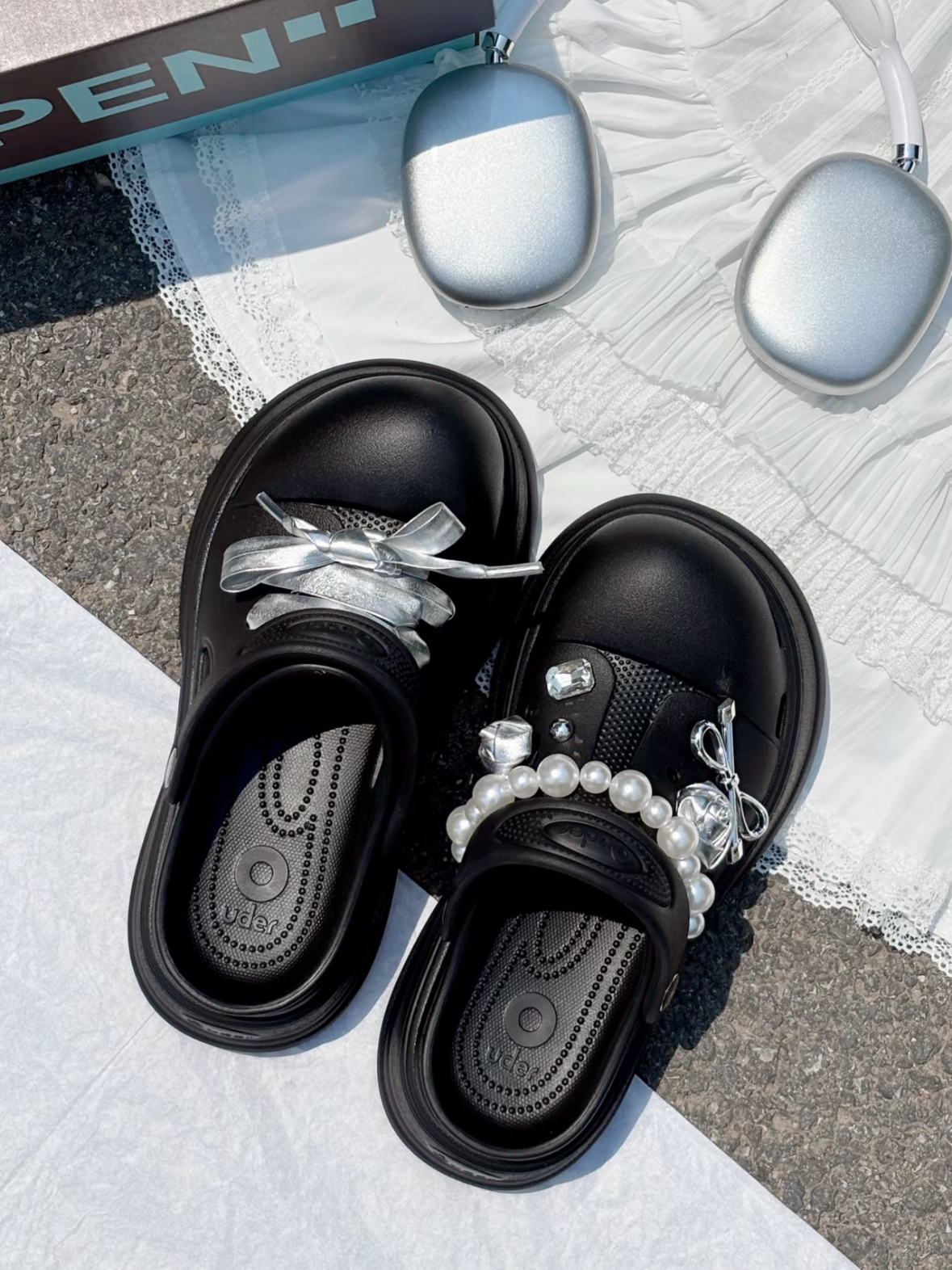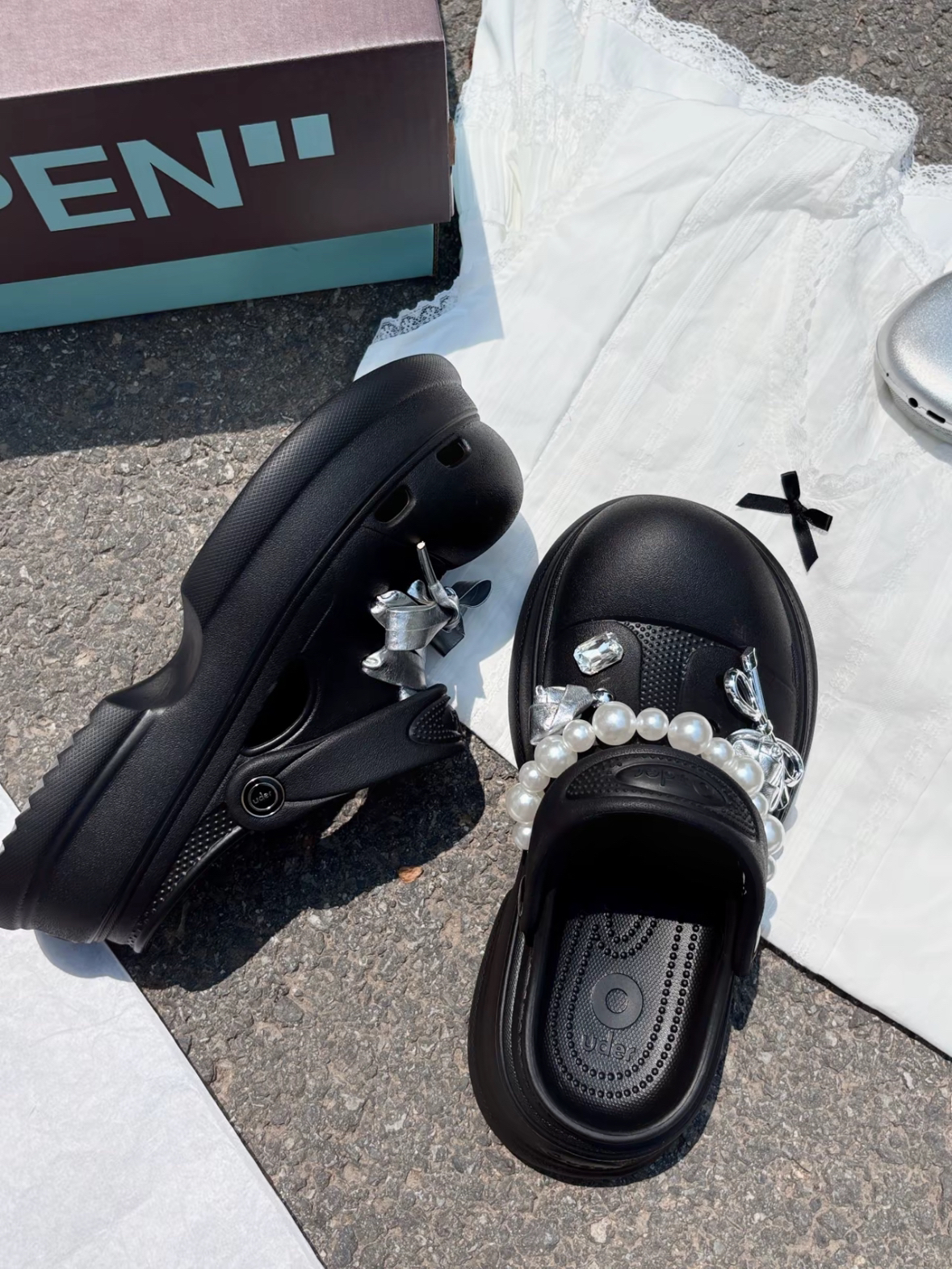 这双真的好看啊! 配饰在阳光下都bulingbuling的 没有女孩子能拒绝闪闪的东西啊✨ 鞋子是比较硬的,穿着不容易变形 黑色就很百搭,随便一拍都很甜美吖~ #夏天就是要穿洞洞鞋 #甜酷女孩宝藏鞋搭子 #ouder雪糕系列洞洞鞋 #洞洞鞋统治的天下 #甜妹少女宝藏好鞋