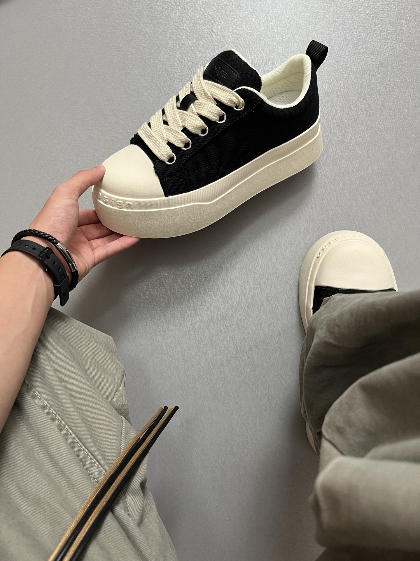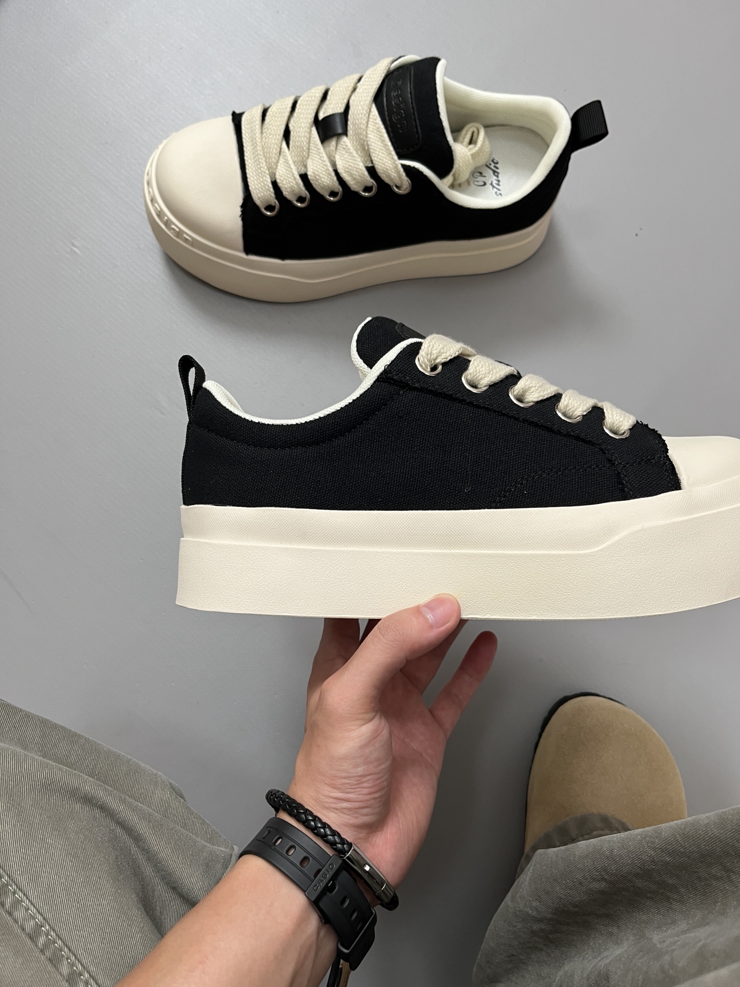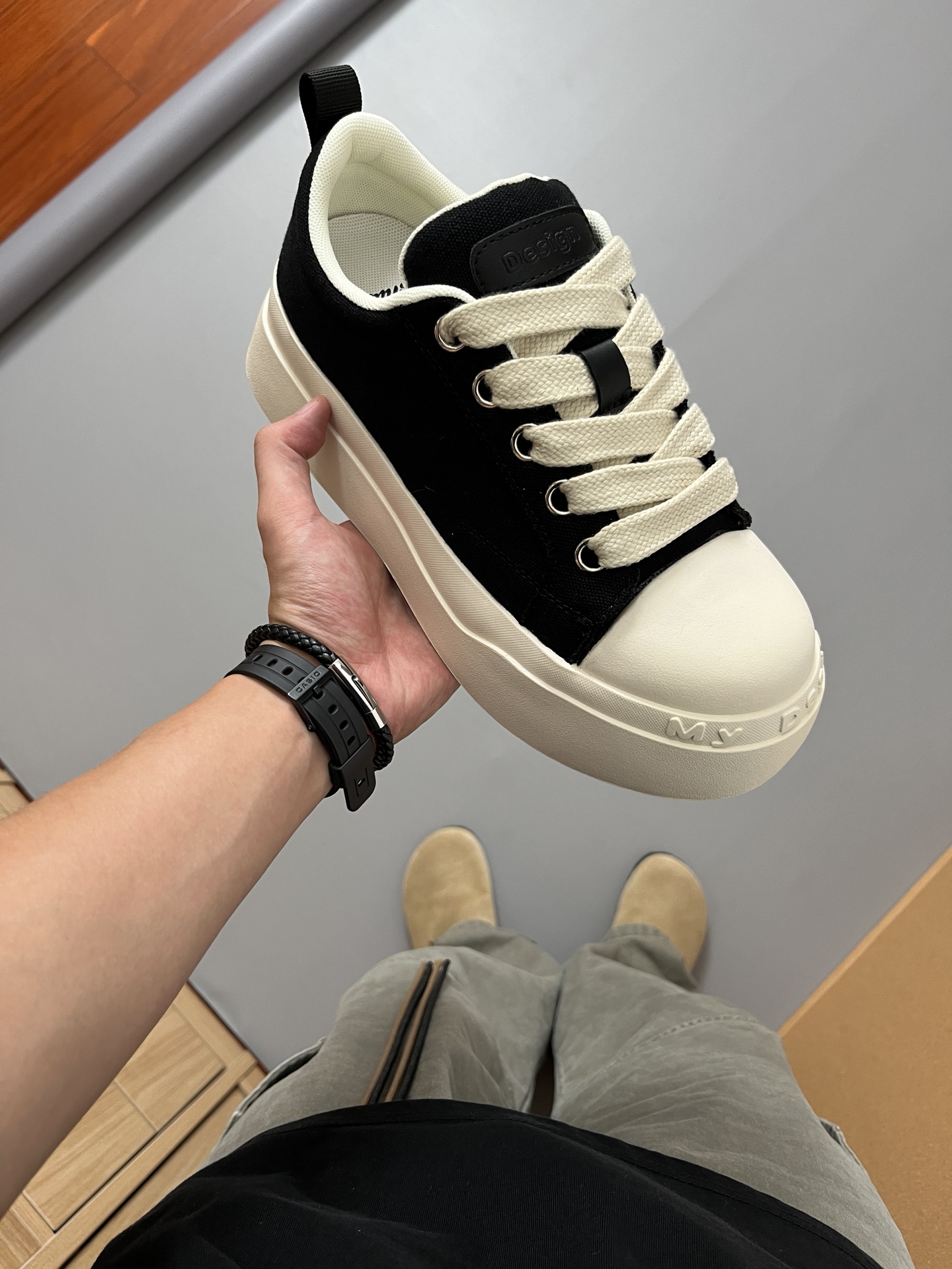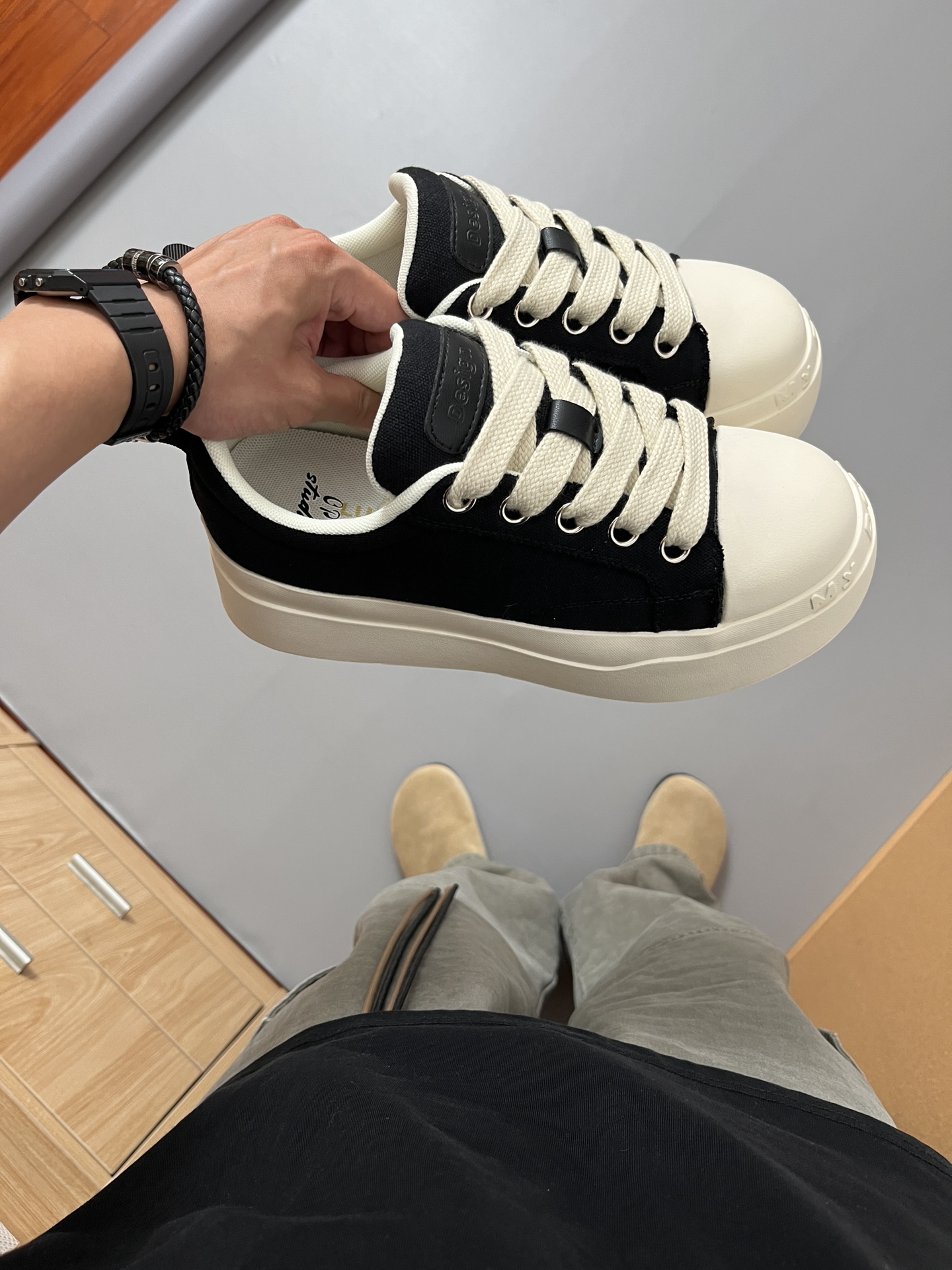 最近被罗迈克这双大头鞋狠狠拿捏啦!⬇️ ✅黑白拼接配色经典又好看,帆布材质鞋面增加氛围感,大头鞋头才是重头戏!🔥加上文字刻画显眼又吸睛!上脚踩屎感十足,通勤挤地铁、周末逛街🏃都不累脚。 ✅日常搭配建议:配九分裤👖露脚踝显腿长,或者搭袜子玩日系ins风,一鞋解锁N种造型!学生党值得入,打工人通勤也能穿出精致感的~👌 @罗迈克穿搭小助手 #一脚蹬进秋天 #球鞋真心话 #新鞋零时差 #板鞋...