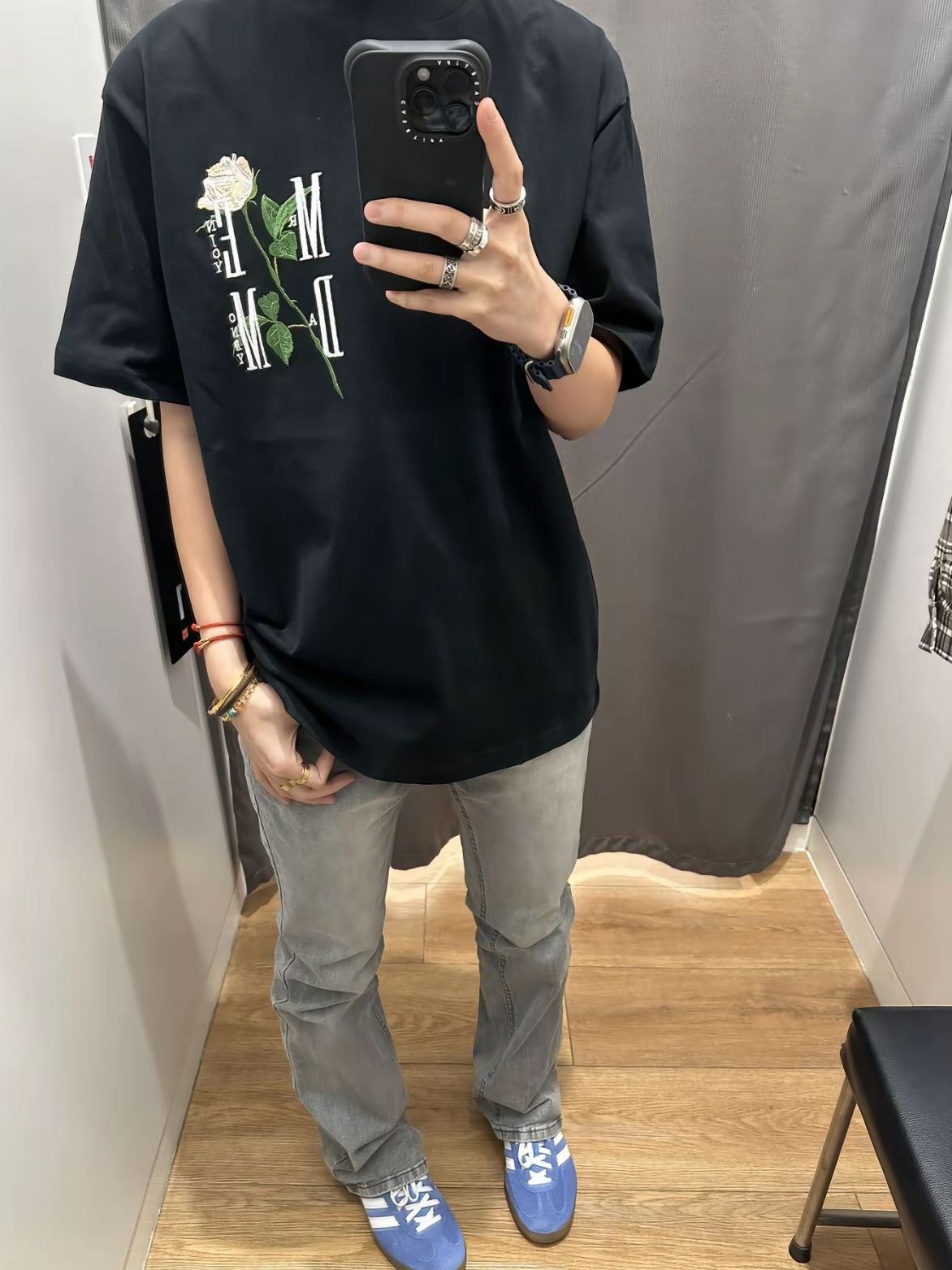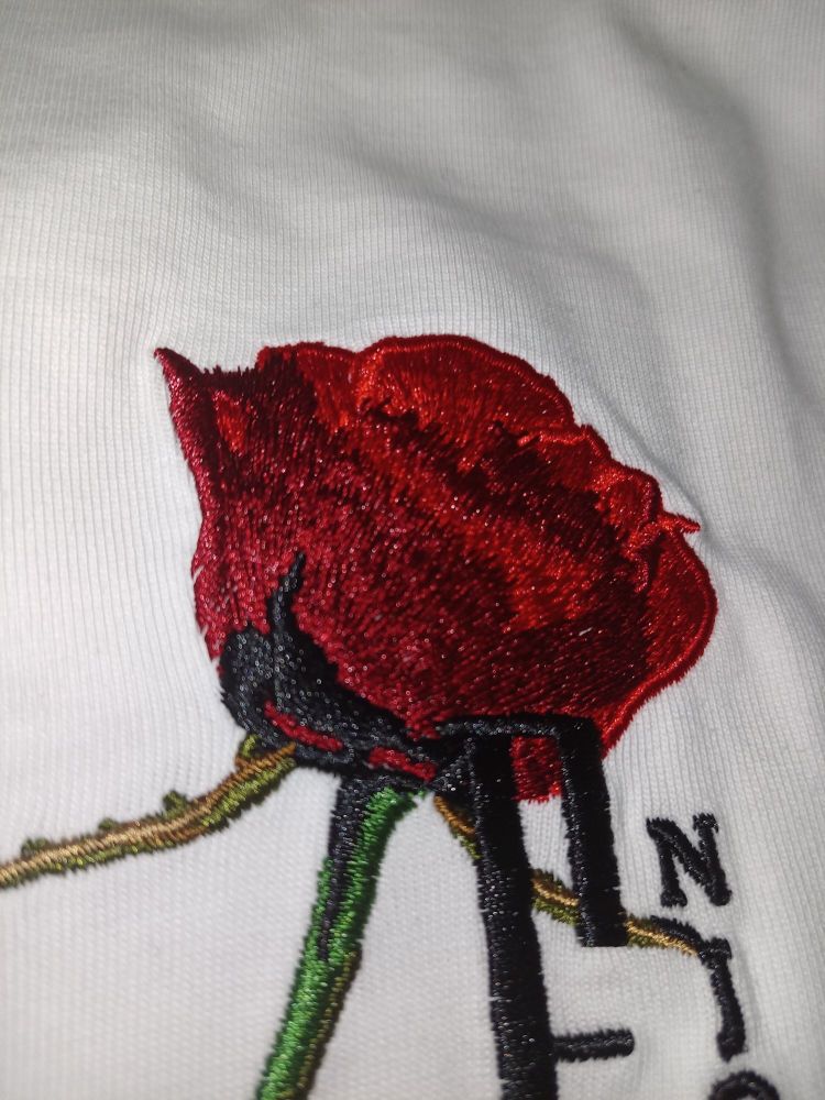 今日分享休闲穿搭 MEDM玫瑰花刺绣短袖 版型很好摸上去超级舒服 做工精细 性价比很高 男女同款!