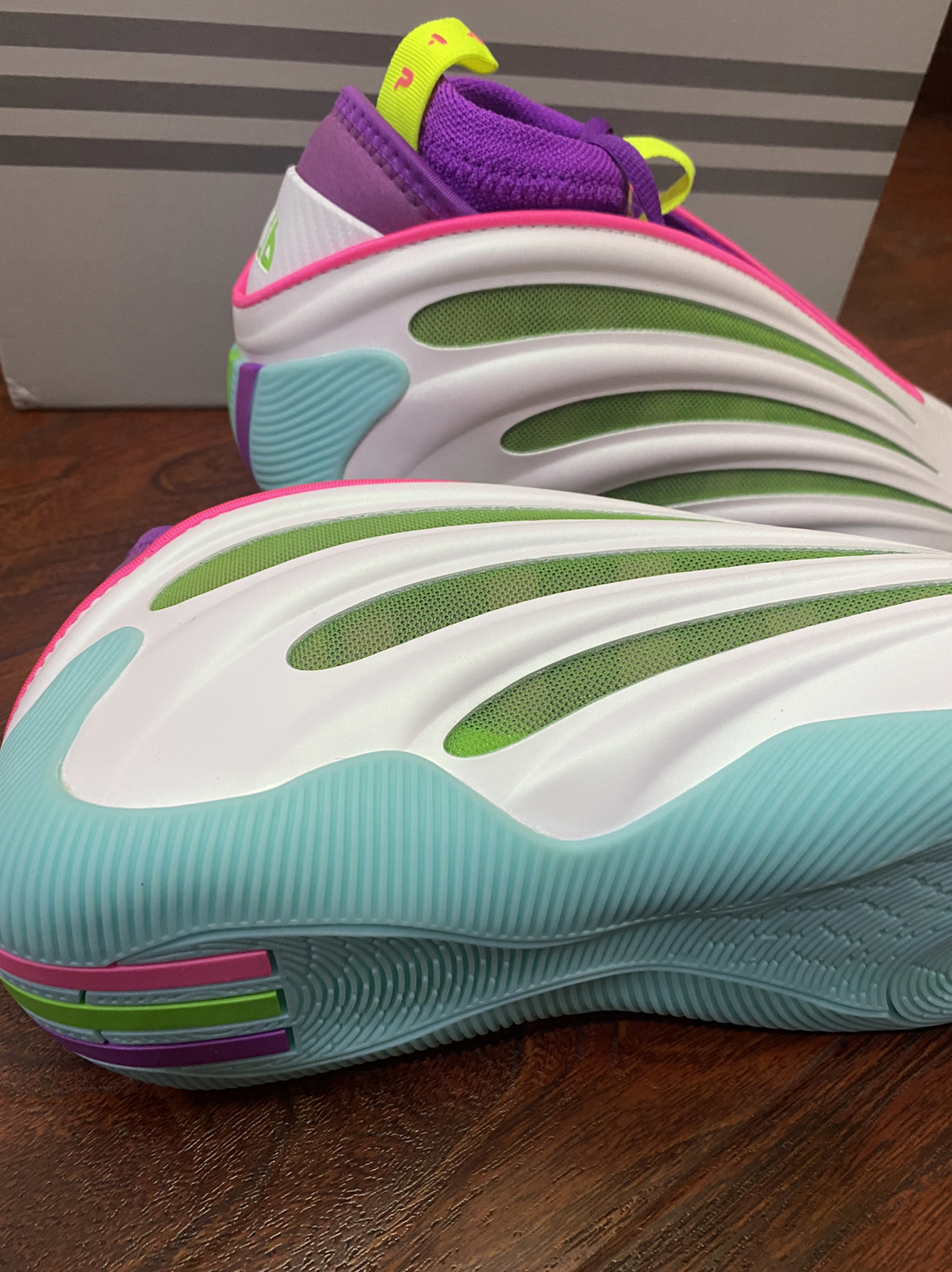 hd17这双鞋可以说是校园小子的必备,野球场上都有它的身影,实实在在的又帅又能打。需要注意鞋头偏宽,瘦脚的兄弟最好试穿再选择。