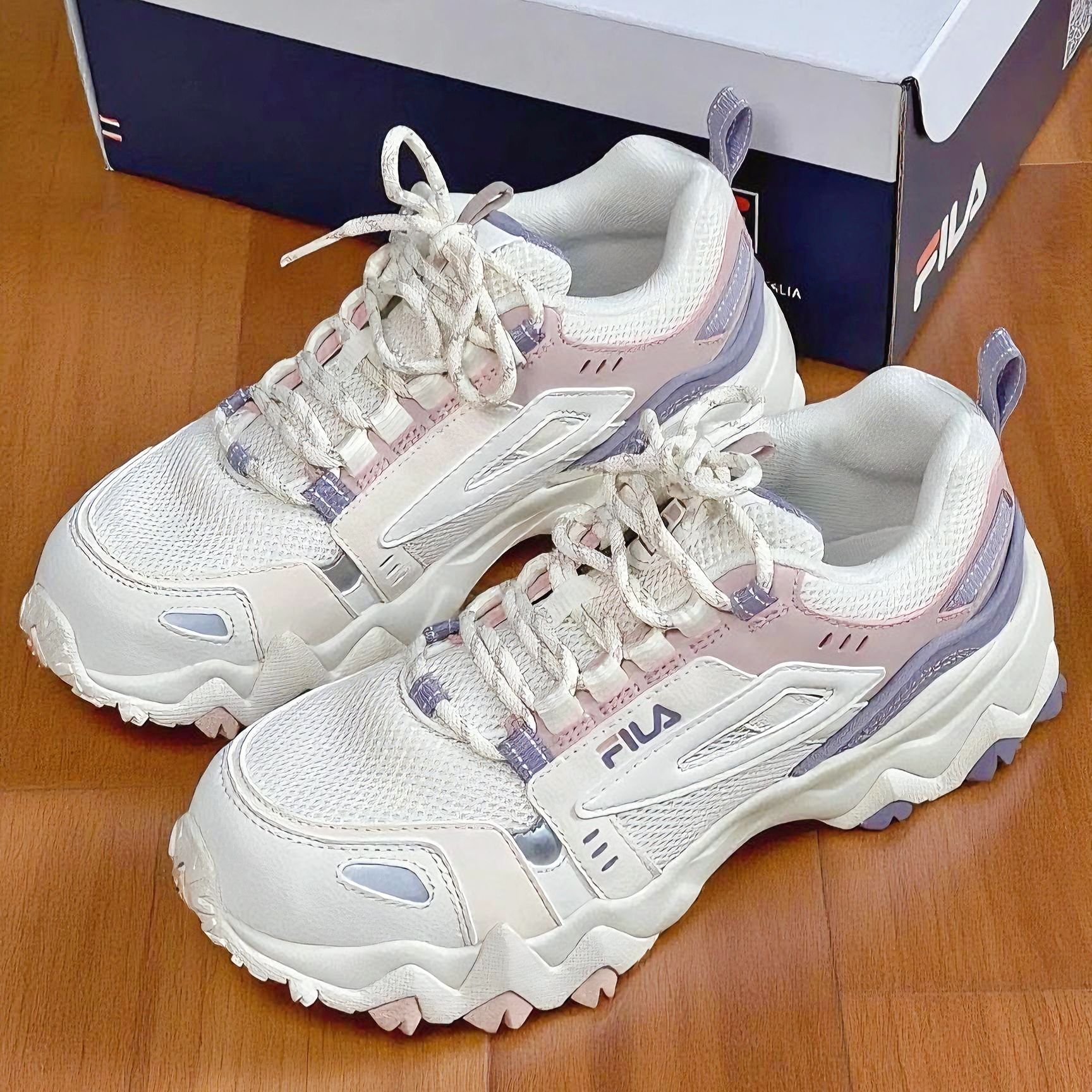 本篇笔记关联了FILA/斐乐 Oakmont 欧客漫 防滑耐磨 减震透气 潮流复古 运动休闲 增高 织物合成革 老爹鞋 女款/奶白/烟玫粉等商品,为用户提供真实的使用体验和购买参考。