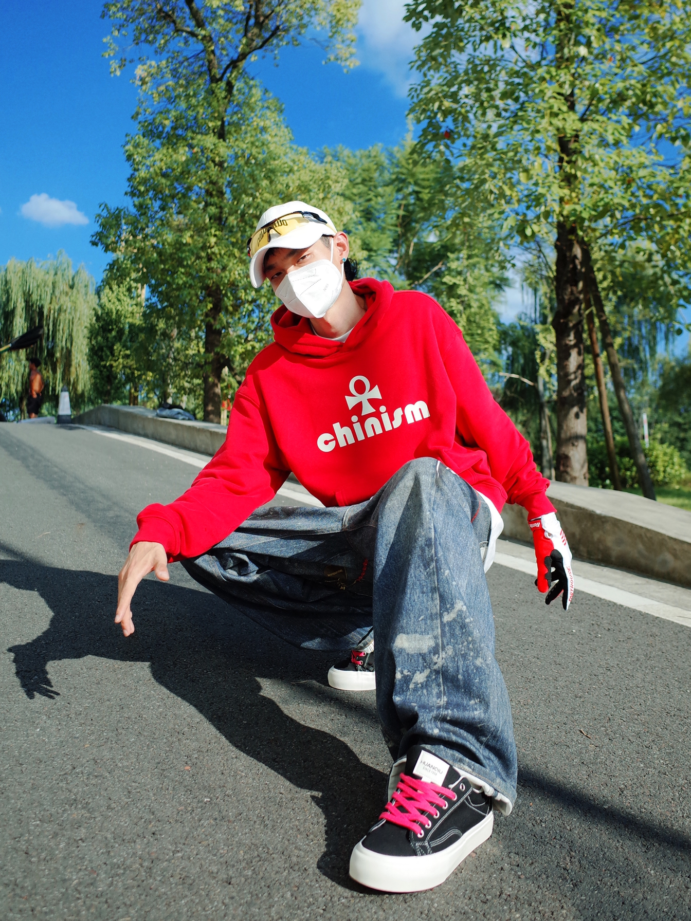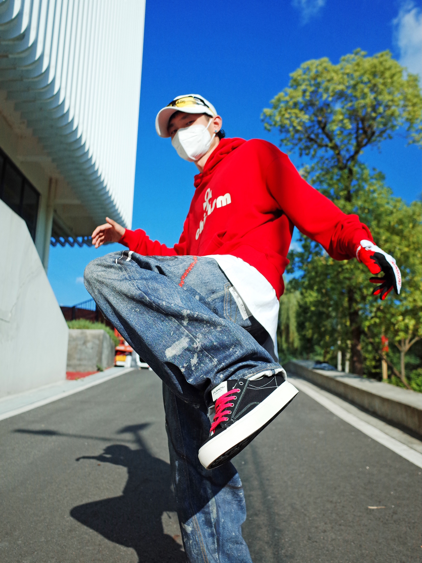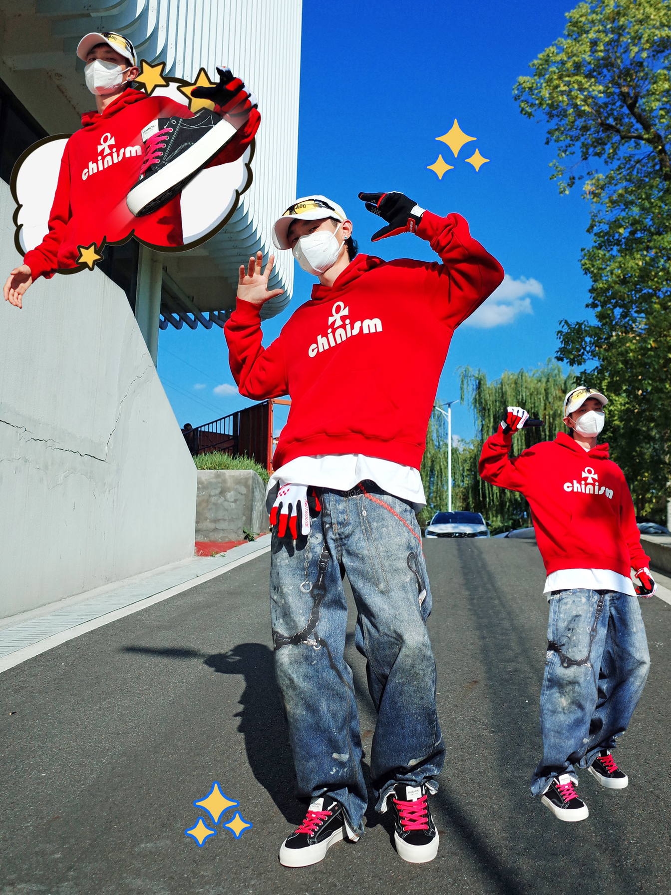 生活需要动力,帅气需要活力⚡️ 预热一下秋季卫衣穿搭吧! 红色连帽卫衣➕数码印花牛仔裤, 🕹醒目的撞色一眼吸睛👀 宽松的版型自带街头的松弛感, 脚踩一双黑色板鞋, 迈出chill的步伐, 咱就是活力满满的少年✨