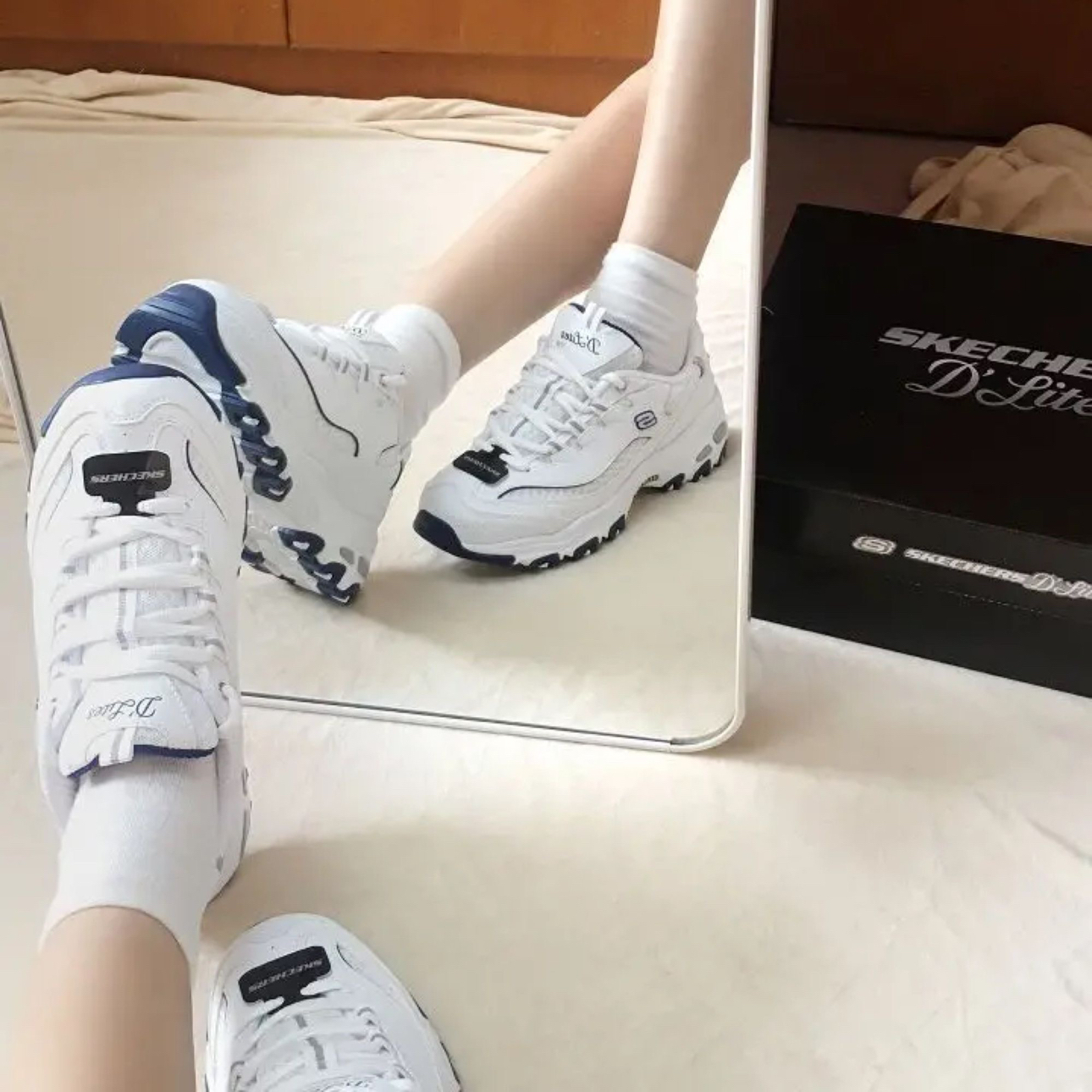 本篇笔记关联了Skechers/斯凯奇 D'Lites 1.0 奶茶熊 熊猫鞋 老爹鞋 闪穿鞋 厚底增高复古缓震百搭 低帮/女款/白色/海军蓝等商品,为用户提供真实的使用体验和购买参考。