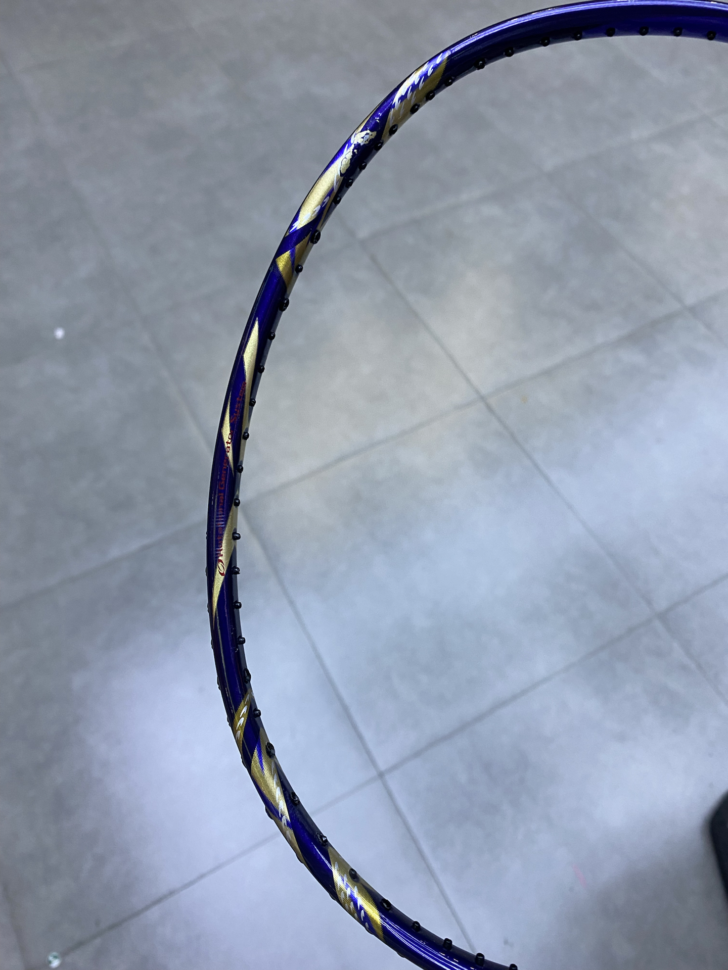 “刚给天斧99宝石蓝穿线就冲球场啦~暗夜蓝在灯光下闪金属光,76孔设计握着手感超棒!杀球像甩流星锤,不过手腕没力的宝子慎入哈🤣 但用它打球真像触摸热血时代!”