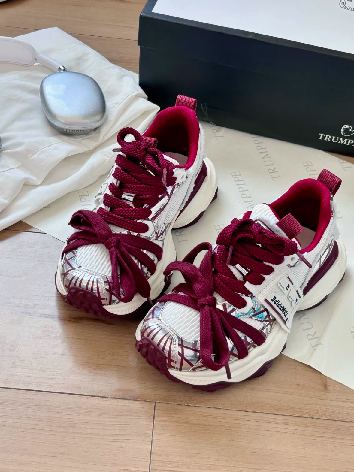 原来红色的老爹鞋也可以这么好看! 安可拉红搭配液态银有一种未来复古感 鞋头还绑双鞋带,有小心机设计了😋 穿着又酷又飒,网面穿着刚刚好 日常搭配工装裤出门都比较潮~ #潮鞋捕手计划 #春夏时髦运动风 #夏季宝藏运动感老爹鞋 #机甲风增高老爹鞋 #鞋控必入时尚运动老爹鞋