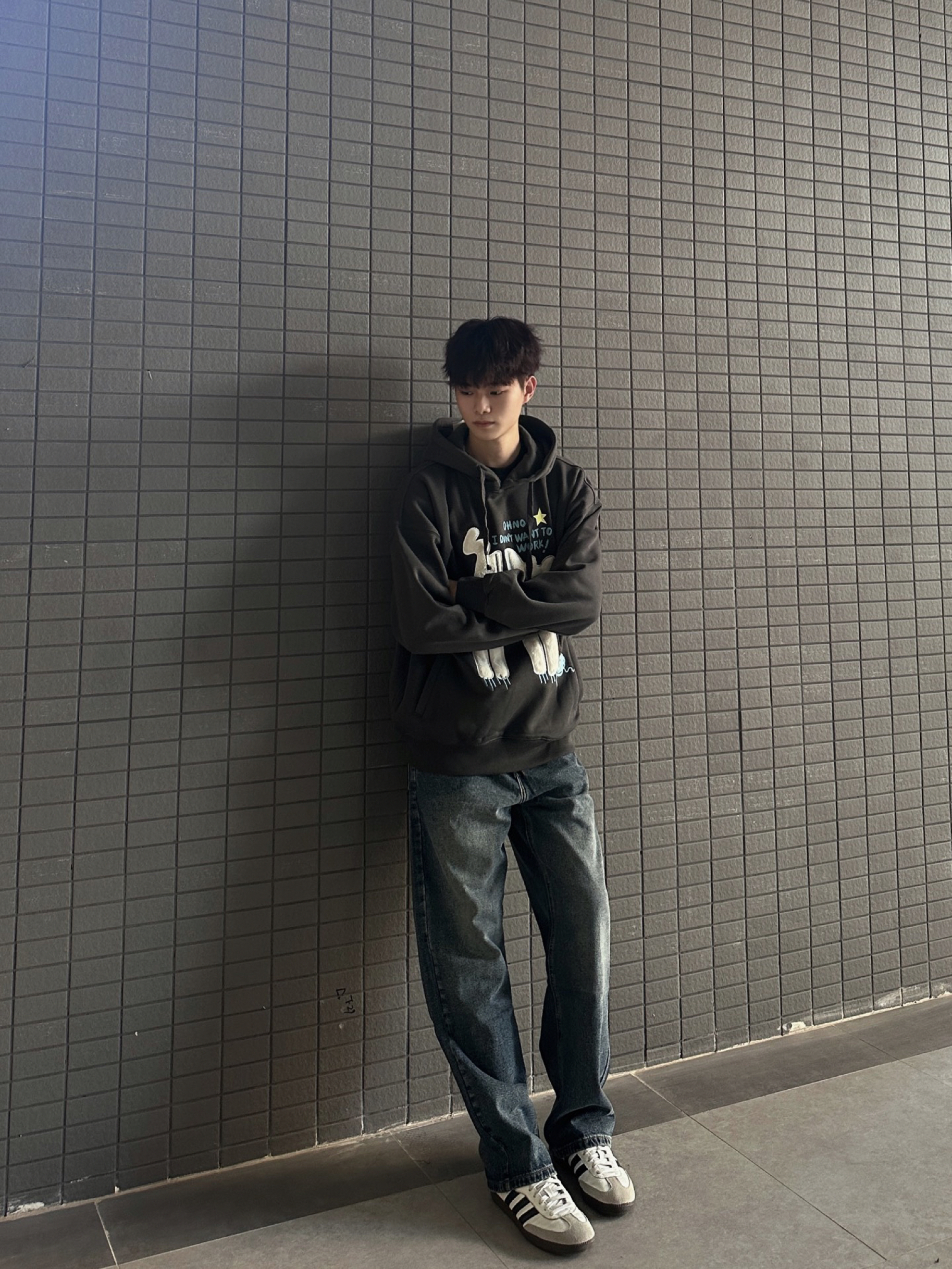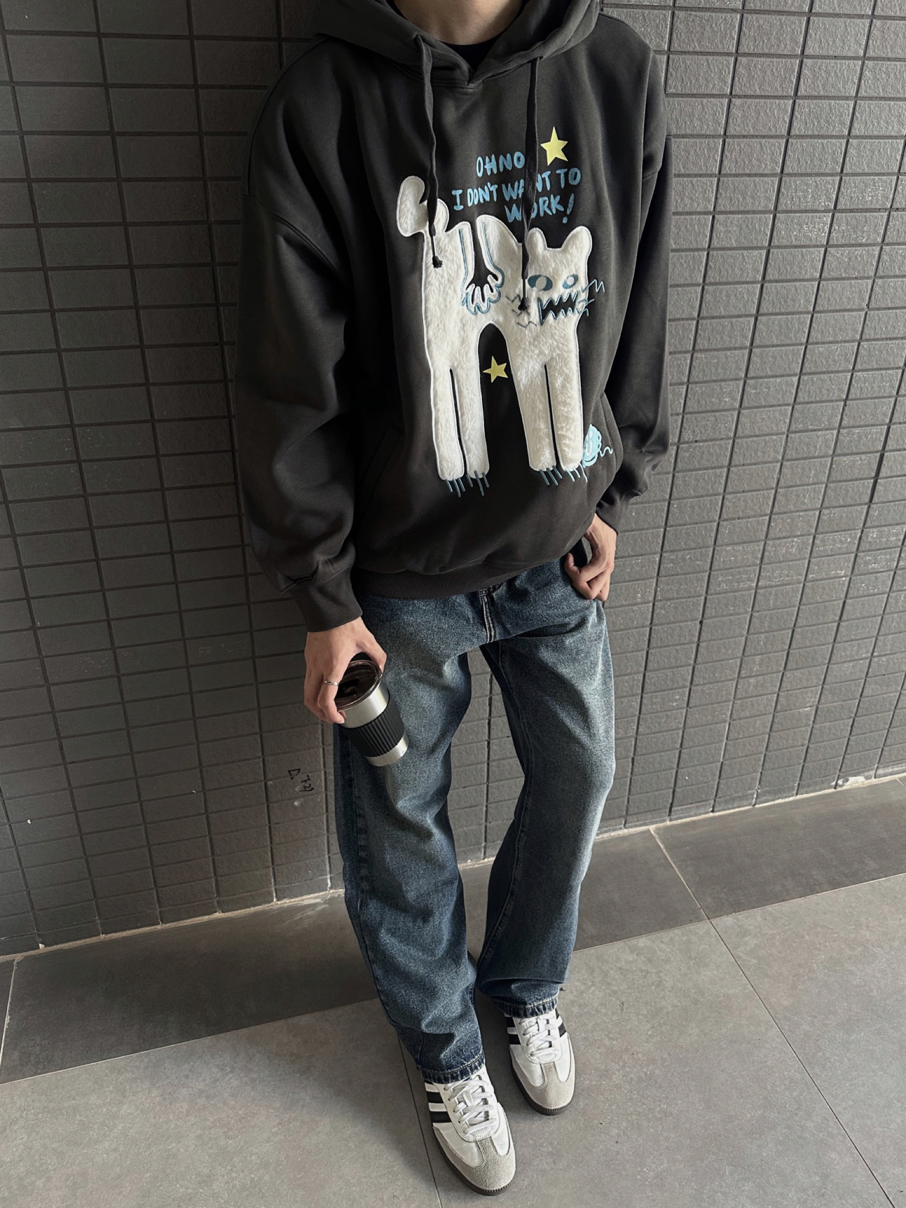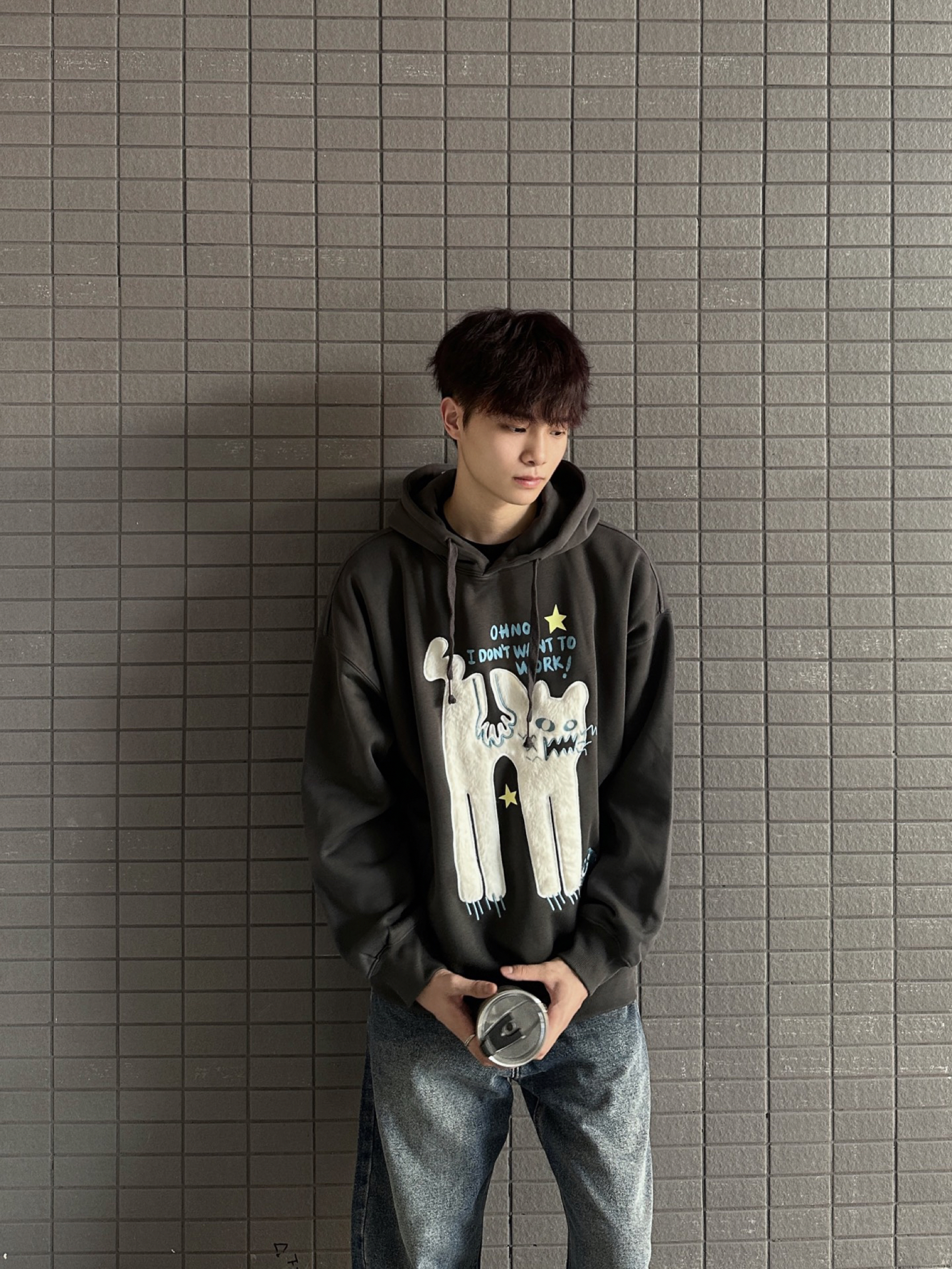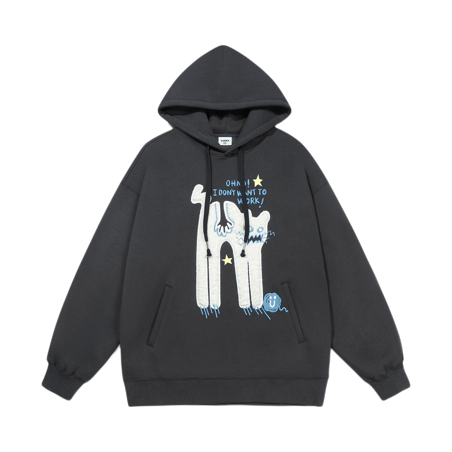 开学季男大学生们选好了过季的衣服没 还在纠结的同学看看我身上这件guuka 帽衫🙋🏻♂️ 身前的暴躁小猫🐈贴布刺绣🪡可爱又有趣 搭配下身蓝色牛仔裤有男大少年感那味了✔️ 并且宽松的版型比较显瘦 内搭件T恤出门刚刚好