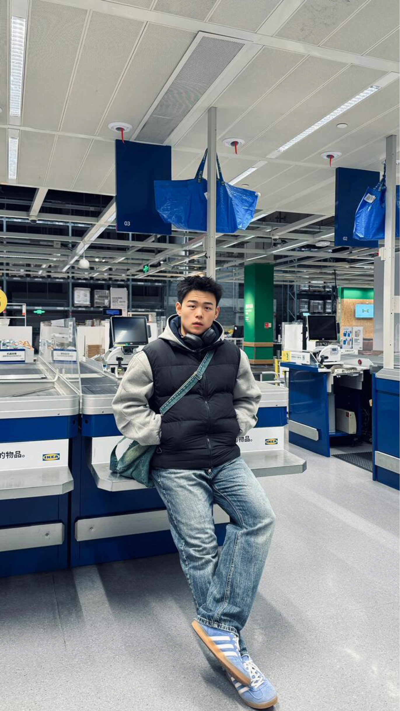 身高|体重: 🧍♂️ 穿搭风格: 👔 上衣:RASP帽子拼色卫衣 👖 下装:纯色牛仔裤 👟 鞋子:adidas拼色蓝条 🎒配饰:眼镜👓