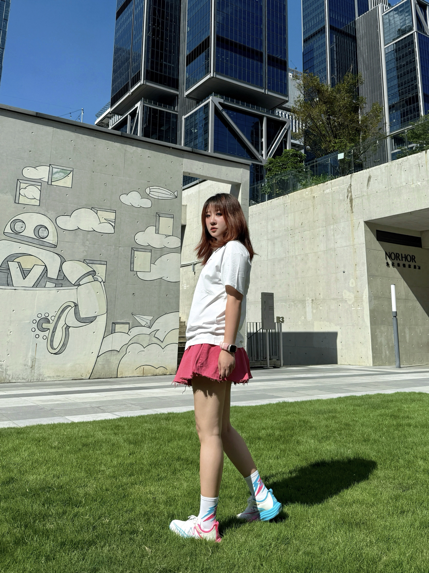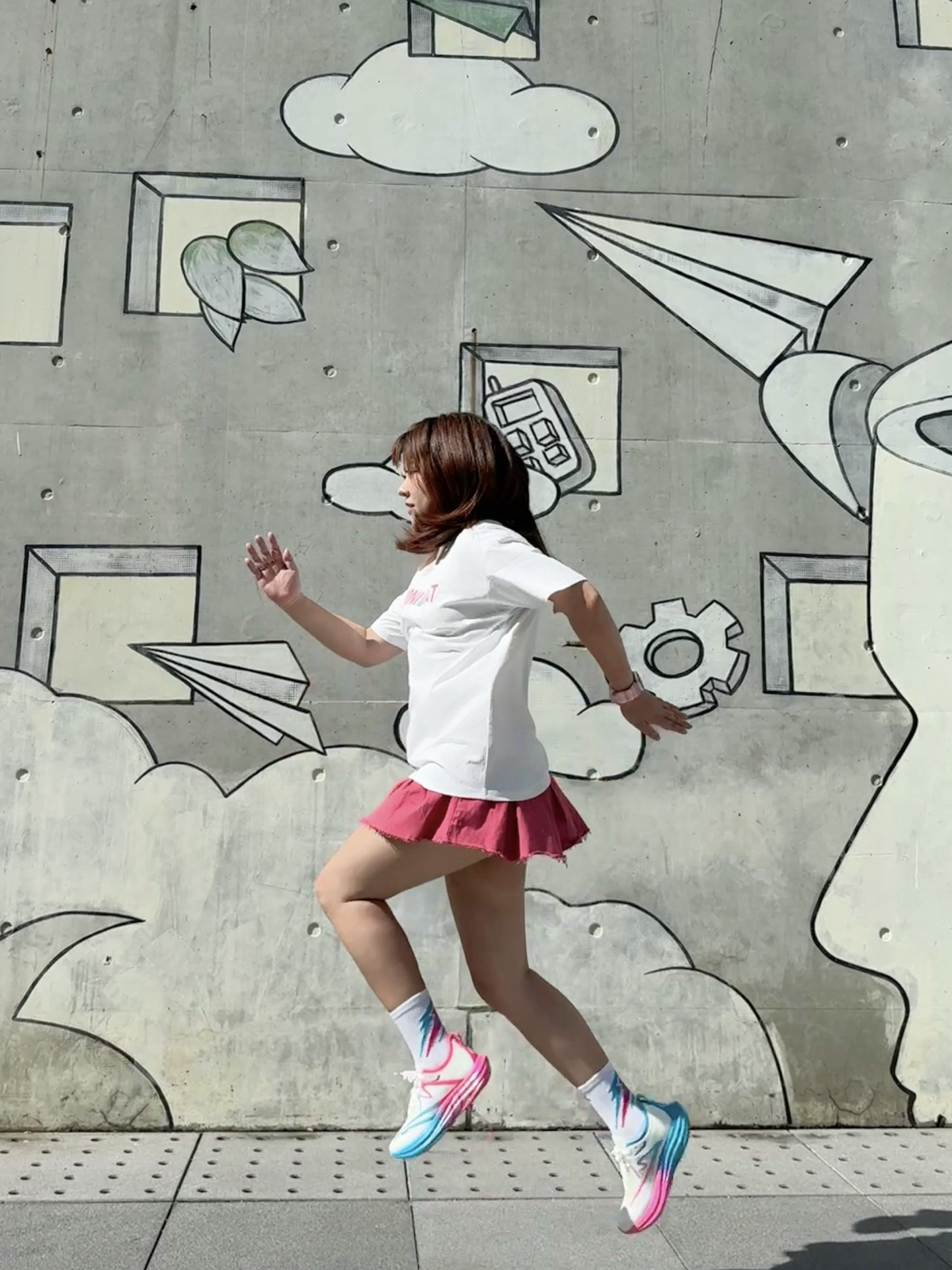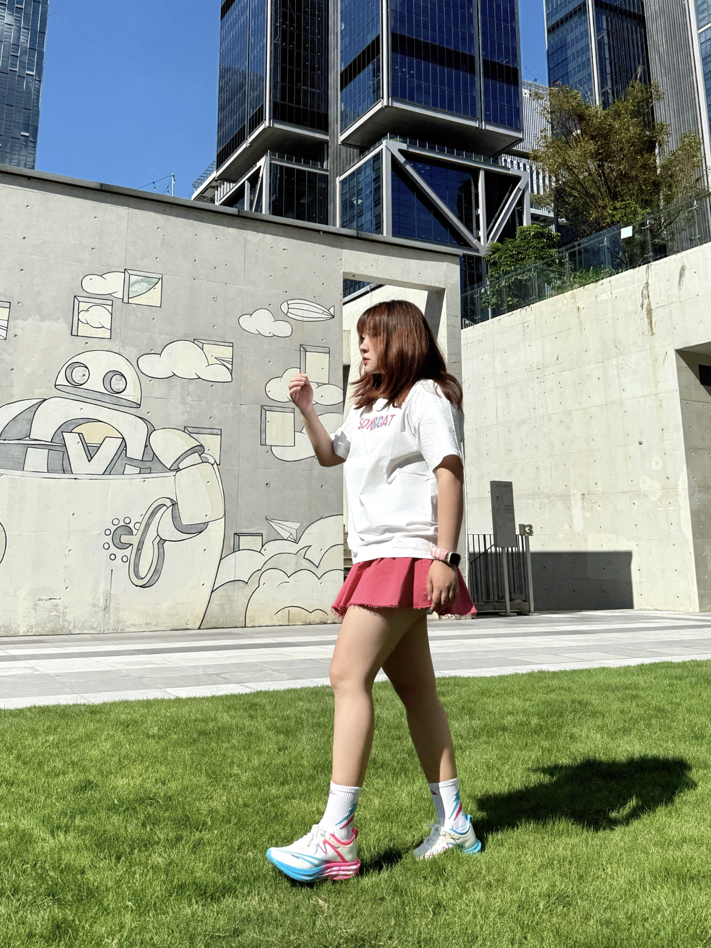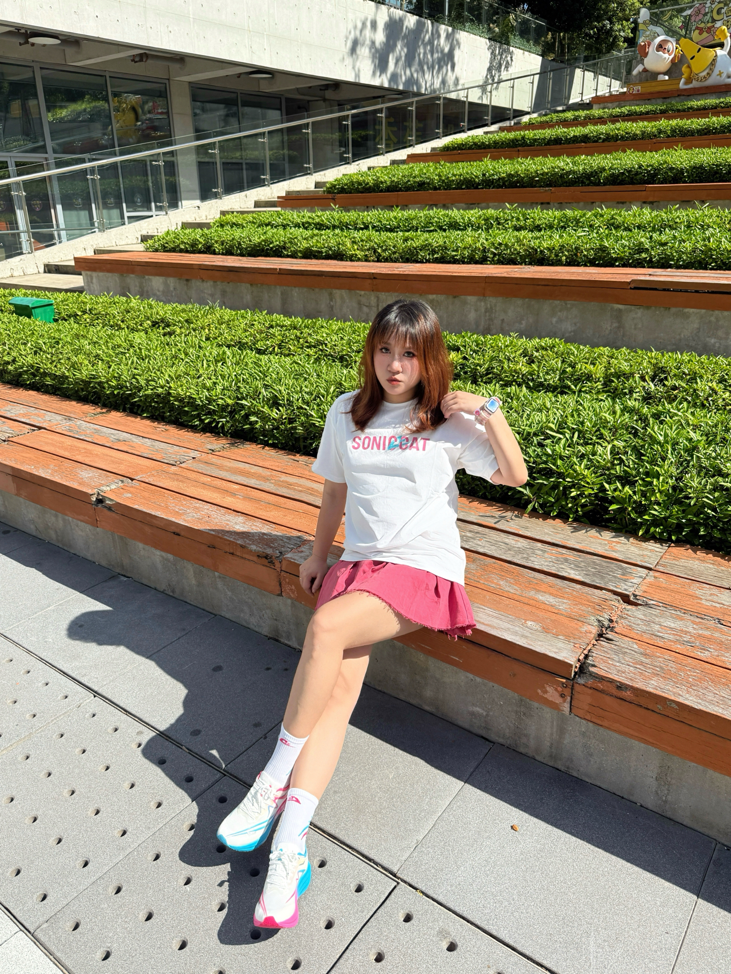 蹲在长椅边调整鞋带时风刚好掀起裙角—— 入秋第一套运动穿搭 「白粉蓝」彻底拿捏💫 / ▫️ 上衣:软fufu速干白T 胸前浅粉字母像偷偷盖的甜章🎀 不闷汗不贴背 抬手时连风都变轻了~ ▫️ 裙子:会呼吸的玫粉裙 长度运动正合适!走路带点小幅度~ ▫️ 灵魂C位:气垫碳板跑鞋 白是基底,粉是甜,蓝是灵—— 三色撞得像咬开颗水果糖🍬 低帮设计露脚踝 配短裙刚好显瘦! (悄悄说:体育生训练/体测/竞...