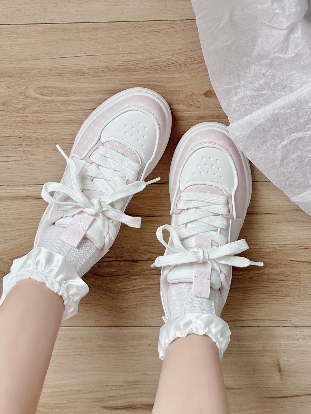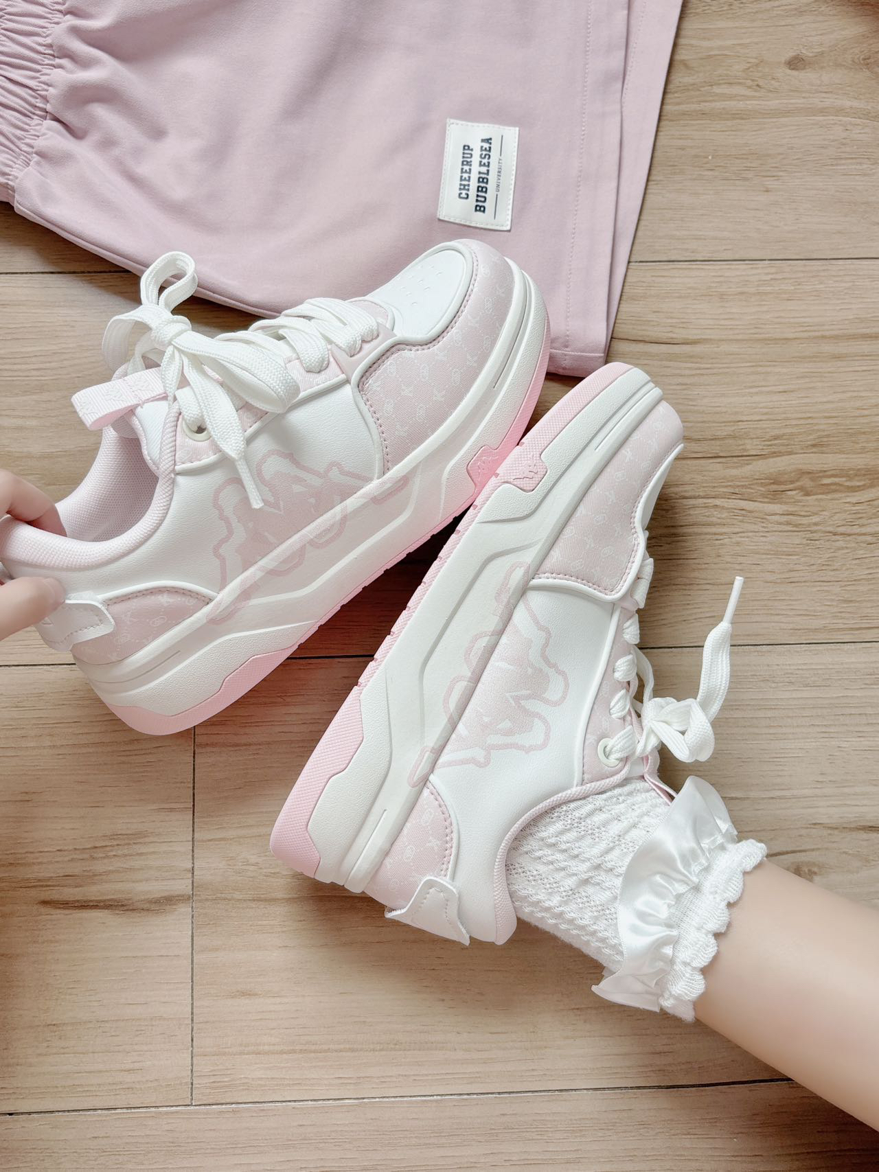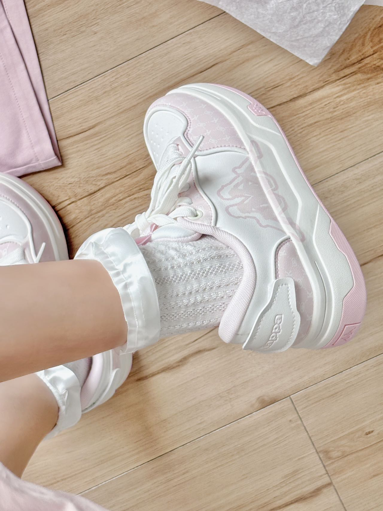 这双粉粉嫩嫩的板鞋有戳到我~ 温温柔柔的少女心爆棚! 细节也做的很好 上脚软乎乎的还可以增高 搭配小裙子逛街,是甜妹本妹啦 #少女心爆棚板鞋 #粉白系少女心鞋子 #kappa #背靠背 #甜妹女孩子的宝藏休闲鞋板鞋