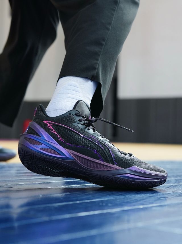 我收到的这双是首发之一的「紫萤石」,鞋身以黑紫两色为主,给人神秘之中带着酷劲的感觉,在外观设计方面延续了前几代造型的速度感,视觉效果还是蛮不错的。 中底是全掌䨻+异形PEBAX结构的组合,脚感还是很好的,软弹适中,整体重量也控制的很不错,我上脚感知不会很重。这次新加入了PENTA-S,简单说就是前掌外侧用了块特殊楔形结构的TPU,可以提升横向移动的反馈表现,同时强化侧向的支撑。 TUFF RB耐磨...