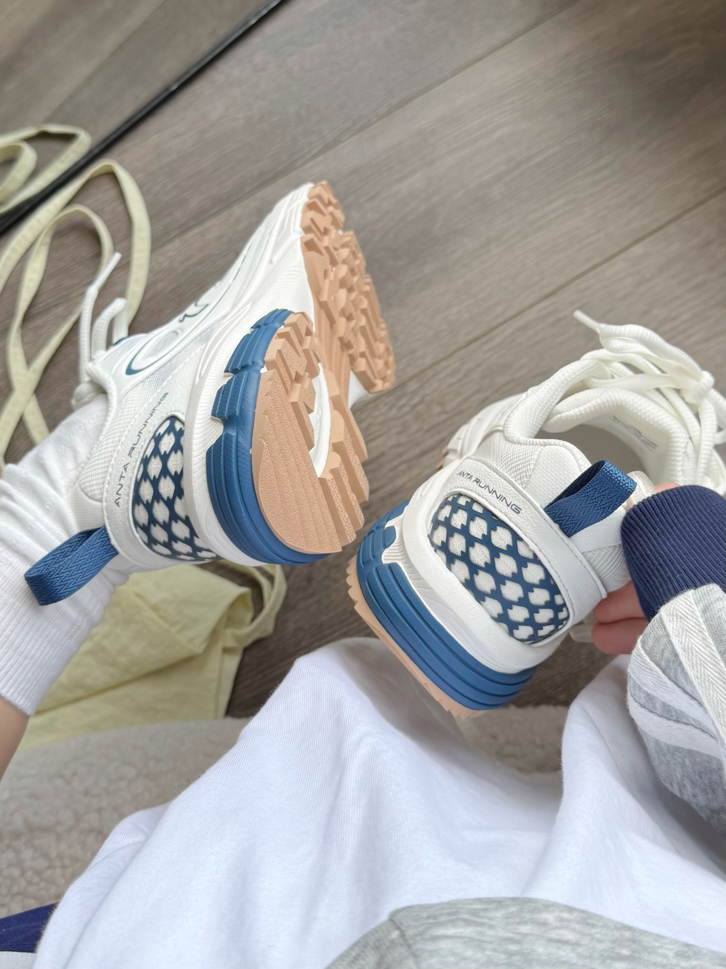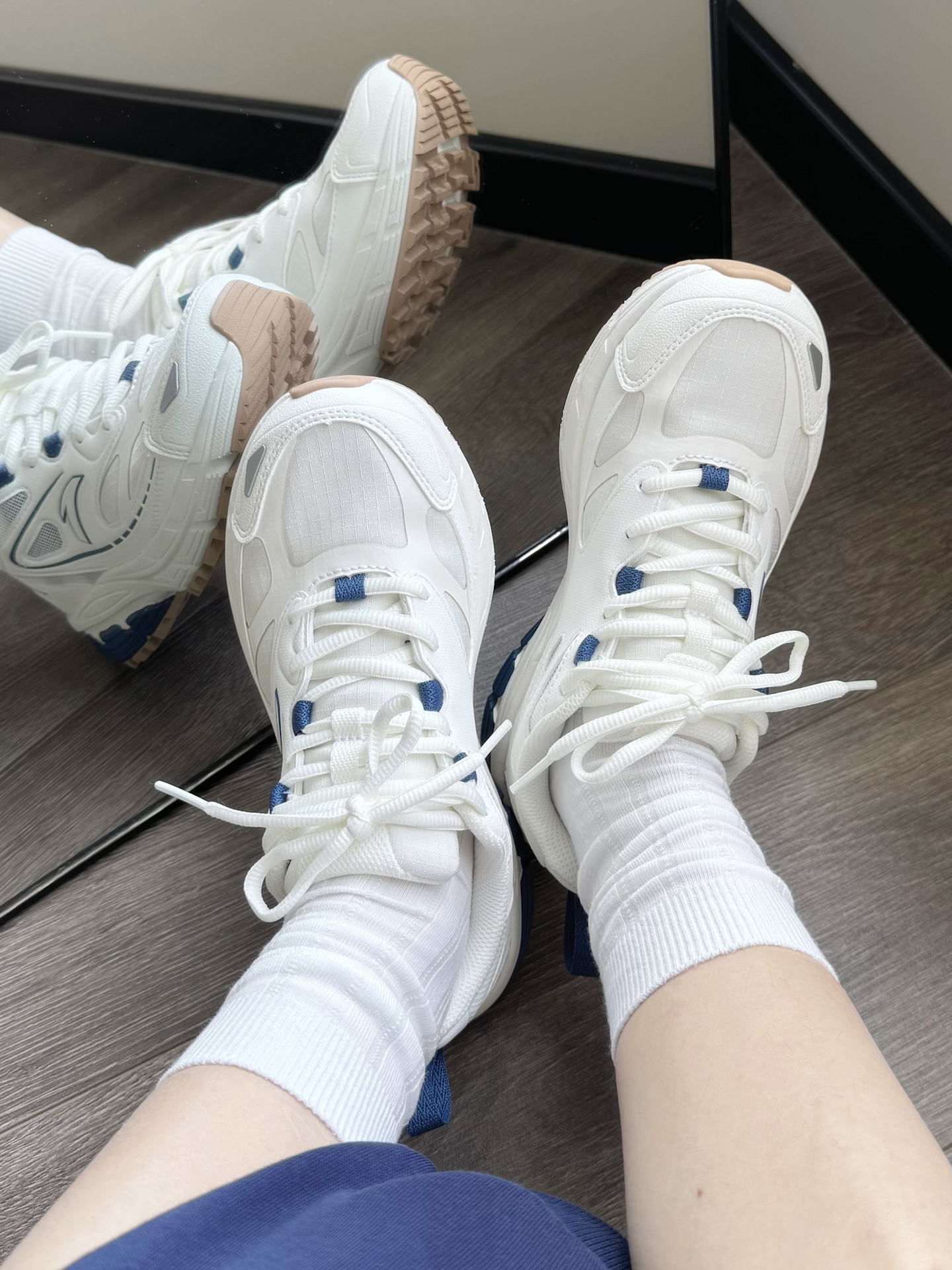 还有比海军蓝更有少年感的色系吗 蓝白配色好青春啊 有种秋日少年的感觉 既有校园复古的味道,又有山系机能的感觉 属于是怎么穿都舒服都好看 3厘米左右的增高对小个子蛮友好 上脚轻便也透气是不错的开学鞋搭子 #入秋换季先换鞋 #秋季校园感穿搭