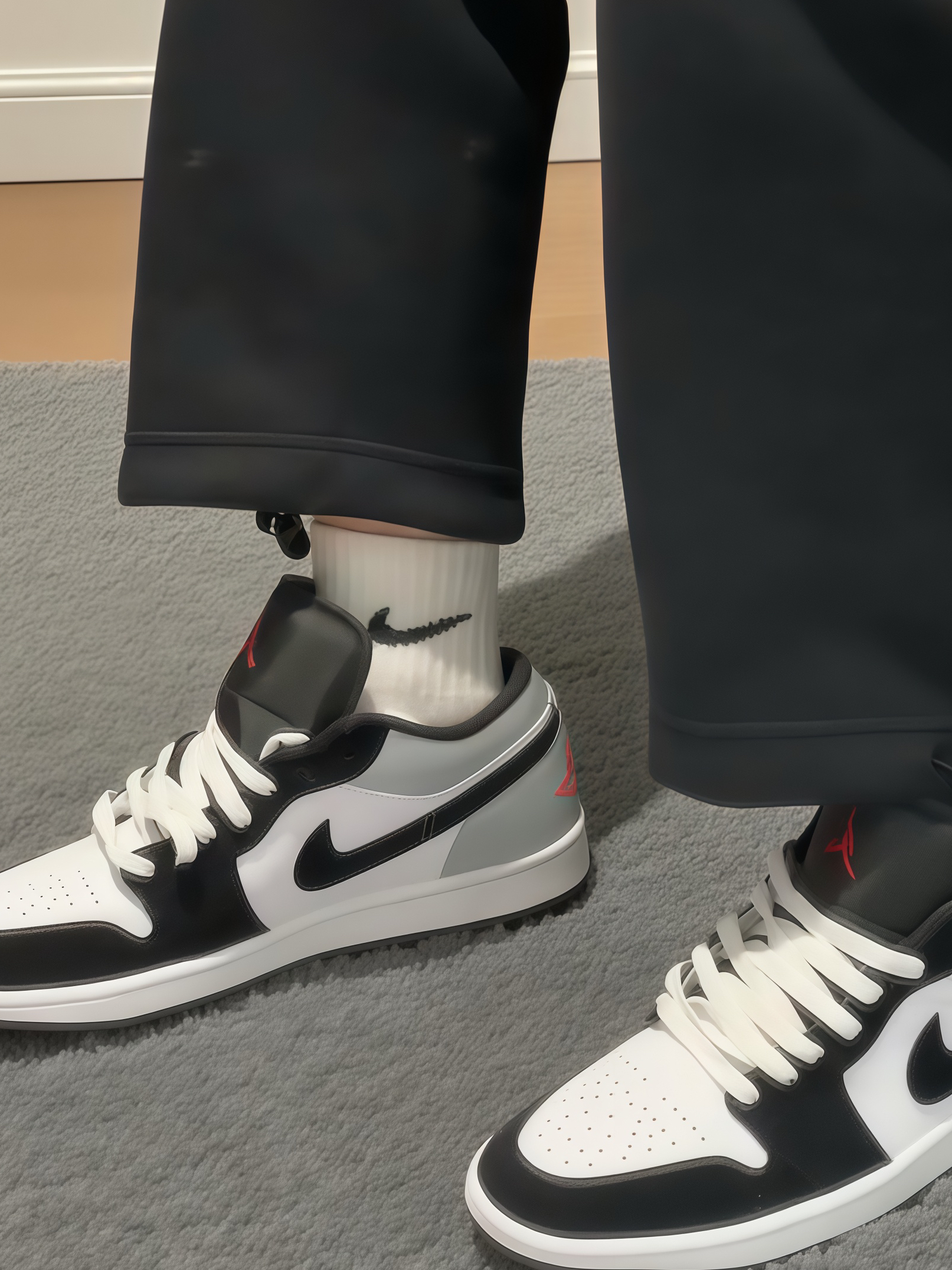 刚收到这双 AJ 就忍不住来分享!黑白灰配色太绝,经典又高级,鞋面上红色飞翼标点睛,细节拉满✨ 上脚试穿,脚感舒适,包裹性恰到好处,走路、逛街都不累脚。搭配黑色裤子,简约又街头,瞬间提升穿搭质感,日常出街、运动都适配,懒癌星人也能轻松拿捏潮流~ 到手就被朋友问链接,颜值和实用性双在线,学生党、AJ 粉闭眼入不亏!每次低头看到它,都觉得这钱花得值,属于是买完会开心好久的宝藏鞋,谁穿谁爱上✔️