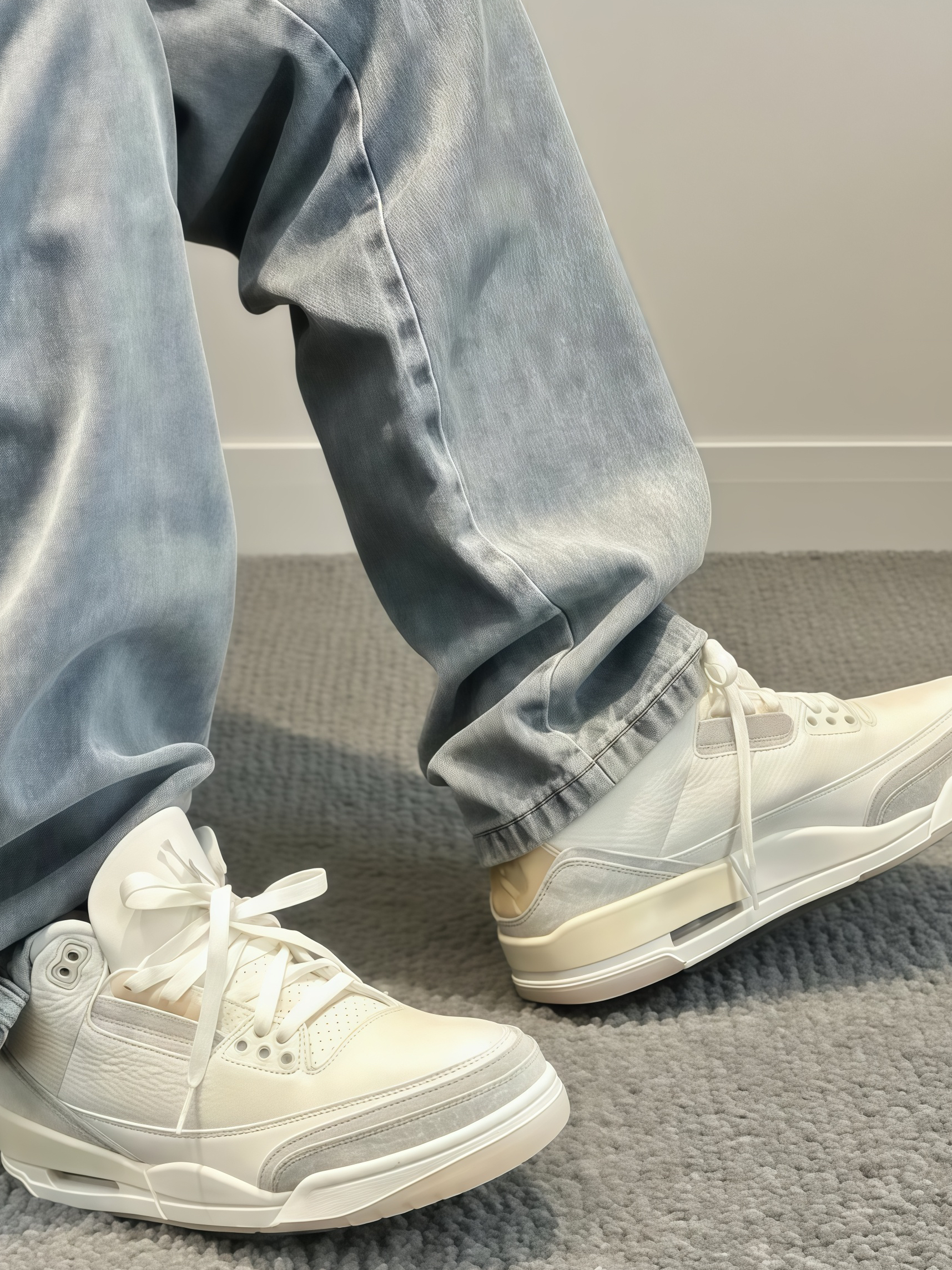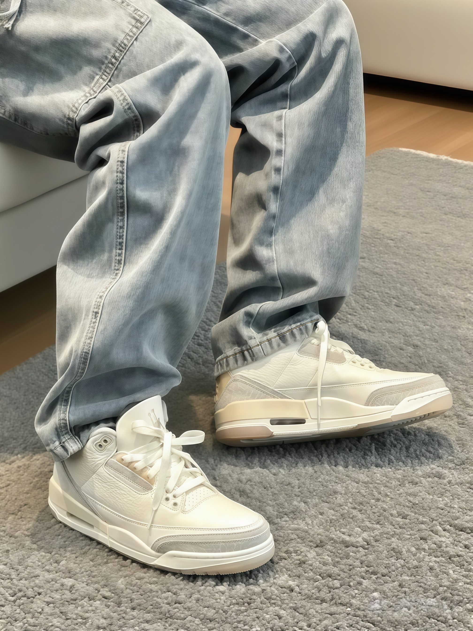 本篇笔记关联了Air Jordan 3 运动休闲鞋 潮流复古抓地支撑缓震合成革圆头 象牙白/薄雾灰等商品,为用户提供真实的使用体验和购买参考。