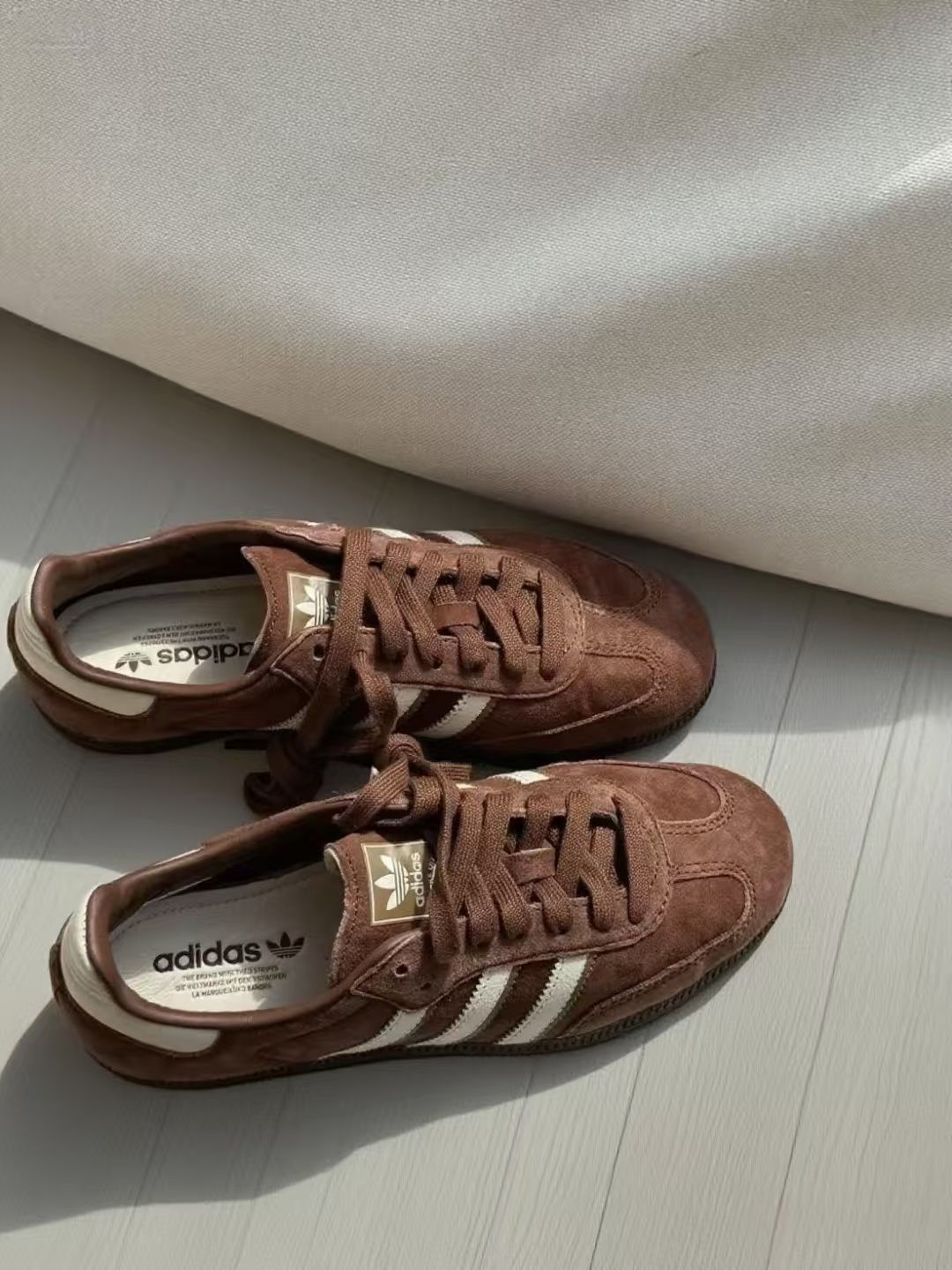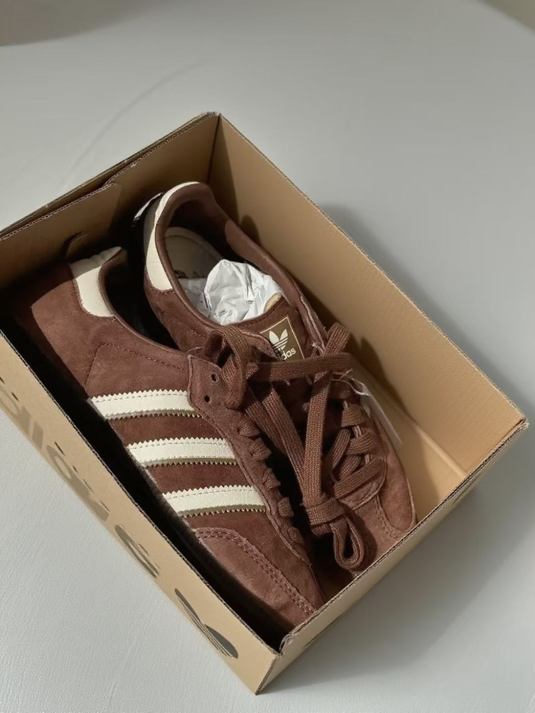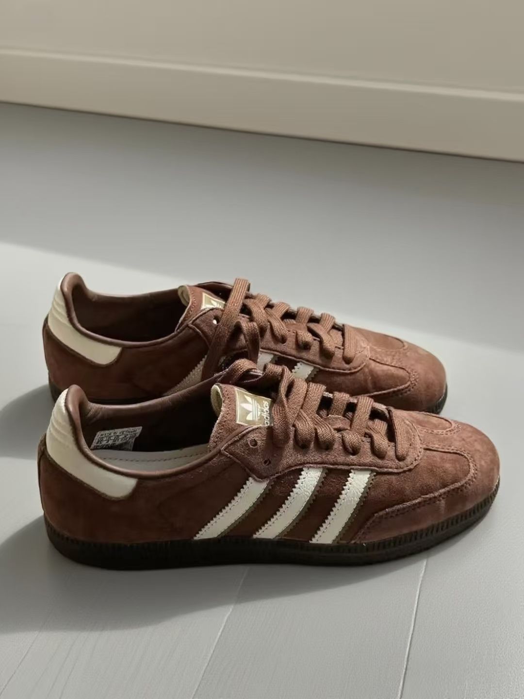 挖到一双神仙复古鞋!这双阿迪的棕色德训鞋,拿到手就被质感惊到了,麂皮的材质很有分量,棕白配色复古感拉满,怎么拍都好看。 上脚特别舒服,鞋底软软的,日常出街暴走一天也不觉得累。搭配方面更是万能,牛仔裤、工装裤、连衣裙都能搭,随便一穿就很有氛围感,走在路上回头率都变高了。 拆开鞋盒的那一刻就觉得值了,复古风爱好者真的不能错过,现在已经是我出门的首选鞋款了,每次穿都被朋友问链接,真心推荐给喜欢复...