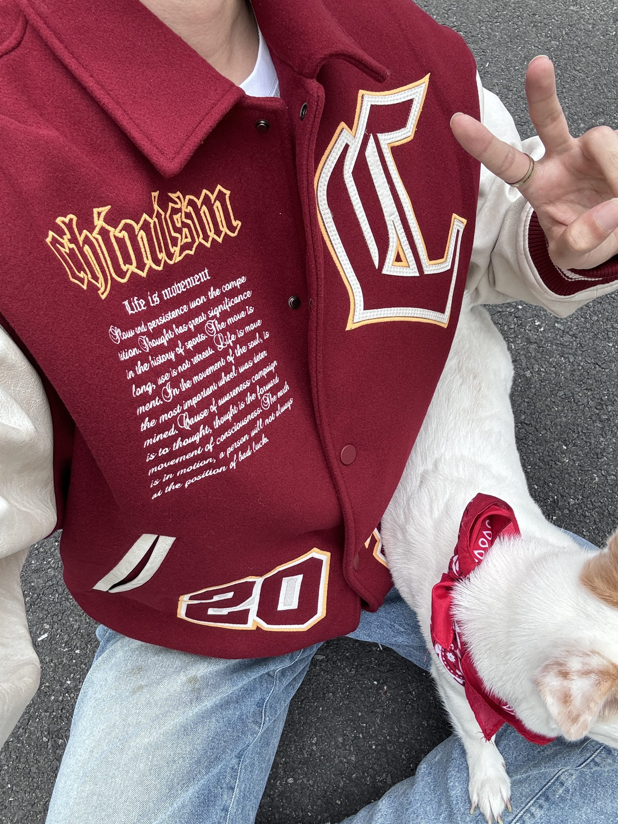 身高|体重:186cm 75kg 🧍♂️叛逆又时髦的少年感直接拿捏🤏 谁说男生只能黑白灰❓这套把复古、街头、叛逆全揉在一起,boom💥 👔上衣:酒红主色调自带复古滤镜,拼色袖子街头感拉满💥胸前大字母、数字刺绣有范儿🤏把 “不被定义” 穿身上内搭白T,层次感拉💥 👖下装:阔腿牛仔裤永远的神!做旧水洗蓝,复古感爆棚,搭出 “超会穿” 的调调✨ 👟鞋子:酒红配色和棒球服呼应✌️走路舒服,配牛...
