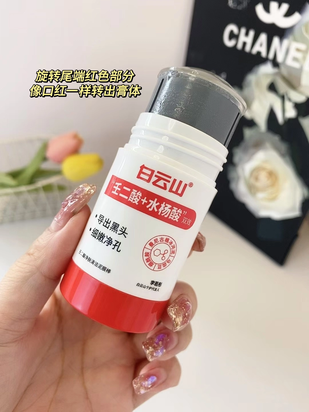 学生时代就爱用白云山泥膜,工作后回购还是香!🤩 旋转尾部像口红转出膏体,不脏手超方便~水杨酸+壬二酸组合,敷十分钟黑头少了,毛孔也细腻不少!💦 不过它是泥膜,洗完得用爽肤水乳液锁水保湿哈~