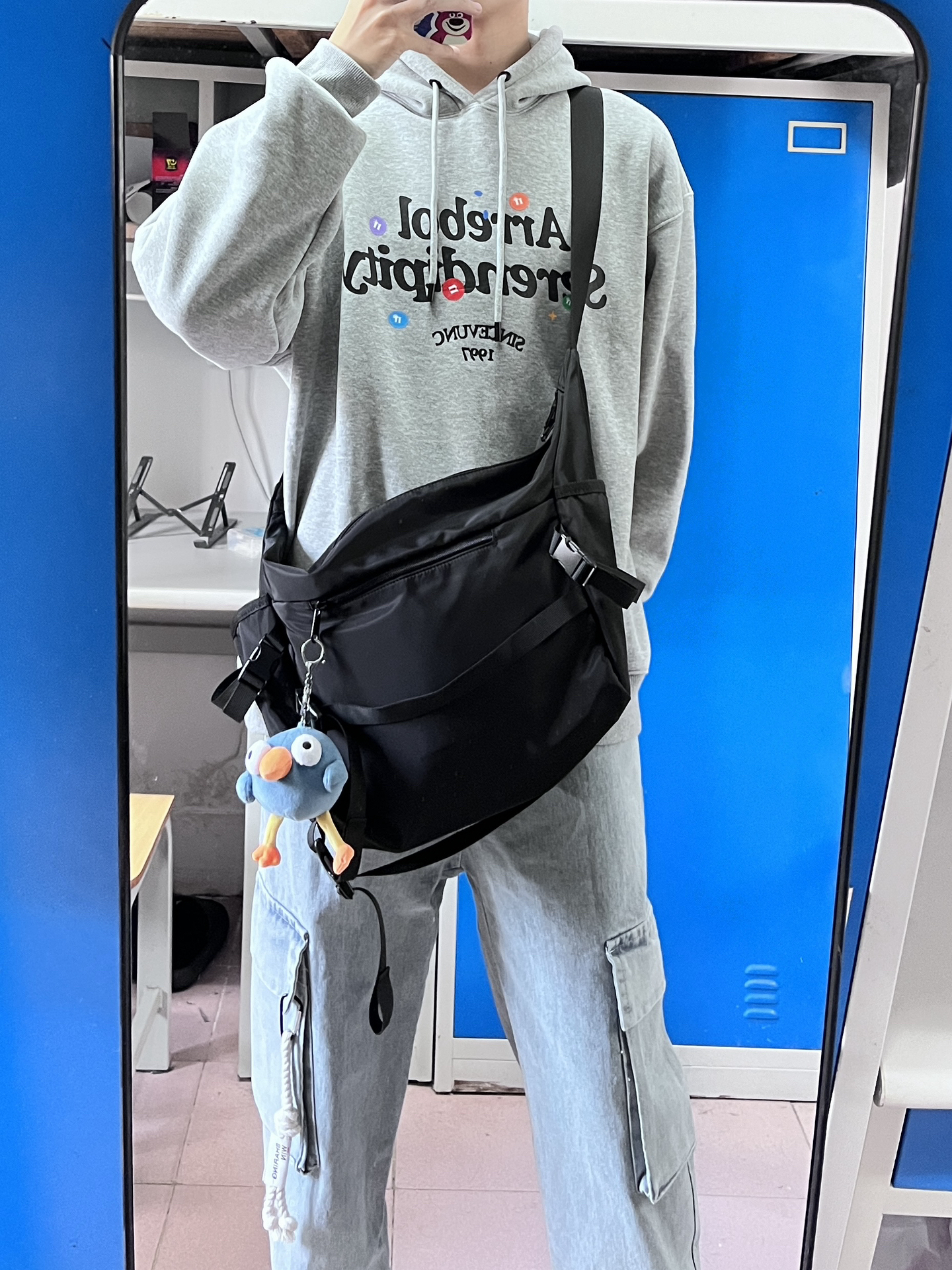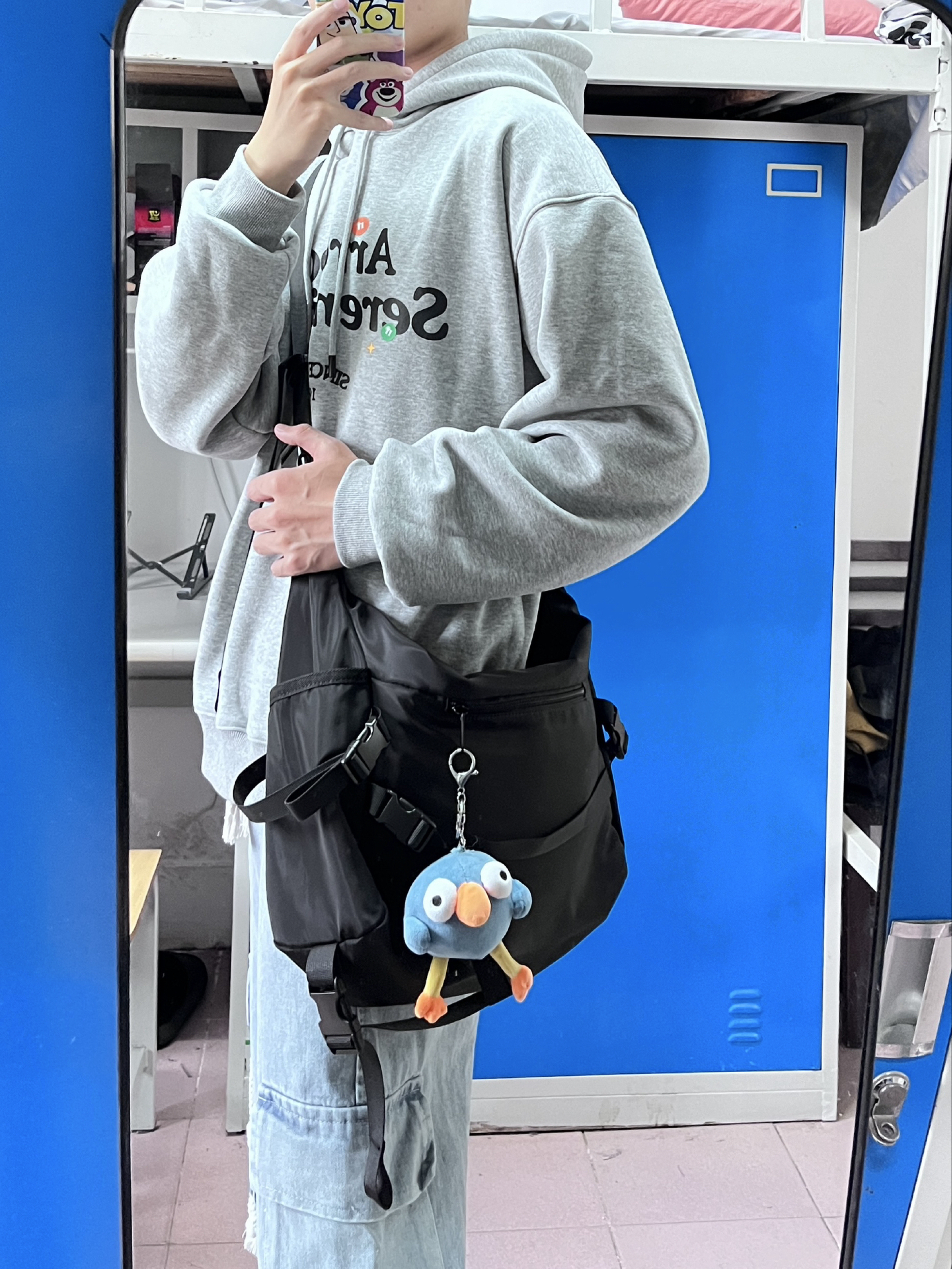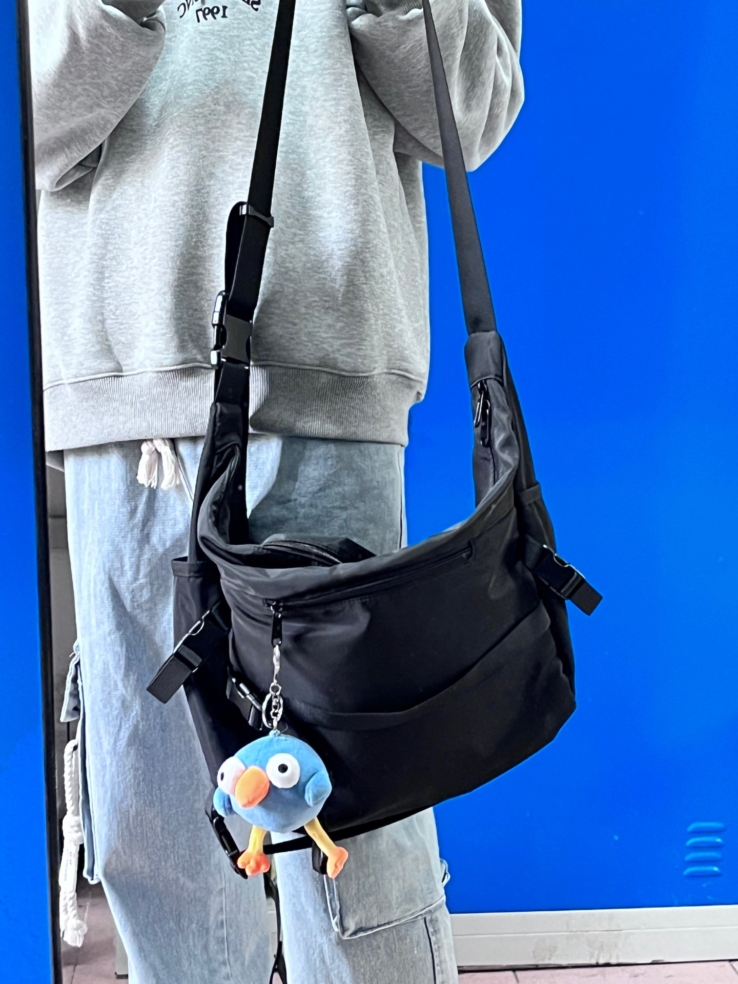 今天给大家推荐一款斜挎包 这款容量真的很大,日常出去可以防雨伞☂️一套换洗衣服,水杯充电宝这些 颜值也很好,搭配卫衣就给人很潮的感觉