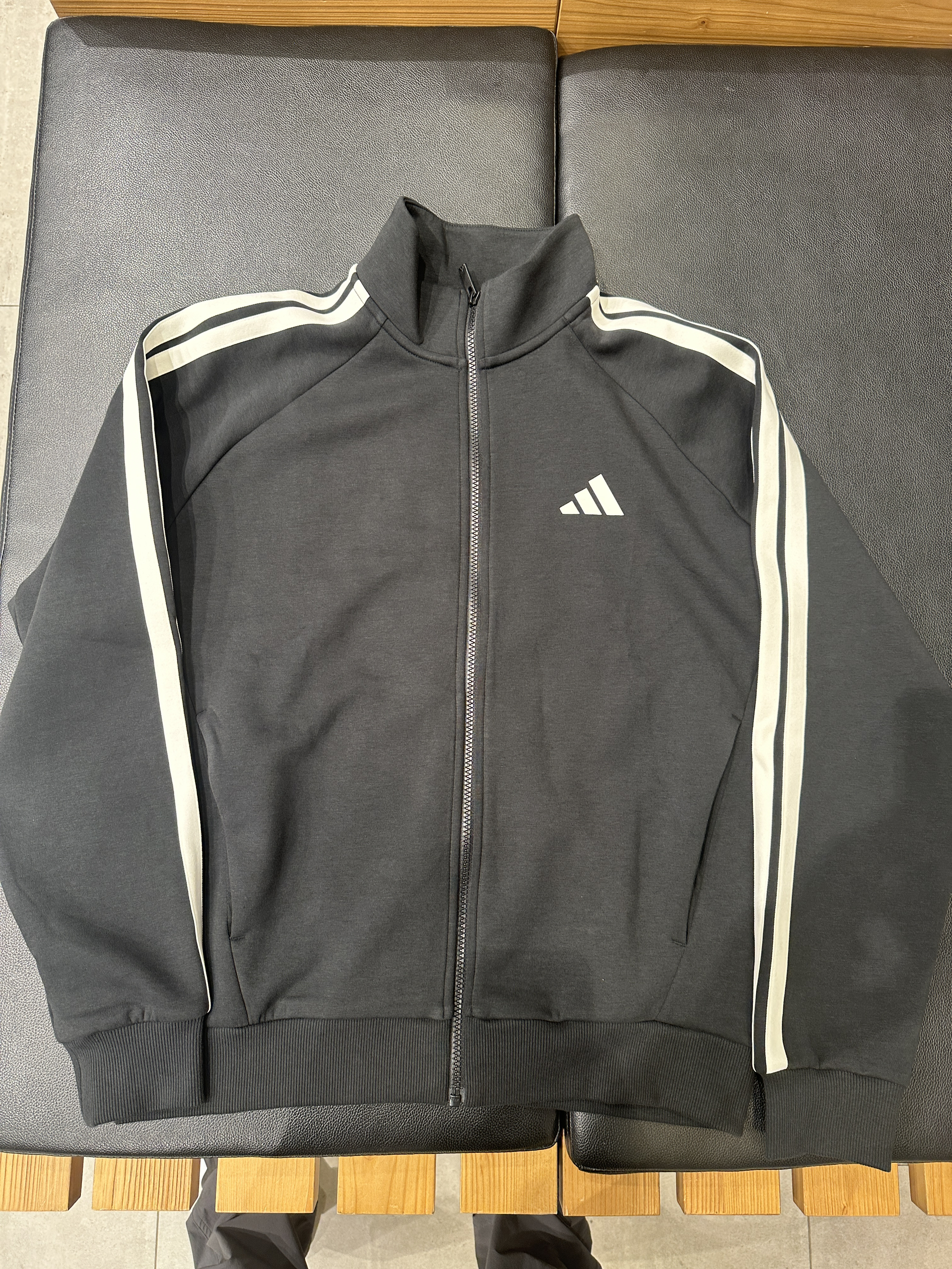 经典三条杠设计,复古运动感拉满🔥秋上新 一穿上就有那味儿了!宽松版型超显飒🤩 怎么搭都轻松拿捏💨日常通勤随便套就能出门 身高175体重140 外套:m码