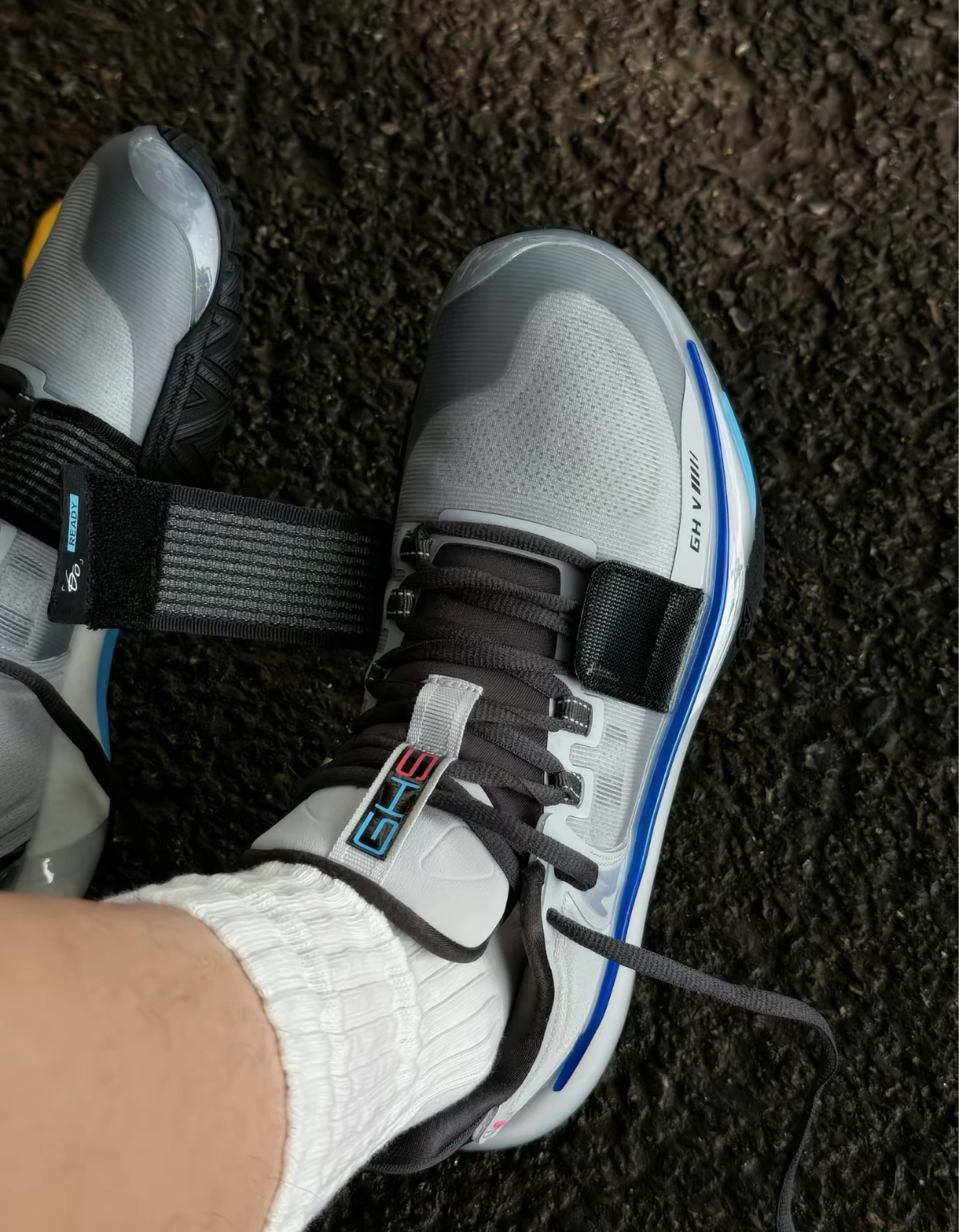 安踏海沃德5,全掌氮科技+碳板,启动快、抗扭防侧翻强,375克轻质透气,游戏风设计。