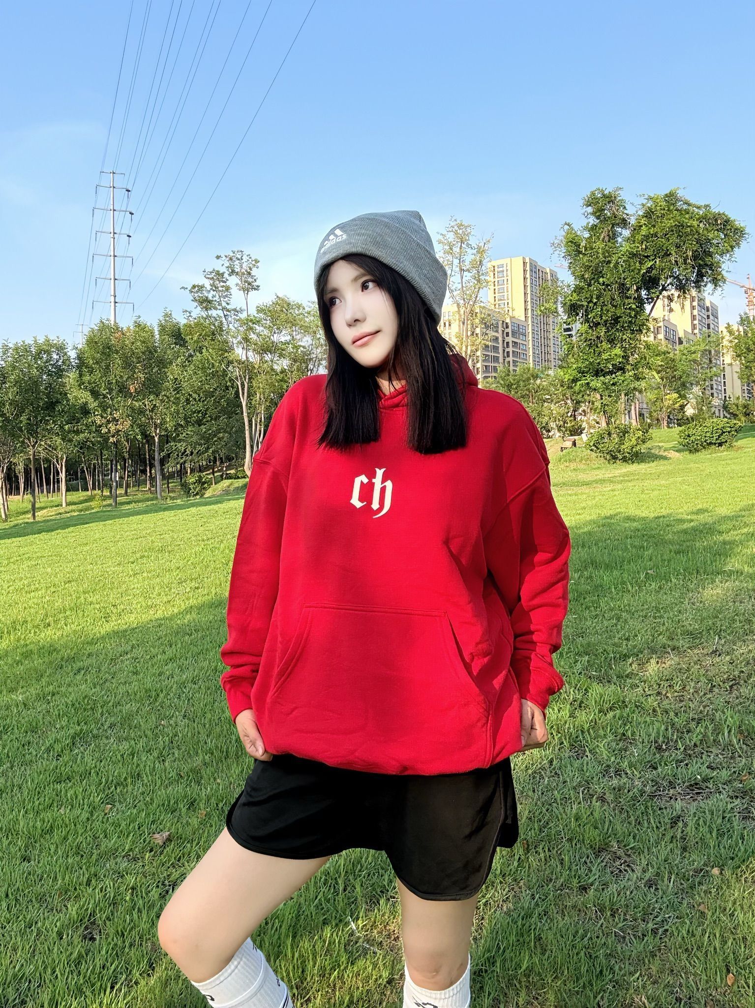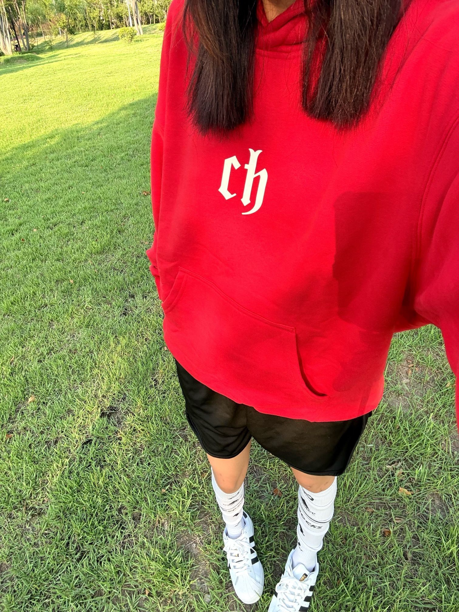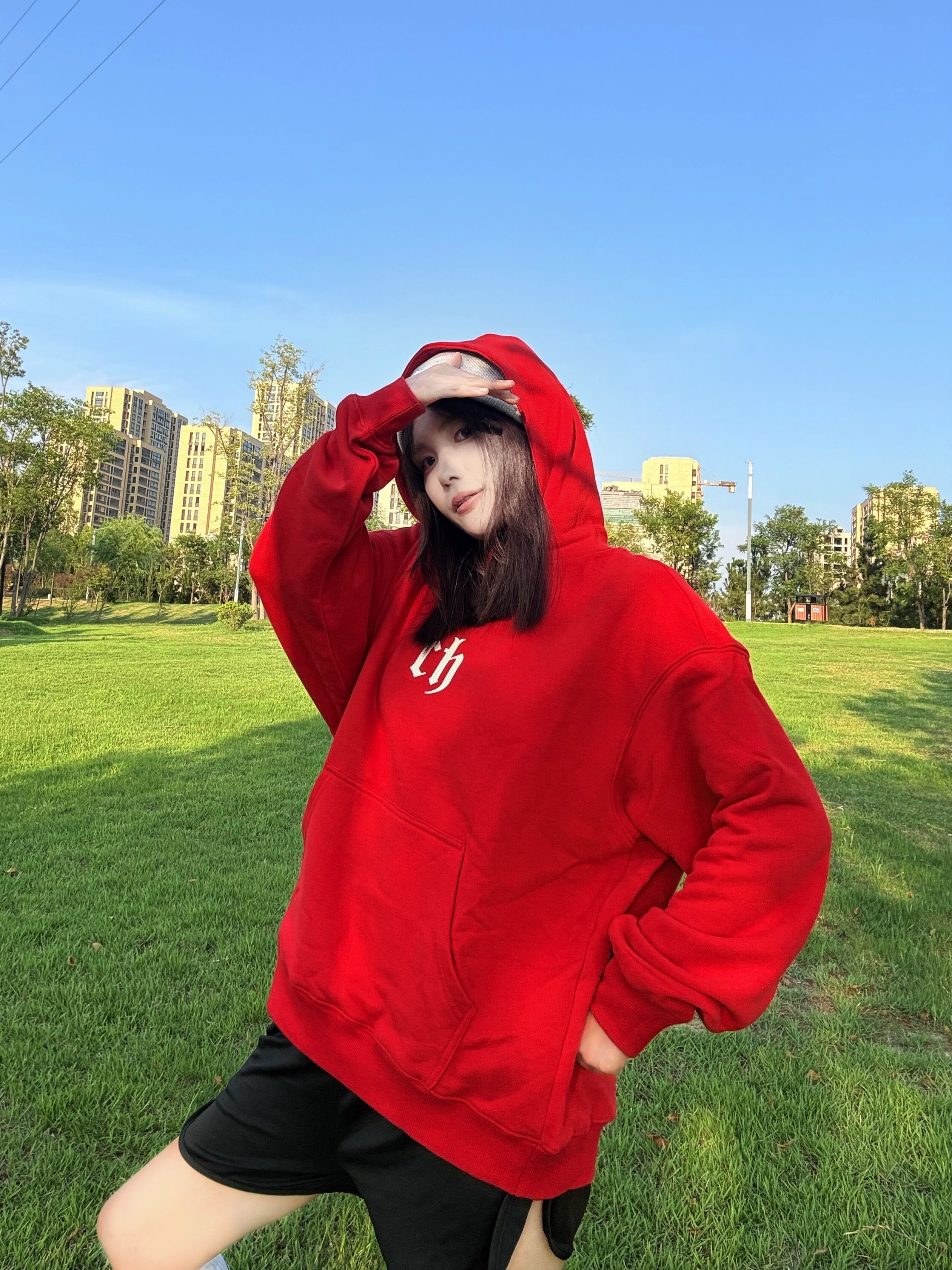 人就应该待在没有天花板的地方 红色 ch 卫衣十黑色短裤长筒袜贝壳鞋 一套穿搭 cleanfit 感十足 红色卫衣上身显白又好看\(//▽//)\ 面料舒服百搭不挑人 出去玩穿这套妥妥的时髦精