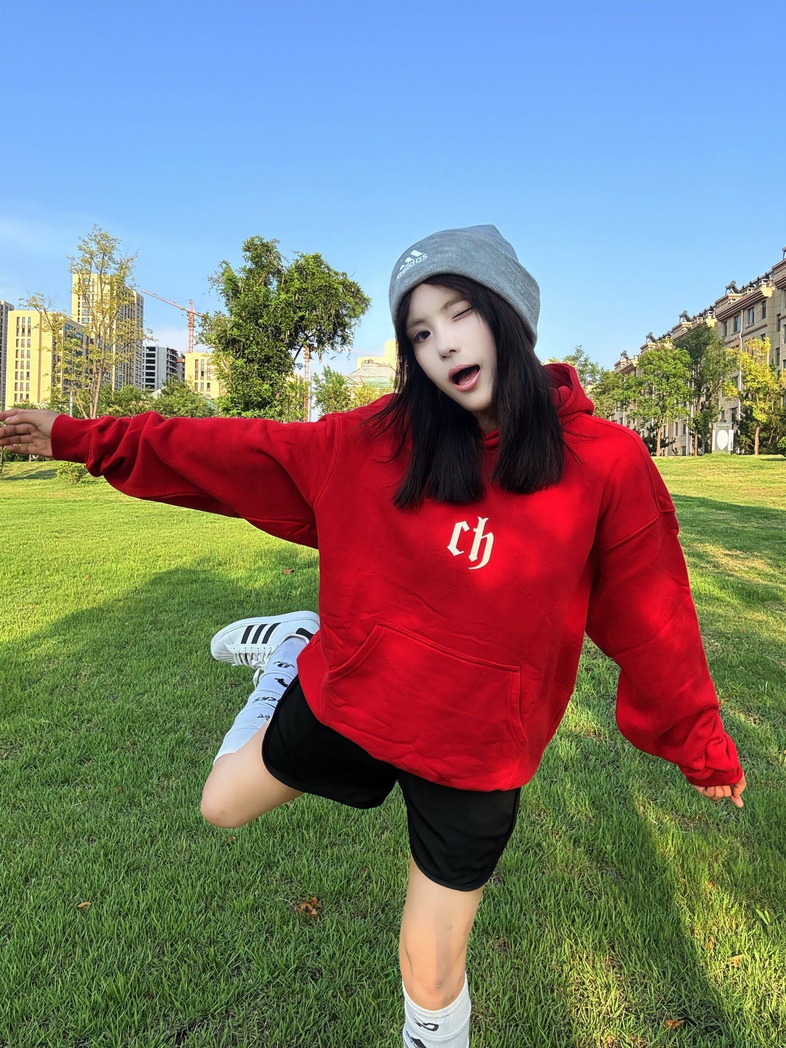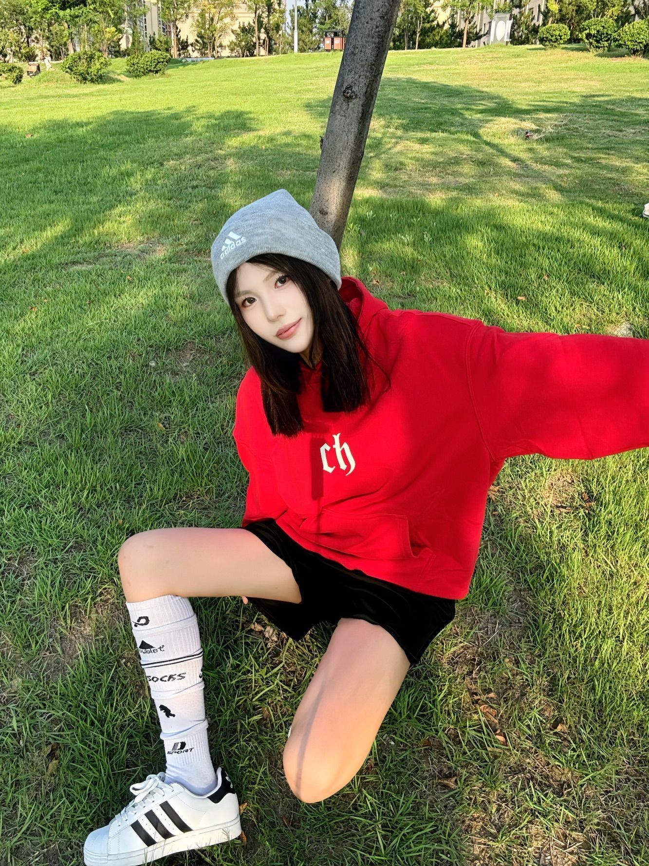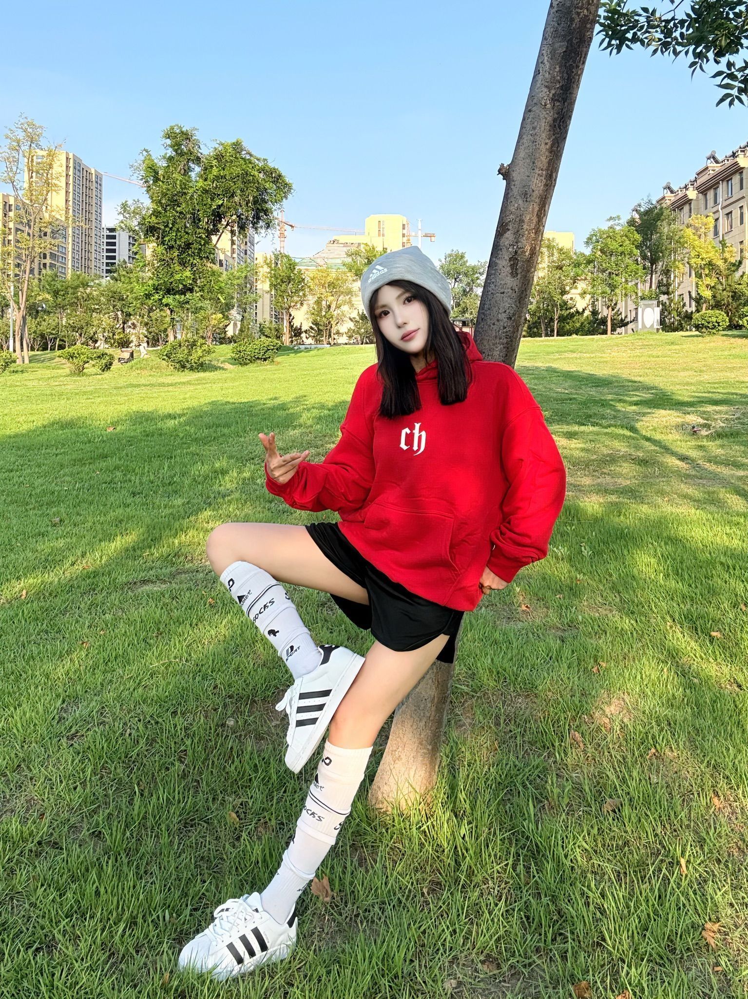 人就应该待在没有天花板的地方 红色 ch 卫衣十黑色短裤长筒袜贝壳鞋 一套穿搭 cleanfit 感十足 红色卫衣上身显白又好看\(//▽//)\ 面料舒服百搭不挑人 出去玩穿这套妥妥的时髦精