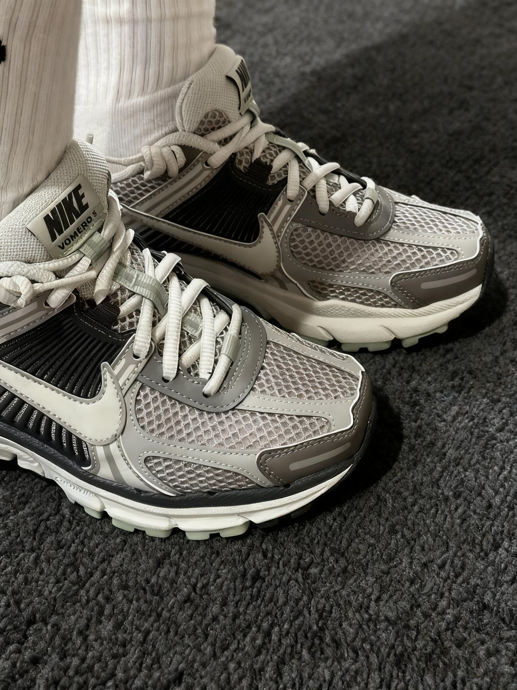 【🍑这双灰调 Vomero 5,网面拼接+复古线条,老爹鞋里的清冷挂~🌰】,由用户 爱嗦粉的米女 分享,来自江西。这是一篇来自识货社区的真实用户分享笔记。