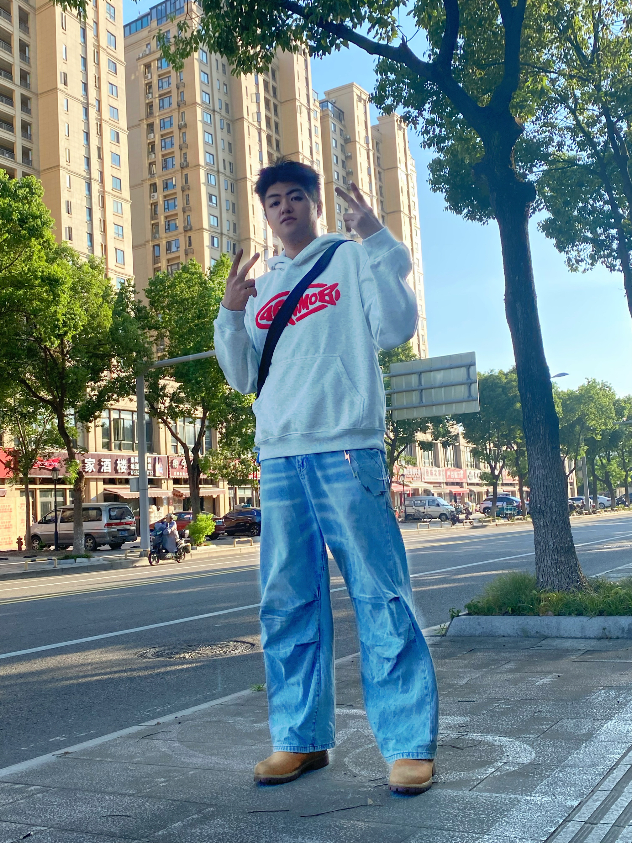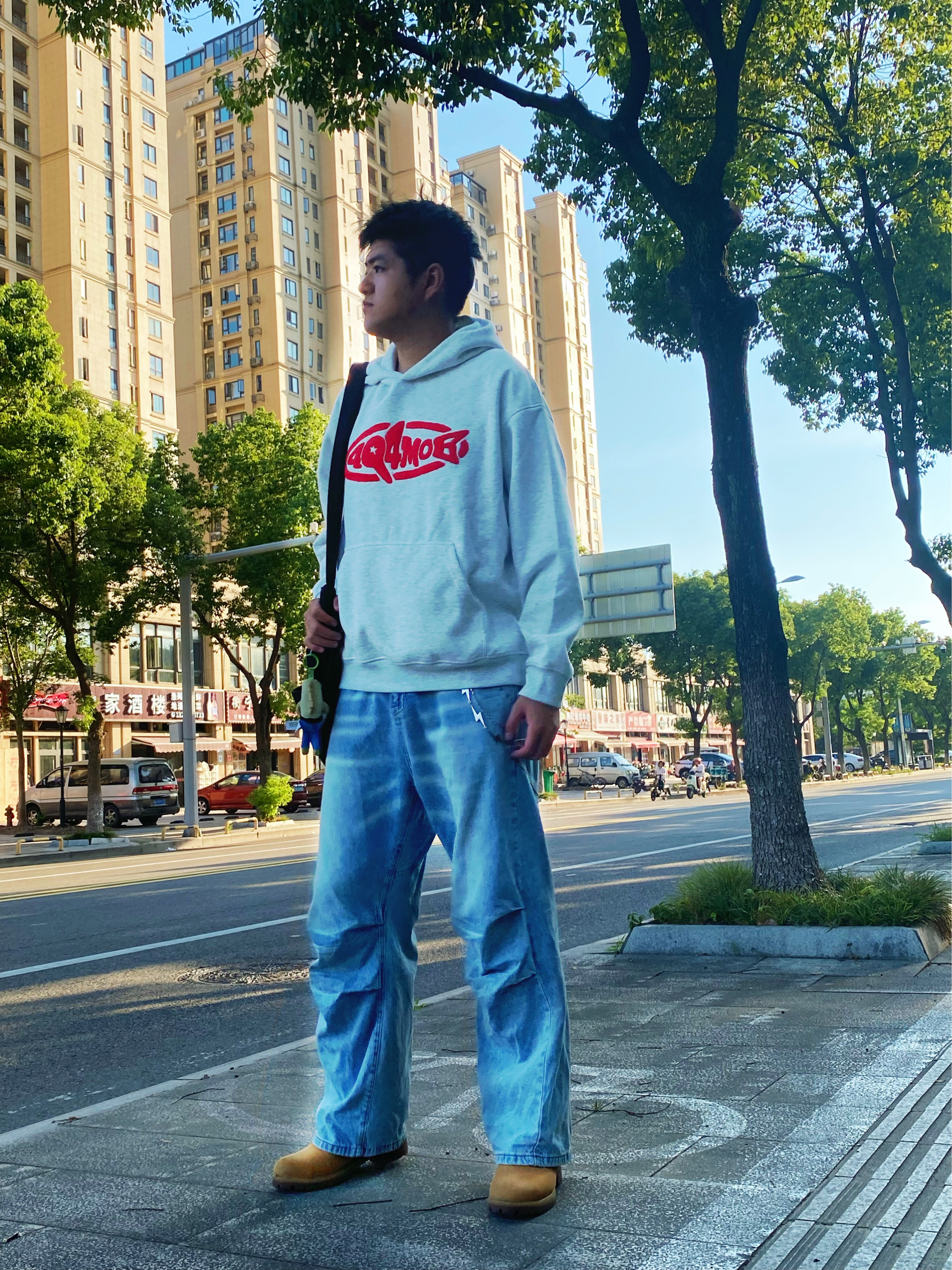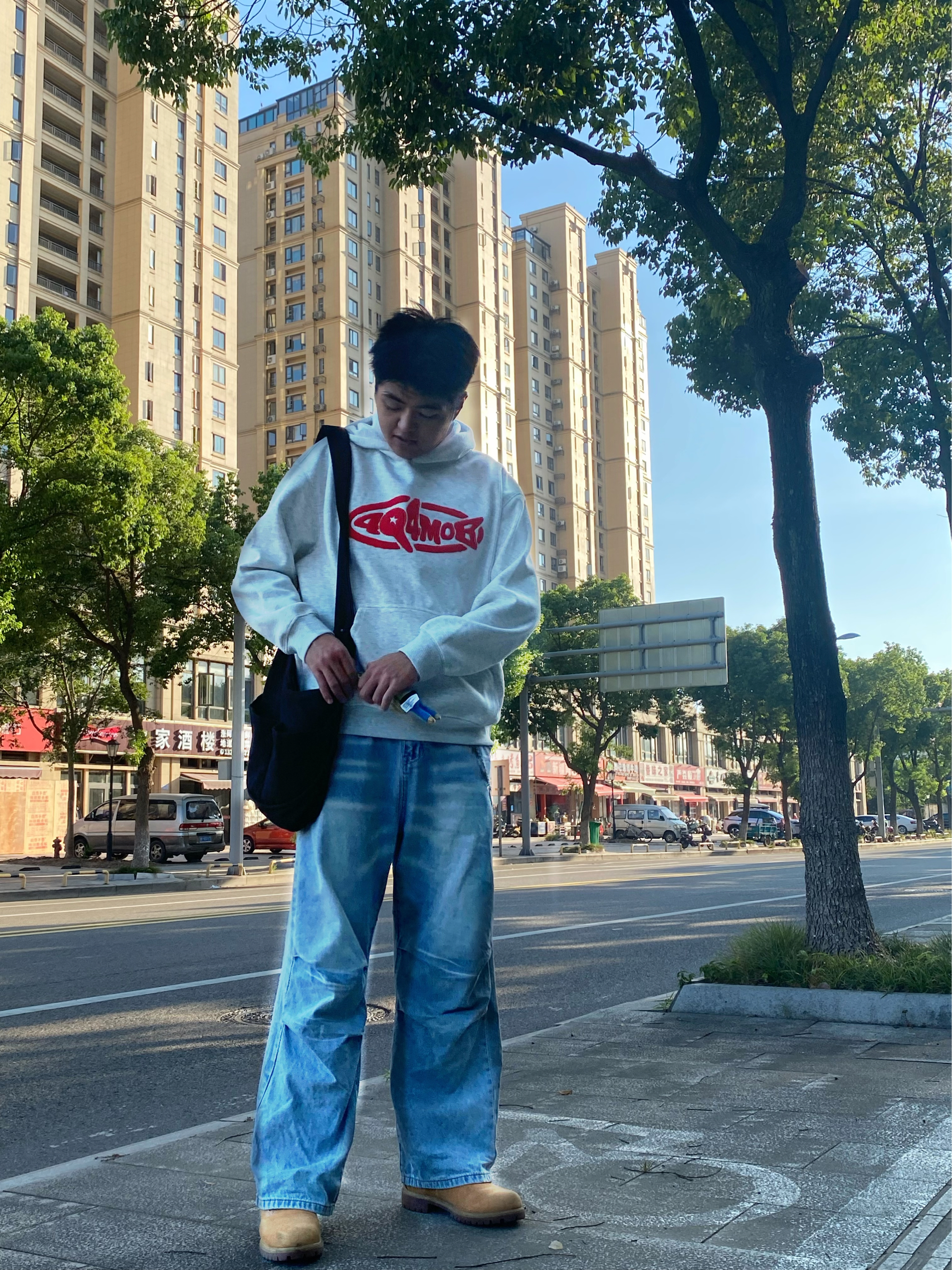 慵懒卫衣带你开学入秋 有种非常低调的高级感🩶 米灰色给人一种干净温柔的感觉 入秋真的超级☀️阳光 搭配阔腿牛仔裤 拿捏学姐的心❤️ 新派学院风逆袭返校季男大学生早秋OOTD 酷飒男生休闲牛仔裤穿搭